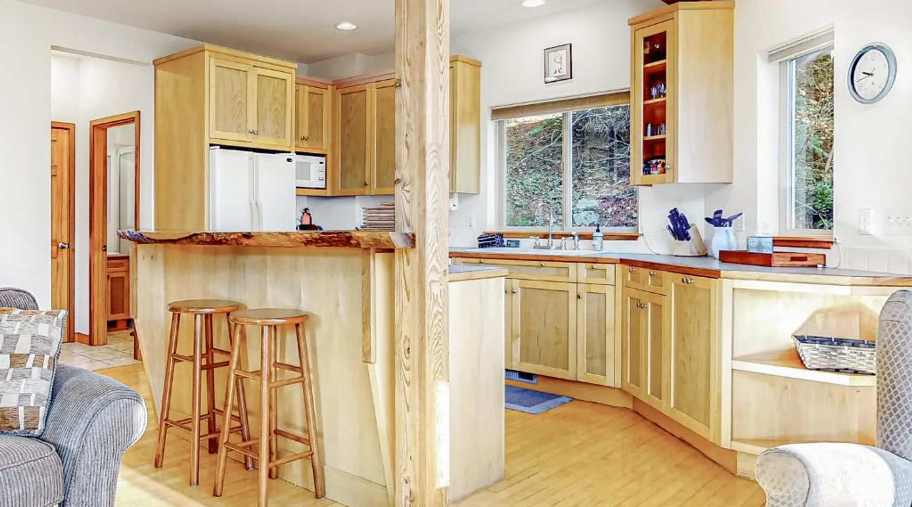 Spacious Holiday Home in Snoqualmie Pass: Hyak House offers a spacious holiday home in Snoqualmie Pass, United States. The property features two bedrooms and three bathrooms, ensuring ample space for guests. Modern Amenities: Guests can enjoy a terrace, balcony, and mountain views. The home includes a fully equipped kitchen with a refrigerator, oven, stovetop, microwave, dishwasher, and coffee machine. Additional amenities include a washing machine, fireplace, streaming services, work desk, and free toiletries. Activities and Nearby Attractions: Skiing enthusiasts can enjoy winter sports in the surrounding area. Snoqualmie Casino is 29 mi away, and Snoqualmie Falls is 30 mi from the property. Seattle Lake Union Seaplane Base is 57 mi distant. The fireplace is the standout feature of this holiday home. This spacious holiday home comes with 2 living rooms, 2 separate bedrooms and 3 bathrooms with a hairdryer and free toiletries. Guests can make meals in the kitchen that features a stovetop, a refrigerator, a dishwasher and kitchenware. Boasting a terrace with mountain views, this holiday home also features a washing machine and a TV with streaming services. The unit has 4 beds.