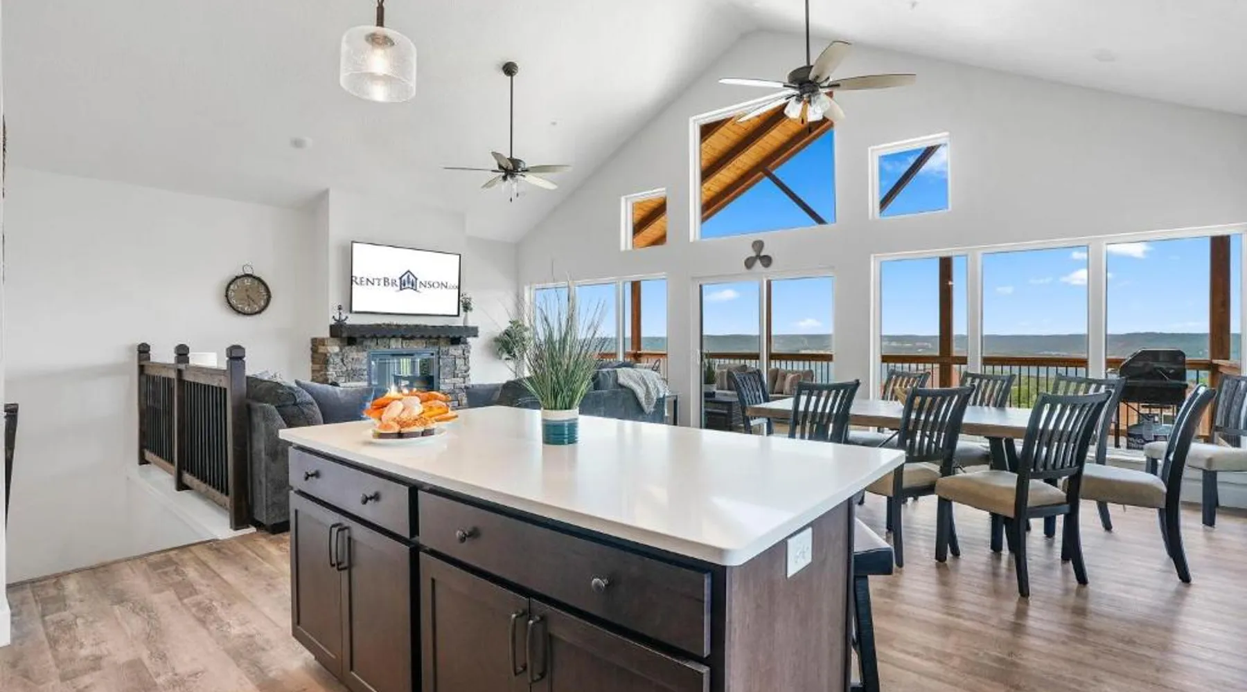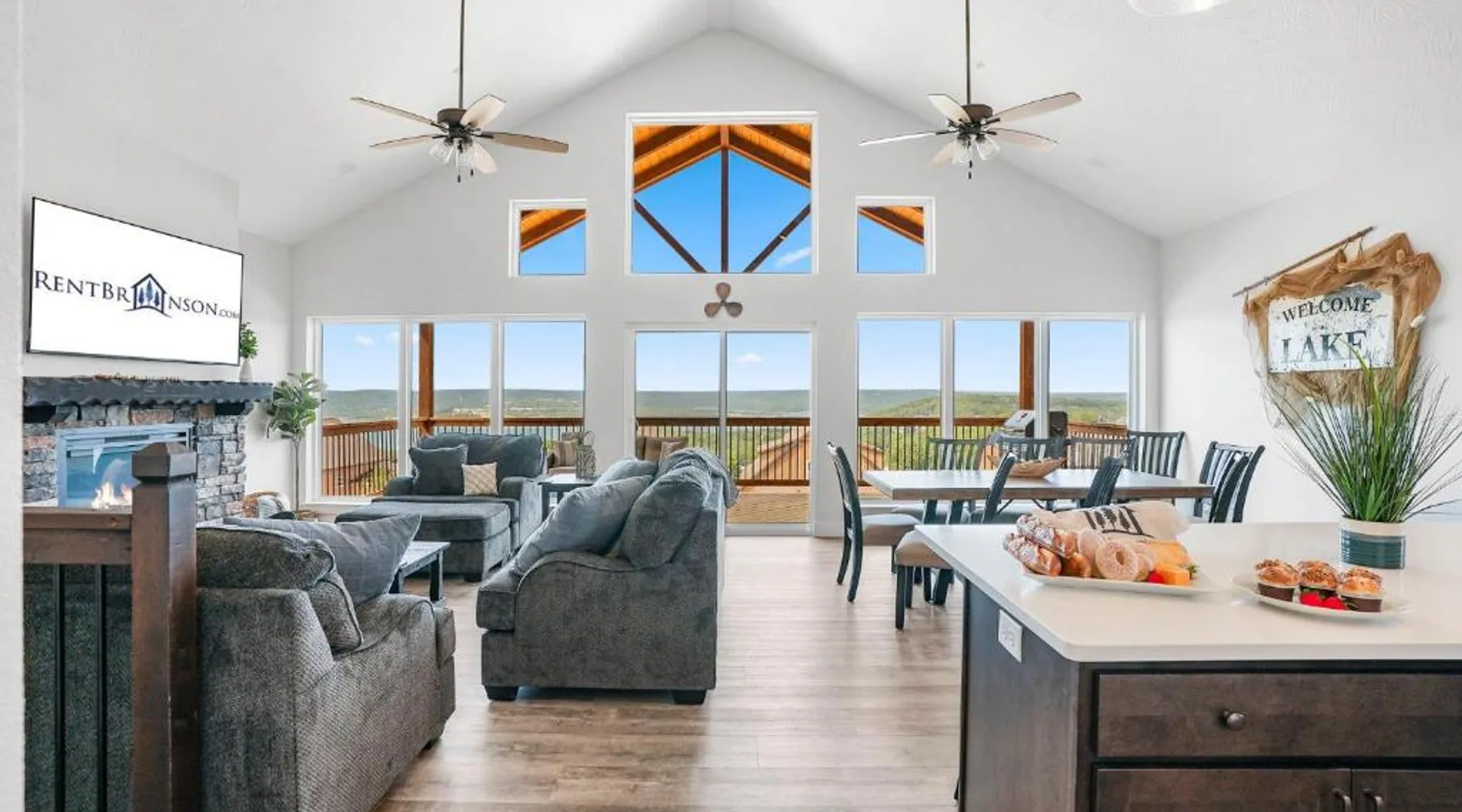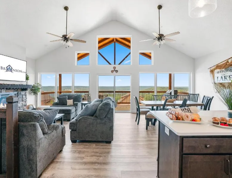 Comfortable Accommodations: Windswept in Kimberling City offers a holiday home with five bedrooms and six bathrooms. The property features air-conditioning, a balcony, and a spa bath. Leisure Facilities: Guests can enjoy an indoor and outdoor swimming pool, massage services, and a concierge service. The home includes a fully equipped kitchen with modern appliances, a dining area, and a fireplace. Local Attractions: Silver Dollar City is 12 mi away, Mickey Gilley Theater 16 mi, and Table Rock State Park 20 mi from the property. Other attractions include Branson Landing and College Of The Ozarks. This holiday home features a spa bath and a fireplace. The air-conditioned holiday home has 5 bedrooms and 6 bathrooms with a shower and a hairdryer. Guests will find a stovetop, a refrigerator, a dishwasher and kitchenware in the fully equipped kitchen. The holiday home also comes with a barbecue. Boasting a balcony with lake views, this holiday home also features a washing machine and a TV. The unit has 6 beds.