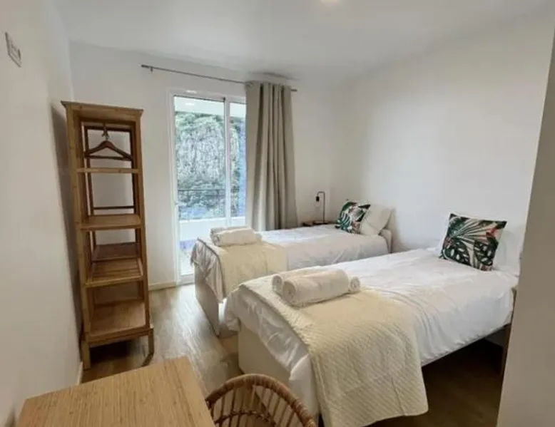 Comfortable Accommodations: Ribeira Roots Residence in Santa Cruz offers a holiday home with two bedrooms and two bathrooms. The property features a spacious living room, private entrance, and tiled and parquet floors. Modern Amenities: Guests enjoy free WiFi, a sun terrace, and a balcony with sea views. The holiday home includes a fully equipped kitchen, washing machine, and dining area. Additional facilities include free on-site private parking, bicycle parking, and an outdoor seating area. Convenient Location: Located 3.1 mi from Cristiano Ronaldo Madeira International Airport, the residence is a 14-minute walk from Palmeiras Beach. Nearby attractions include Marina do Funchal (12 mi) and Quinta do Palheiro Ferreiro (8.1 mi). Boasting a private entrance, this holiday home comes with 1 living room, 2 separate bedrooms and 2 bathrooms with a shower and a hairdryer. Guests can make meals in the kitchen that features a stovetop, a refrigerator, kitchenware and an oven. Featuring a terrace with sea views, this holiday home also features a washing machine and a TV with cable channels. The unit has 3 beds.