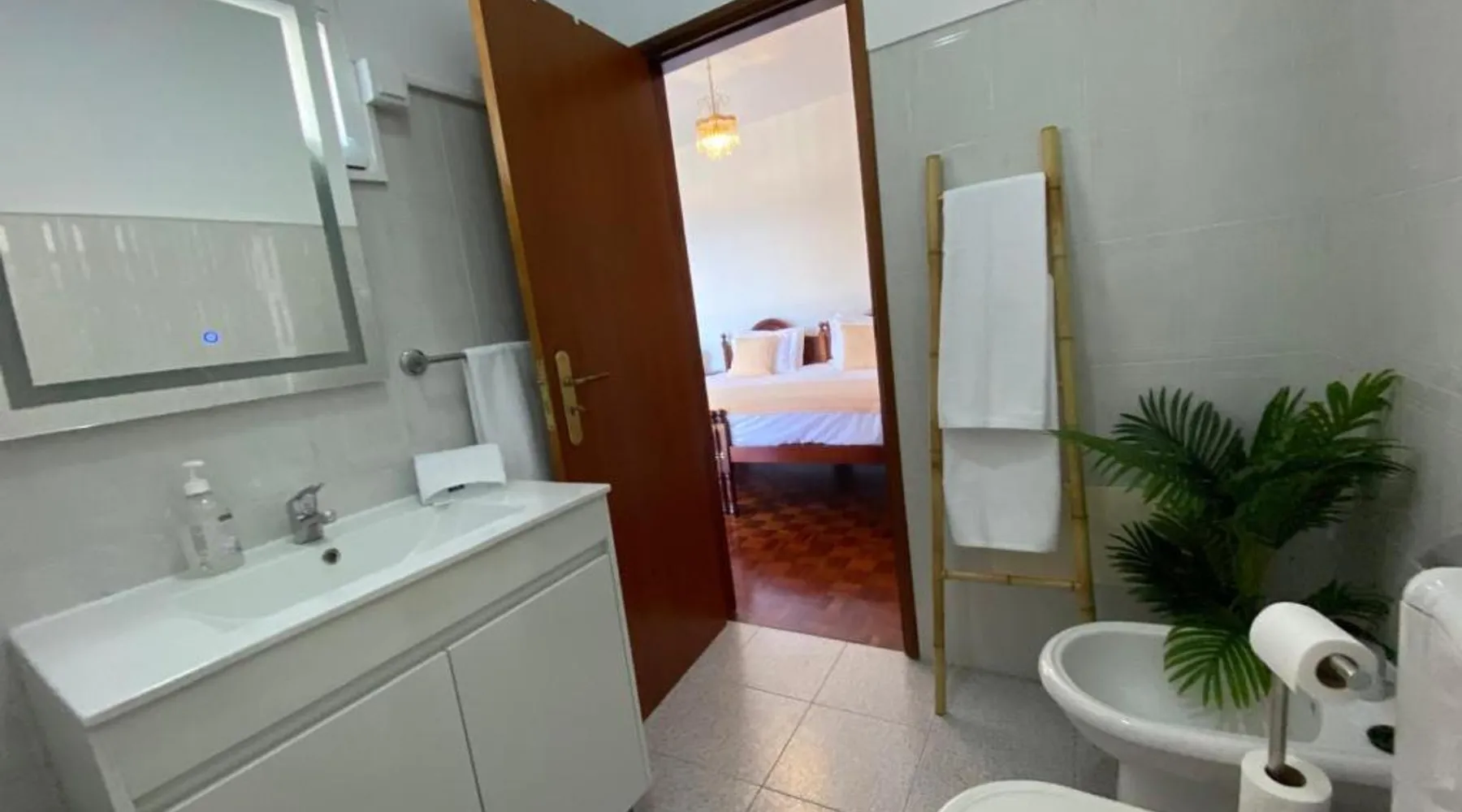 Spacious Holiday Home in Santa Cruz: Casa a Torre offers a spacious holiday home in Santa Cruz, Portugal. Guests enjoy sea views, a sun terrace, and a balcony. The property features two bedrooms, two bathrooms, and a comfortable living room. Dining and Leisure: The family-friendly restaurant serves Portuguese cuisine for lunch and dinner. A bar provides a relaxing space for evening drinks. Free WiFi is available throughout the property. Convenient Location: Located a few steps from Cristiano Ronaldo Madeira International Airport, Casa a Torre is 1.2 mi from Palmeiras Beach. Nearby attractions include Marina do Funchal (12 mi) and Quinta do Palheiro Ferreiro (8.1 mi). Scuba diving is available in the surroundings. Guest Satisfaction: Highly rated for its attentive host, convenient location, and impeccable room cleanliness. This spacious holiday home is consisted of of 1 living room, 2 separate bedrooms and 2 bathrooms with a bath and free toiletries. The well-equipped kitchen features a stovetop, a refrigerator, kitchenware and an oven. Featuring a terrace with sea views, this holiday home also offers a washing machine and a flat-screen TV with cable channels. The unit offers 3 beds.