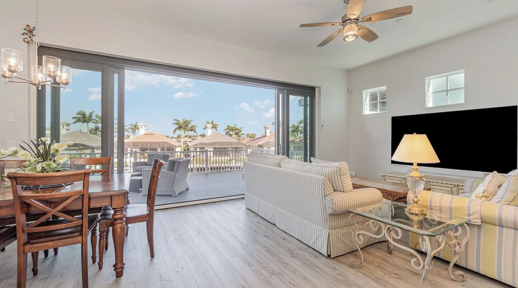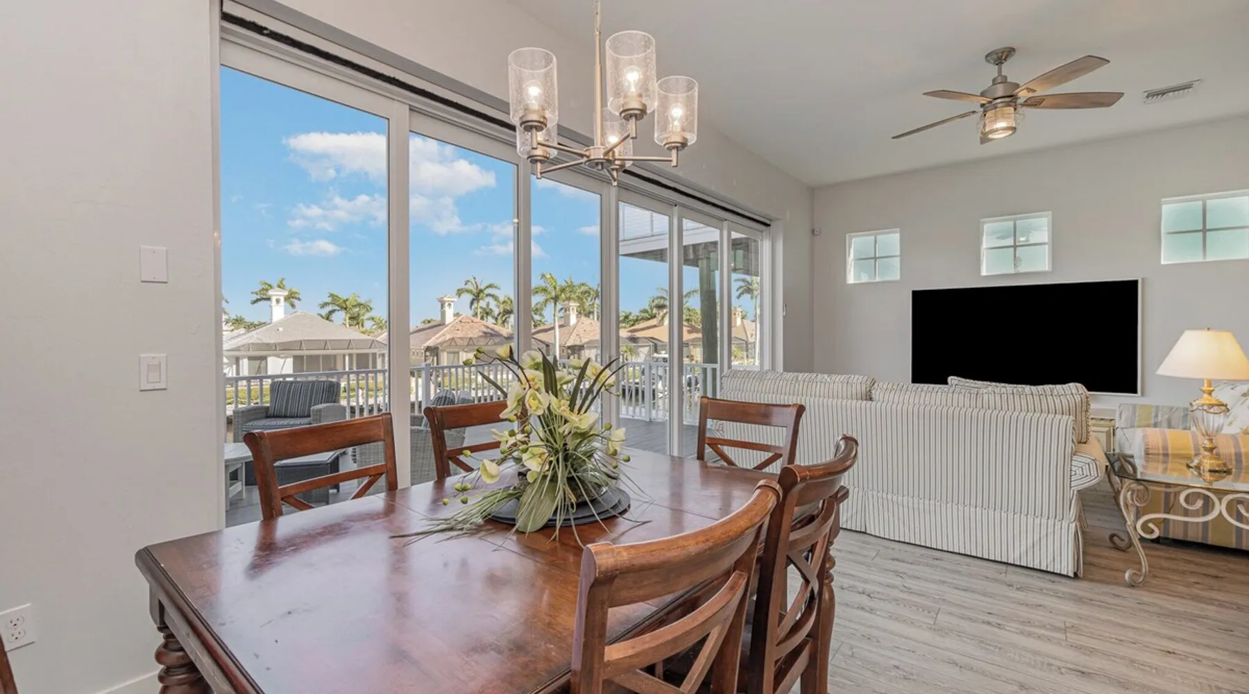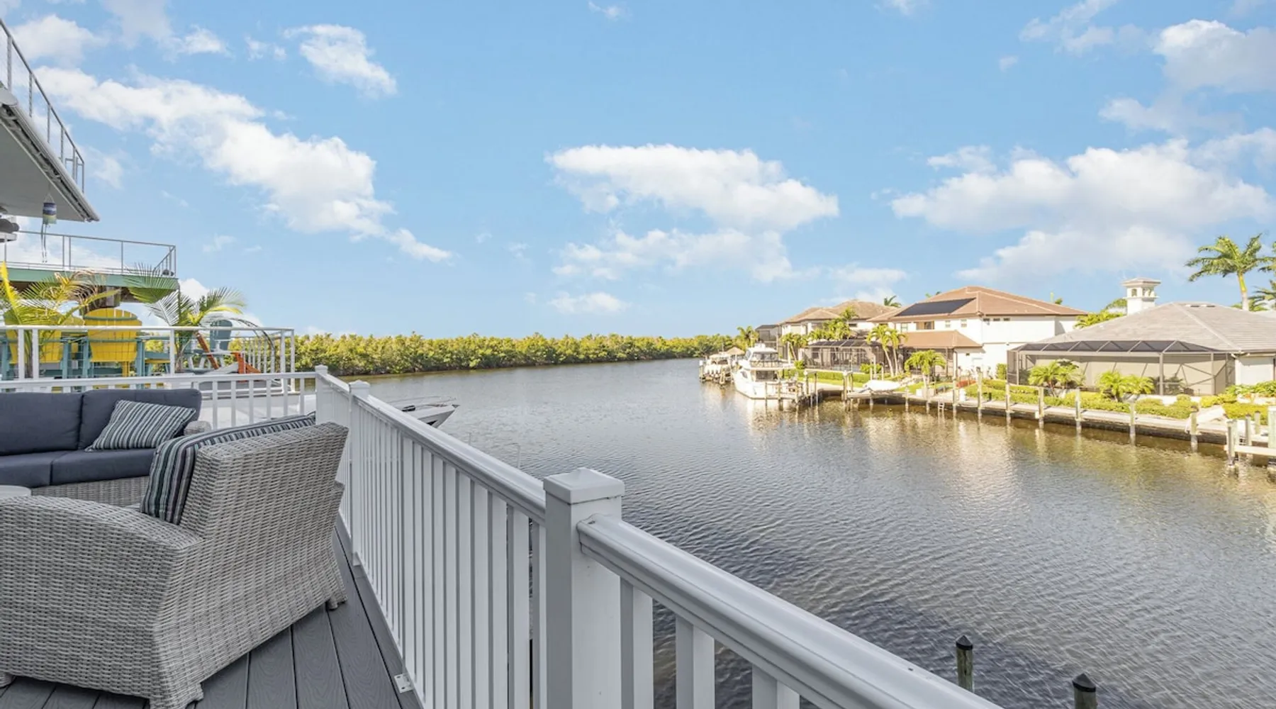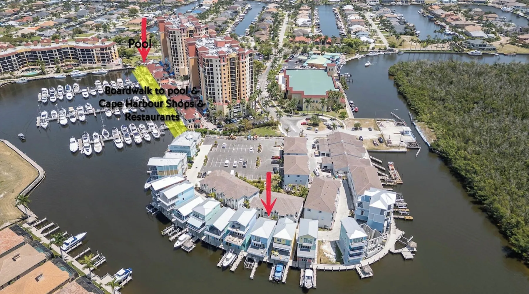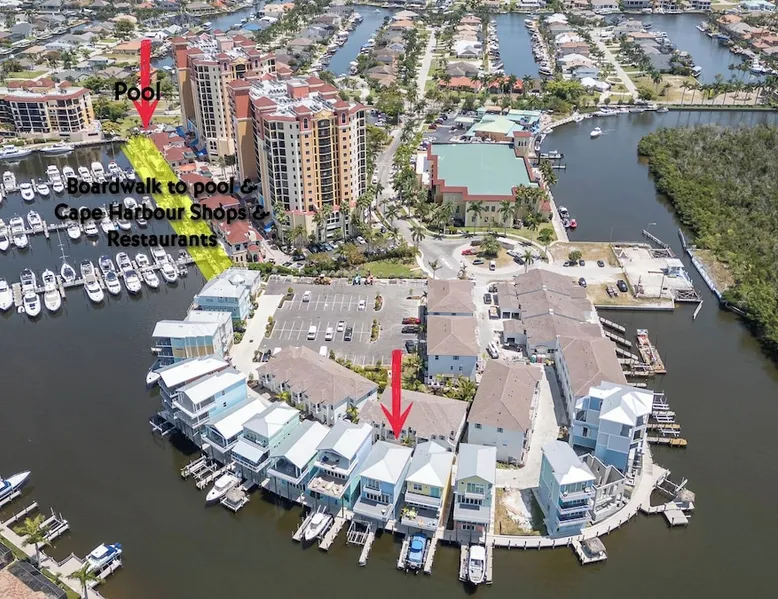 2 Story Lux Waterfront Living in Cape Harbour- Pool & Dock The space Welcome to "Seahorse" Funky Fish House, a vibrant and luxurious waterfront retreat nestled in the exclusive yachting community of Cape Harbour. The Funky Fish Houses are renowned for their creative use of color and island ambiance, and "Seahorse" is no exception. The three-level design of "Seahorse" offers a unique and versatile layout, perfect for families or groups seeking a memorable vacation experience. The third floor features two ensuite bedrooms, one with a full bed & the other, a Master Suite with a king bed and private deck overlooking the marina. The second floor is the heart of the home, with a gourmet kitchen, inviting living area, and a deck overlooking the Marina at Cape Harbour - perfect for sipping your morning coffee or enjoying a sunset cocktail. The third bedroom with king bed is also located on the second floor. The first floor boasts a separate Efficiency Apartment suite that could be available upon request only. This separate space may be owner occupied, but also is totally separate from the rest of the house to ensure total secure privacy. With a total of three bedrooms, "Seahorse" can comfortably accommodate up to six guests. Each bedroom is beautifully appointed, offering a restful retreat after a day of adventure. The master suite on the third floor features a king bed and a 75" TV, while the other bedrooms offer equally comfortable accommodations. The home features three full bathrooms, including one with a standalone soaking tub and walk-in shower in the Master Suite. The living and dining areas are designed for both relaxation and entertainment, with a dining room that seats six and a breakfast bar with three stools. **Amenities Included:** - Private elevator for guest usage - Keypad door entry for convenience and security - WiFi internet access for staying connected - Smart TVs in the living room and all bedrooms for entertainment - Fully equipped gourmet kitchen with modern appliances - Access to the community pool at Cape Harbour - Private dock. Please note the boat lift is not available for use. Cape Harbour Marina, just a few minutes walk away may be a great option for boat slip rental. - Retractable awning and outdoor patio furniture for outdoor relaxation - Gas grill - Parking for up to three cars in the community parking lot - Convenient location near shops, restaurants, and attractions in Cape Harbour Located in the Funky Fish House Neighborhood in Cape Harbour, this home offers easy access to shops, restaurants, and weekly live music events. Restaurants such as Fathoms and Rum Runners are within a few minute walking distance. The location on the spreader canal near the mouth of the river offers one of the best boating locations in all of SWFL. Don't miss the opportunity to experience luxury waterfront living at "Seahorse" Funky Fish House. Book your stay today and create memories that will last a lifetime. 🌴☀️ Other things to note: This is a multi unit condo and the separate efficiency apartment may be occupied during your stay. The efficiency apartment can be added to your stay upon request and approval. The owner may be occupying it, but it has it's own secure entrance and no shared spaces besides the garage and dock. There is a private elevator inside the main house that goes from the ground level to the third floor. Guests have access to the pool at Cape Harbour. Guests will be provided a gate code to use to walk from the Funky Fish Houses, down the boardwalk that runs along the Cape Harbour Marina, and to the pool at the end of Cape Harbour. The pool is shared between resident and guests of the Condo Associations. It does require a few minute walk. There is no parking in front of the house or in the garage. There is a parking lot that is for all guests and is less than a minute walk away. You are allowed to drive up to the house to drop off luggage, but no parking is allowed. The house does come with a private dock right in the back of the house along the canal. The boat lift is not available. If you are looking at a longer stay, please reach out and we can get authorization from the owner on a case by case basis. Cap Harbour Marina is just a few minutes walk away and could be a great spot to rent a boat slip and allow for quick and easy boat access. You will be required to sign a rental agreement and credit card authorization form, which can be done electronically. You must be at least 25 years old to rent this property. Access to the home will be restricted if requirements are not completed. This property requires an energy contribution payment of $0.22 per KWh plus tax. Please note it when making your reservation.
