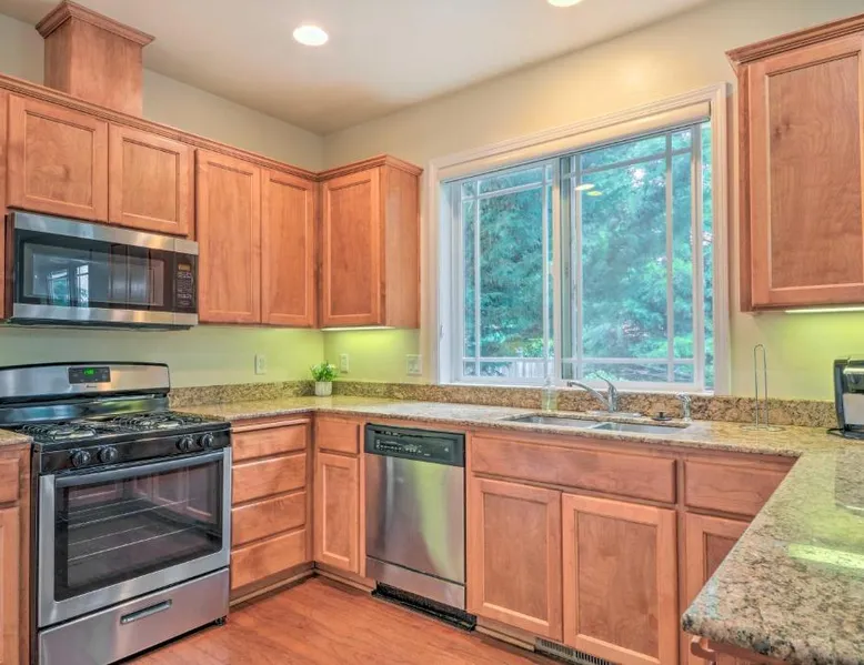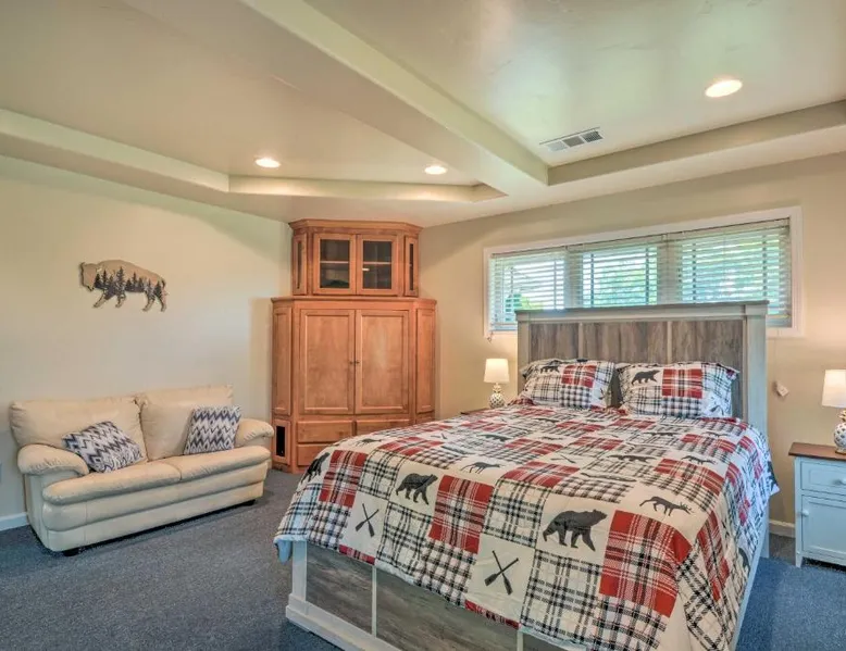 Spacious Accommodations: Charming Medford Getaway in Medford offers a spacious holiday home with five bedrooms and three bathrooms. The property includes a fully equipped kitchen, air-conditioning, and a private entrance. Wellness and Connectivity: Guests can relax at the on-site spa and wellness center or stay connected with free WiFi. Additional amenities include a washing machine, patio, fireplace, and a variety of kitchen appliances. Convenient Location: Located 12 mi from Rogue Valley International-Medford Airport, the property is near attractions such as Oregon Shakespeare Festival (11 mi), Lithia Park (11 mi), and Oregon Cabaret Theater (11 mi). This holiday home features a fireplace. Boasting a private entrance, this spacious holiday home also features 5 separate bedrooms and 3 bathrooms with a bath and a shower. Meals can be prepared in the well-fitted kitchen, which has a stovetop, a refrigerator, a dishwasher and kitchenware. Featuring a patio, this holiday home also features air conditioning, a washing machine and a flat-screen TV. The unit has 5 beds.