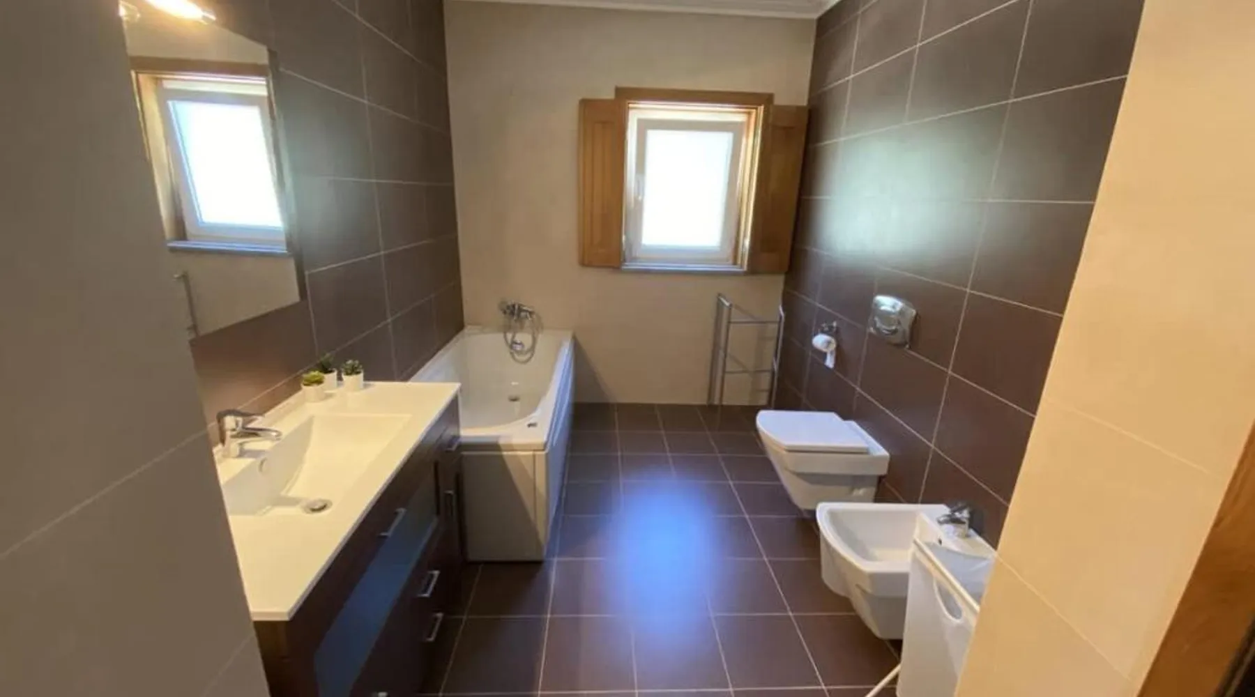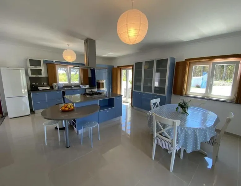 Spacious Accommodations: Villa Mochos Private Pool in Reguengo Grande offers a spacious holiday home with four bedrooms and four bathrooms. The property includes a private pool, patio, and outdoor furniture, providing ample space for relaxation and entertainment. Modern Amenities: Guests enjoy free WiFi, free parking, and streaming services. The fully equipped kitchen features a refrigerator, oven, stovetop, and kitchenware. Additional amenities include a washing machine, fireplace, and private entrance. Convenient Location: Located 47 mi from Humberto Delgado Airport, the property is near attractions such as Obidos Castle (8.1 mi), Lourinhã Museum (8.7 mi), Peniche Fortress (12 mi), and Dino Park Lourinha (5.6 mi). Reception staff speak German, English, Spanish, French, and Portuguese. This apartment features a private pool and a fireplace. Featuring a private entrance, this spacious apartment also consists of 4 separate bedrooms and 4 bathrooms with a bath and a hairdryer. Guests will find a stovetop, a refrigerator, kitchenware and an oven in the fully equipped kitchen. The apartment also offers a barbecue. This apartment features a washing machine, a tea and coffee maker, a TV with streaming services and a patio. The unit offers 6 beds.