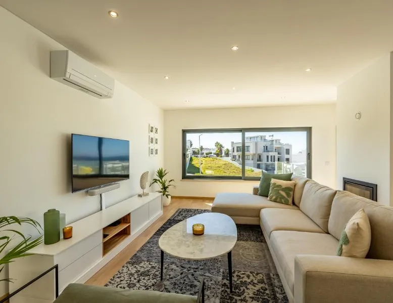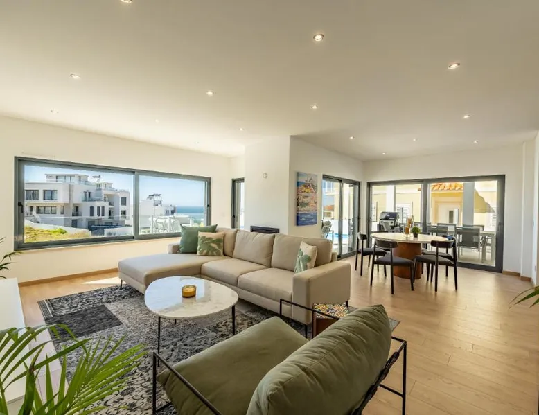 Spacious Accommodations: Silver Coast Beach Villa in Lourinhã offers a spacious villa with three bedrooms and five bathrooms. The property features a living room, balcony, terrace, and garden, ensuring comfort for all guests. Exceptional Facilities: Guests can enjoy a swimming pool with stunning views, a sun terrace, and a lush garden. Free WiFi is available throughout the villa, enhancing the stay experience. Convenient Amenities: The villa provides private check-in and check-out services, a paid shuttle, laundry, outdoor seating, picnic area, family rooms, bicycle parking, car hire, and free on-site parking. Additional amenities include air-conditioning, a balcony, and a fully equipped kitchen. Local Attractions: Peralta Beach is less than 0.6 mi away, while Obidos Castle is 18 mi distant. Other nearby points of interest include Lourinhã Museum (1.9 mi) and Dino Park Lourinha (4.3 mi). Surfing is available in the surrounding area. The pool with a view and fireplace are the special features of this villa. Boasting a private entrance, this air-conditioned villa comes with 3 living rooms, 3 separate bedrooms and 5 bathrooms with a walk-in shower and a bath. Guests will find a stovetop, a refrigerator, a dishwasher and kitchenware in the kitchen. The villa also includes a barbecue. The spacious villa features a flat-screen TV with streaming services, a washing machine, soundproof walls, a mini-bar as well as sea views. The unit has 6 beds.