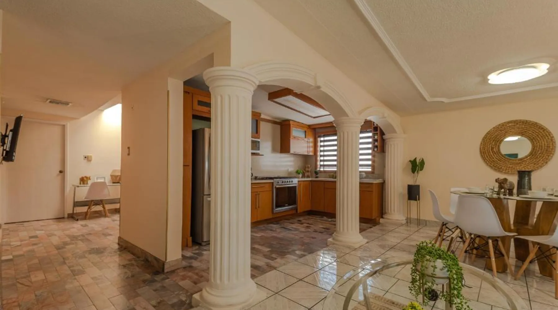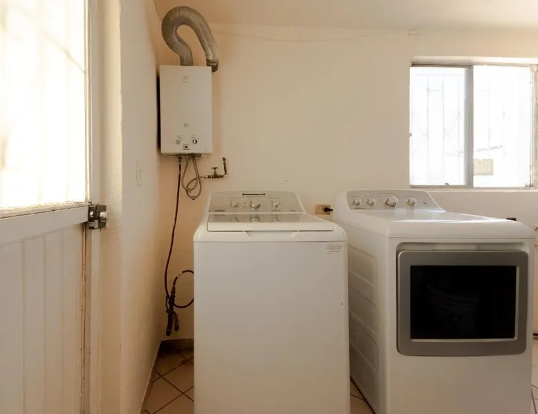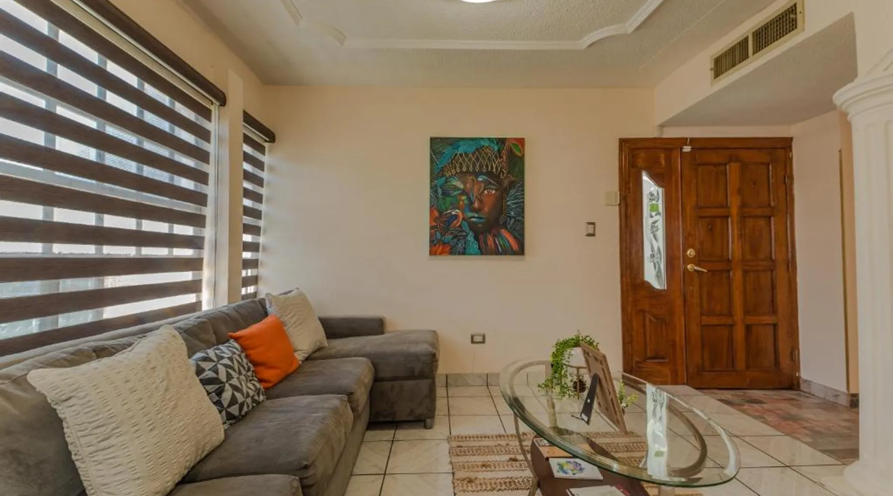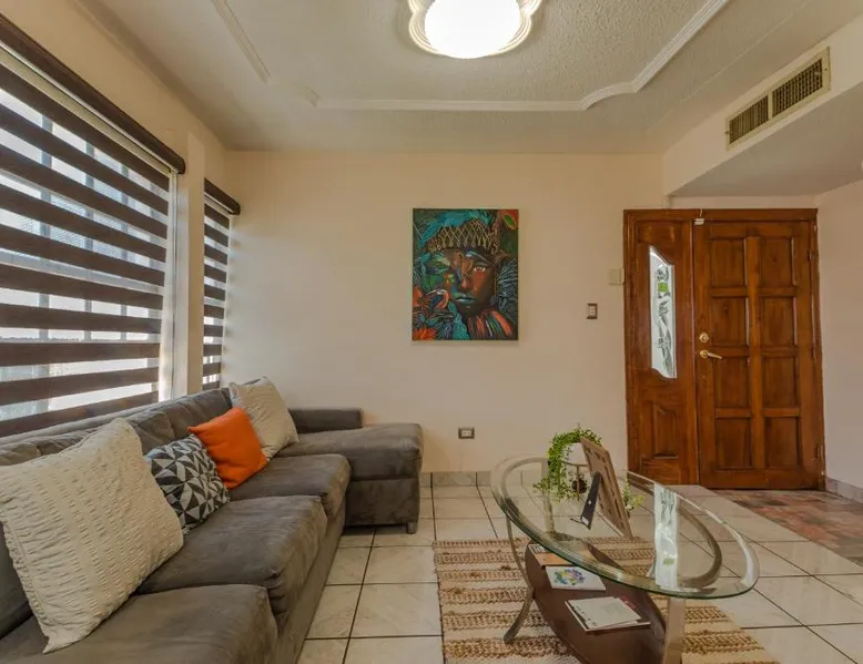 Comfortable Accommodations: Casa Elefante hermosa y Centrica in Chihuahua offers three bedrooms and two bathrooms. The living room features a sofa, dining area, and a work desk. Guests enjoy garden views and a private entrance. Modern Amenities: The holiday home provides free WiFi, air-conditioning, and streaming services. The fully equipped kitchen includes a refrigerator, oven, stovetop, microwave, and tea and coffee maker. Additional amenities include a washing machine, dining table, and work desk. Convenient Location: Located 9.3 mi from General Roberto Fierro Villalobos International Airport, the property is near Museo Casa Chihuahua (2.5 mi) and Catedral de Chihuahua (3.1 mi). Free on-site private parking is available. Guest Satisfaction: Highly rated by guests for room comfort, convenient location, and bed comfort. Private check-in and check-out services ensure a smooth arrival and departure. Featuring a private entrance, this air-conditioned holiday home is consisted of of 1 living room, 3 separate bedrooms and 2 bathrooms with a hairdryer. Guests can make meals in the kitchen that comes with a stovetop, a refrigerator, an oven and a microwave. The holiday home offers a flat-screen TV with streaming services, a washing machine, a tea and coffee maker, a seating area as well as garden views. The unit offers 6 beds.