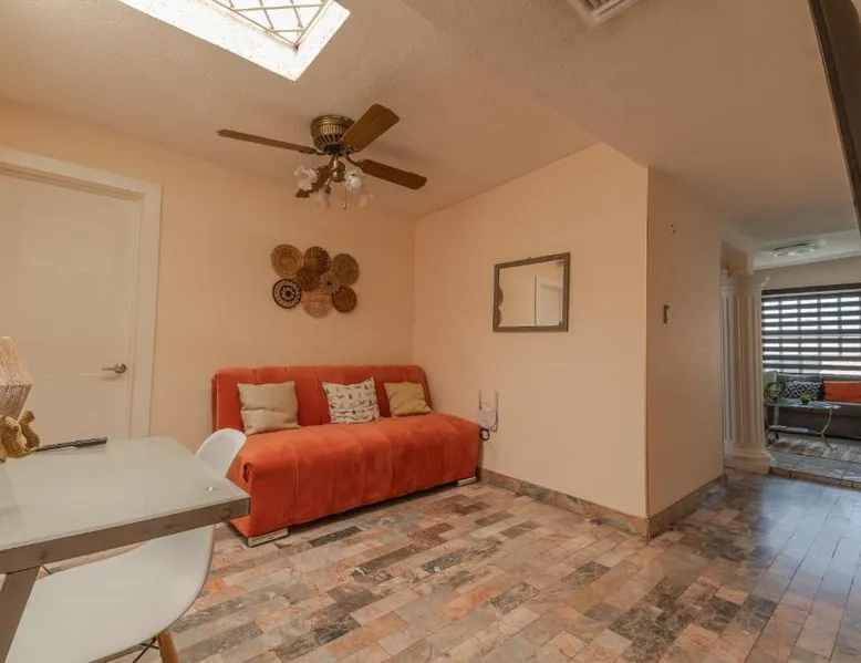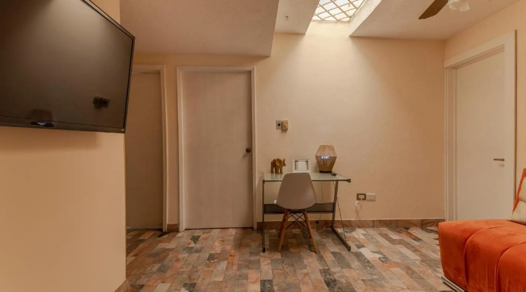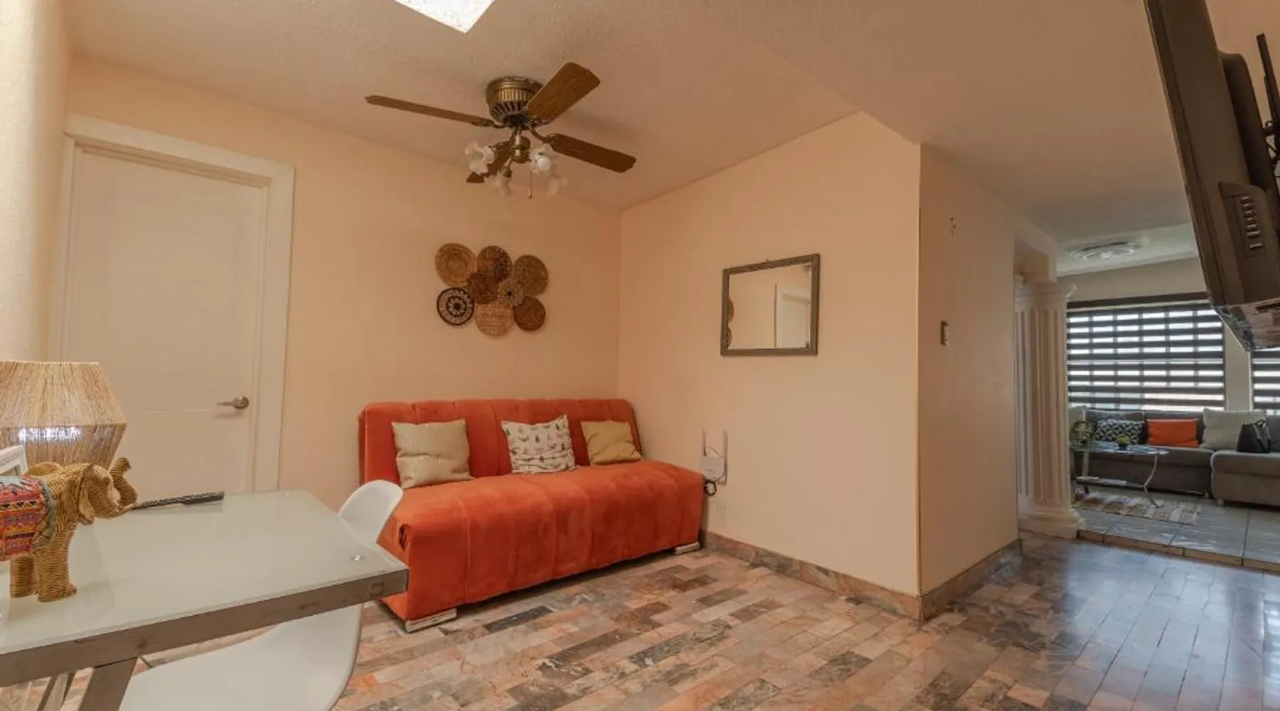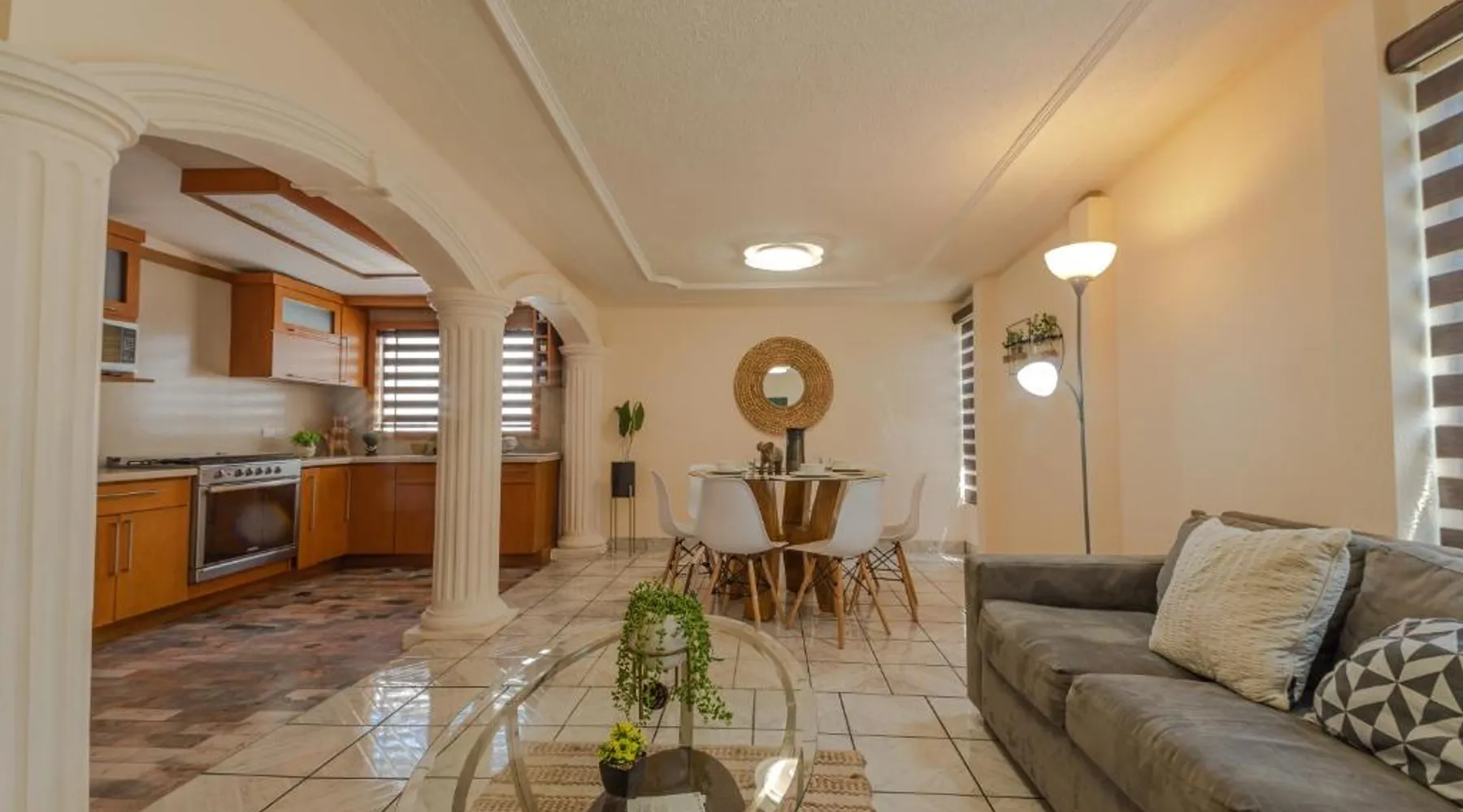 Comfortable Accommodations: Casa Elefante hermosa y Centrica in Chihuahua offers three bedrooms and two bathrooms. The living room features a sofa, dining area, and a work desk. Guests enjoy garden views and a private entrance. Modern Amenities: The holiday home provides free WiFi, air-conditioning, and streaming services. The fully equipped kitchen includes a refrigerator, oven, stovetop, microwave, and tea and coffee maker. Additional amenities include a washing machine, dining table, and work desk. Convenient Location: Located 9.3 mi from General Roberto Fierro Villalobos International Airport, the property is near Museo Casa Chihuahua (2.5 mi) and Catedral de Chihuahua (3.1 mi). Free on-site private parking is available. Guest Satisfaction: Highly rated by guests for room comfort, convenient location, and bed comfort. Private check-in and check-out services ensure a smooth arrival and departure. Featuring a private entrance, this air-conditioned holiday home is consisted of of 1 living room, 3 separate bedrooms and 2 bathrooms with a hairdryer. Guests can make meals in the kitchen that comes with a stovetop, a refrigerator, an oven and a microwave. The holiday home offers a flat-screen TV with streaming services, a washing machine, a tea and coffee maker, a seating area as well as garden views. The unit offers 6 beds.