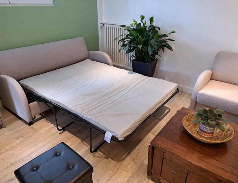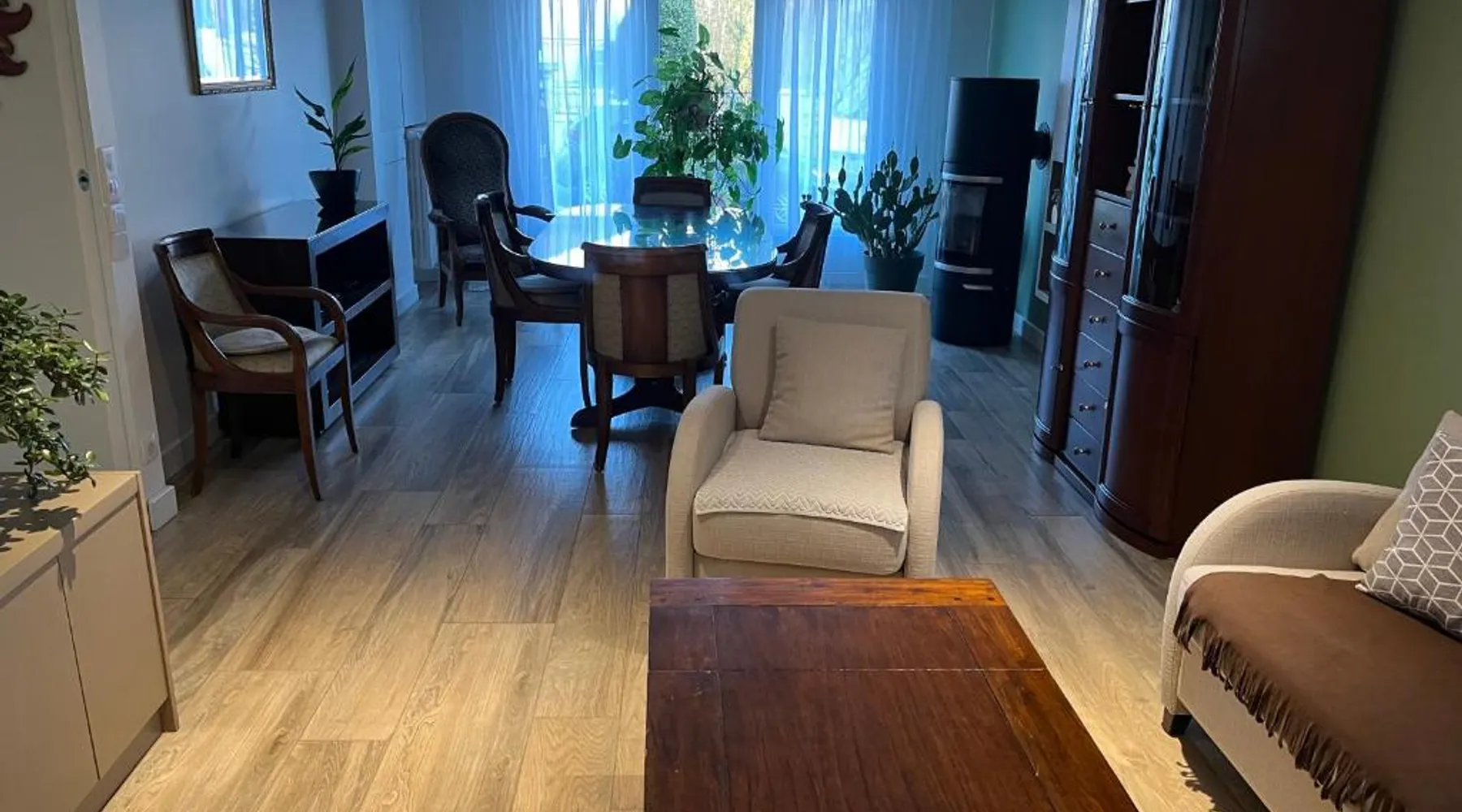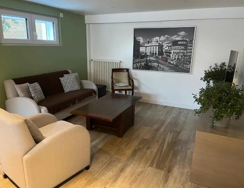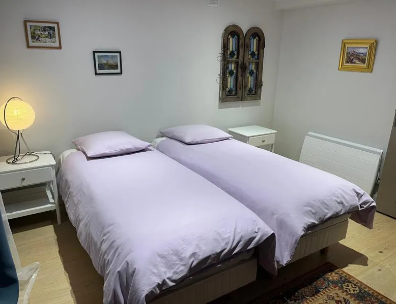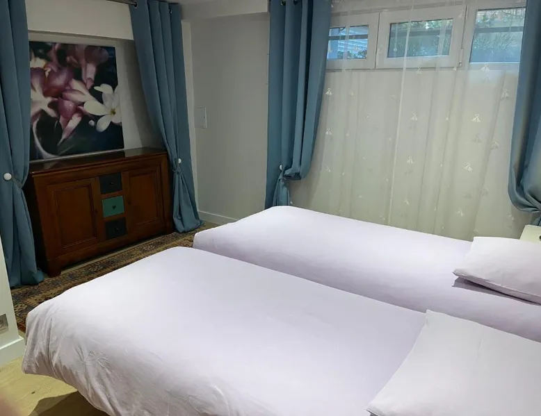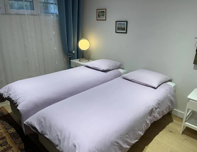 Spacious Accommodations: A l'orée de la forêt in Saint-Leu-la-Forêt offers a spacious homestay with two bedrooms and a living room. Family rooms provide ample space for relaxation and comfort. Outdoor Spaces: Guests can enjoy a garden and terrace with garden views. The terrace features outdoor furniture and a dining area, ideal for alfresco meals. Modern Amenities: The property includes a kitchenette with a coffee machine, dishwasher, and microwave. Free WiFi is available throughout the homestay. Convenient Location: Located 19 mi from Paris Charles de Gaulle Airport, the homestay is near attractions such as Stade de France (11 mi) and Sacré-Coeur (13 mi). Free on-site private parking is provided. Guest Satisfaction: Highly rated by guests for its friendly host and convenient location. This spacious apartment includes 1 living room, 2 separate bedrooms and 1 bathroom with a walk-in shower. In the well-equipped kitchen, guests will find a stovetop, a refrigerator, a dishwasher and kitchenware. Boasting a terrace with garden views, this apartment also offers a tea and coffee maker and a flat-screen TV. The unit has 5 beds.