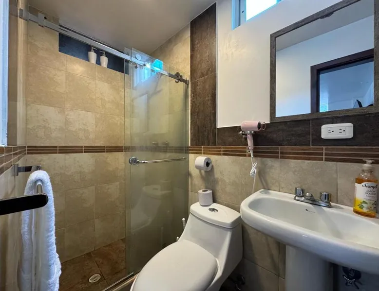 Comfortable Accommodations: Nordic Room in Baños offers a two-bedroom apartment with a fully equipped kitchenette, a hairdryer, refrigerator, free toiletries, and a TV. The property includes family rooms and a bathroom. Essential Facilities: Guests enjoy free WiFi and paid off-site private parking. Reception staff speak English, Spanish, and Russian, ensuring smooth communication. Convenient Location: Located in Oriente, Baños, the apartment is 124 mi from Quito Mariscal Sucre International Airport. Nearby attractions include the Baños hot springs and the Baños waterfalls. The apartment features 2 bedrooms and 1 bathroom with a hairdryer and free toiletries. The apartment's kitchenette, which has a refrigerator, is available for cooking and storing food. This apartment offers a flat-screen TV. The unit offers 3 beds.