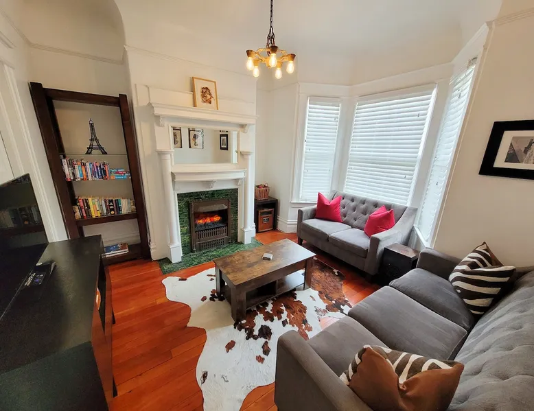 Comfortable blend of traditional details and modern amenities for your perfect SF stay This wonderful and charming flat has much of its original 1908 Edwardian period details intact for your next San Francisco getaway. The space Situated on a quiet street in the highly desirable and historic Nob Hill neighborhood, the flat is just one block from the Fairmont Hotel and Huntington Park at the top of Nob Hill - making it the ideal haven by having the city's best-known sights as well as downtown convention & conference centers, tech & financial firms are just a short walking distance away. Live like a local with the sounds of chiming cable cars 1 block away and harmonious Grace Cathedral bells in the faint distance 2 blocks away. The location is ideal for experiencing this historic and exciting city. The living room is warm and inviting getting wonderful direct sunlight in the mornings, featuring a 40” ROKU TV, high-speed wireless internet and Bluetooth speaker/radio. The fully equipped kitchen features quartz counter-tops, refinished original softwood floors, stainless steel appliances and a double-stacked washer & dryer. The flat accommodates five guests. There is a queen-size bed in the 1st bedroom with a closet, two twin sized beds in the 2nd bedroom with an armoire, and a twin-size bed in the 3rd bedroom with a closet. The 1.5 split bathrooms are appointed with Carrara marble floors and sink top, along with the restored original claw foot tub. The flat is stocked with everything you need to make your stay comfortable: pots and pans, dishes and glassware, cooking and dining utensils, Keurig K-Duo Single Serve & Carafe Coffee Maker, toaster, blender, along with a spice rack, coffee beans, laundry and dishwasher detergent, towels, linens, shower gel, shampoo and conditioner. The drop-leaf dining table seats four and can expand to five by adding the leaf underneath. Neighborhood: Located in one of the most desirable and quintessential San Francisco neighborhoods, Nob Hill is in the heart of the city within blocks of the best attractions, shopping, restaurants, bars, theaters and entertainment the city has to offer. Convenient shopping: Union Square (13-minute walk) Trader Joe's and CVS Pharmacy (9-minute walk) VJ’s Mini Market (2-minute walk) Le Beau Market (5-minute walk) Easy public transportation to all areas: 3 different cable car lines 1 block, 1.5 and 2 blocks away, respectively. Bus stop is 1/2 block away. Taxis and shuttles are easy to catch at the Fairmont Hotel 1 block away. With the latest addition of the new Chinatown MUNI Subway station being 3 blocks away, gives quick access to many parts of the city. PLEASE NOTE: There is NO parking available with the flat and street parking is limited. However, there are parking garages within 1.5 to 2 blocks away. Visit "Best Parking dot com" and "San Francisco Municipal Transit Authority (SFMTA)" websites for more public parking and transportation information. Registration number 2024-006841STR