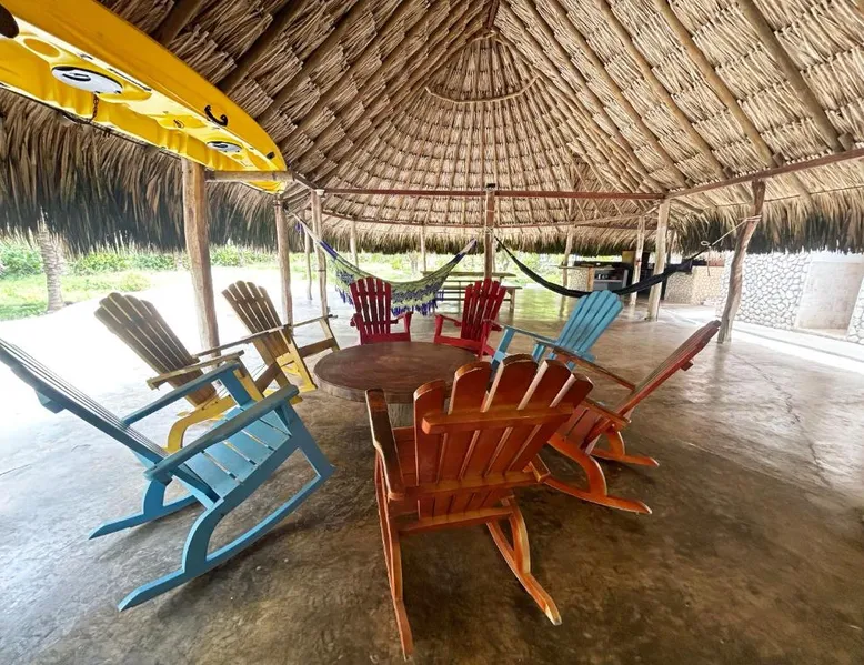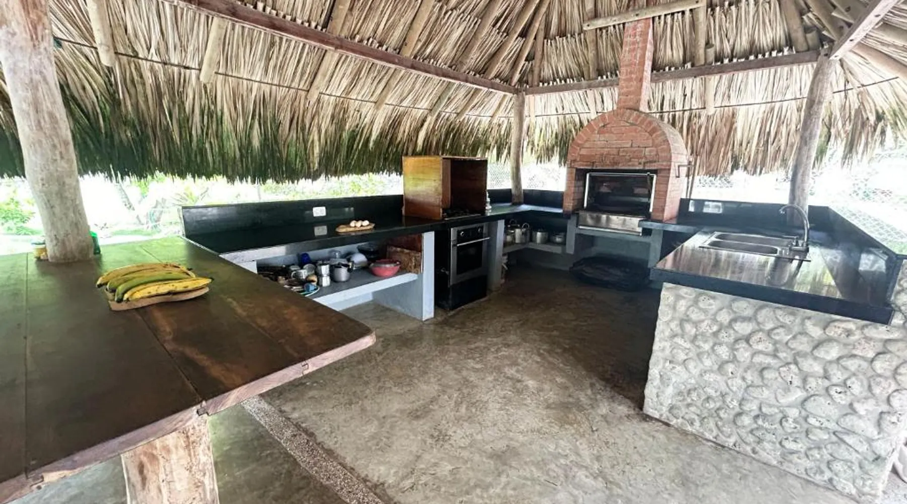Beachfront Location: La Felicidá in Cartagena de Indias offers a private beach area and direct beachfront access. Guests enjoy sea views and a sun terrace, complemented by a lush garden. Spacious Accommodations: The holiday home features two bedrooms and two bathrooms, providing ample space for relaxation. The ground-floor unit includes a terrace and patio, ideal for outdoor living. Modern Amenities: La Felicidá provides free WiFi, a fully equipped kitchen, and a dining area. Additional facilities include a solarium, children’s playground, and outdoor seating and dining areas. Nearby Attractions: Juan Guy Beach is less than 0.6 mi away, offering easy beach access. Canoeing and hiking activities are available nearby, enhancing the holiday experience. Guests will find a refrigerator, kitchenware and an oven in the kitchen. The holiday home also provides guests with a barbecue. The spacious holiday home provides a tea and coffee maker, a seating area, a dining area as well as a terrace with sea views. The unit offers 3 beds.