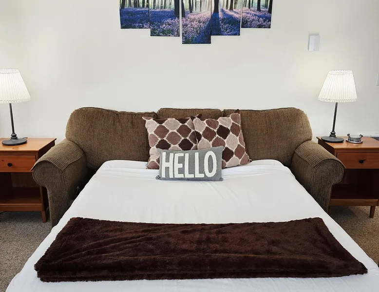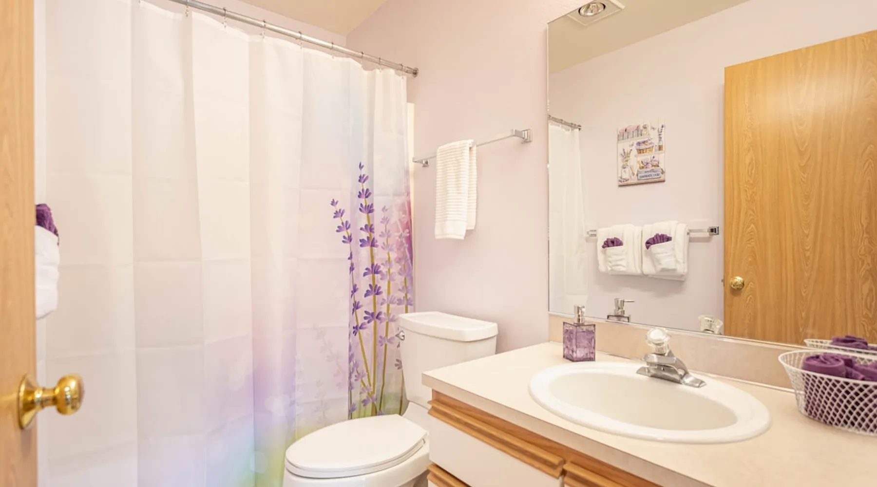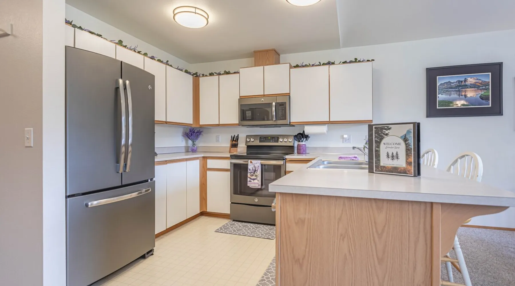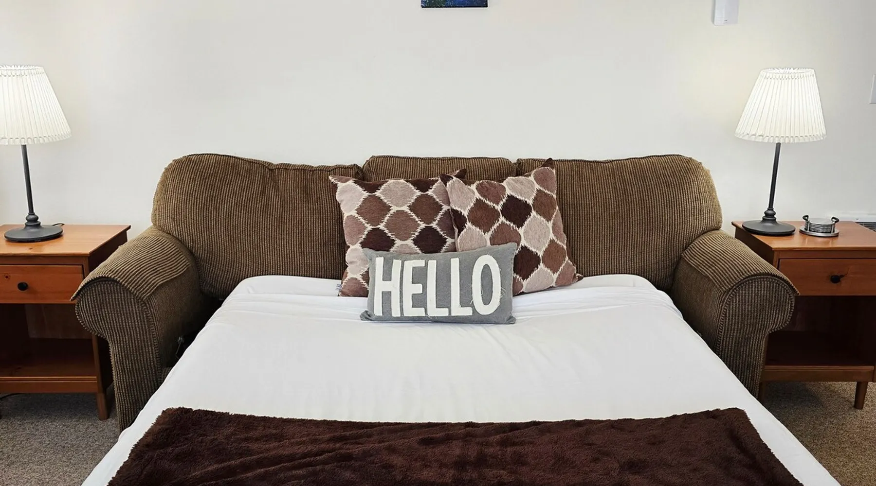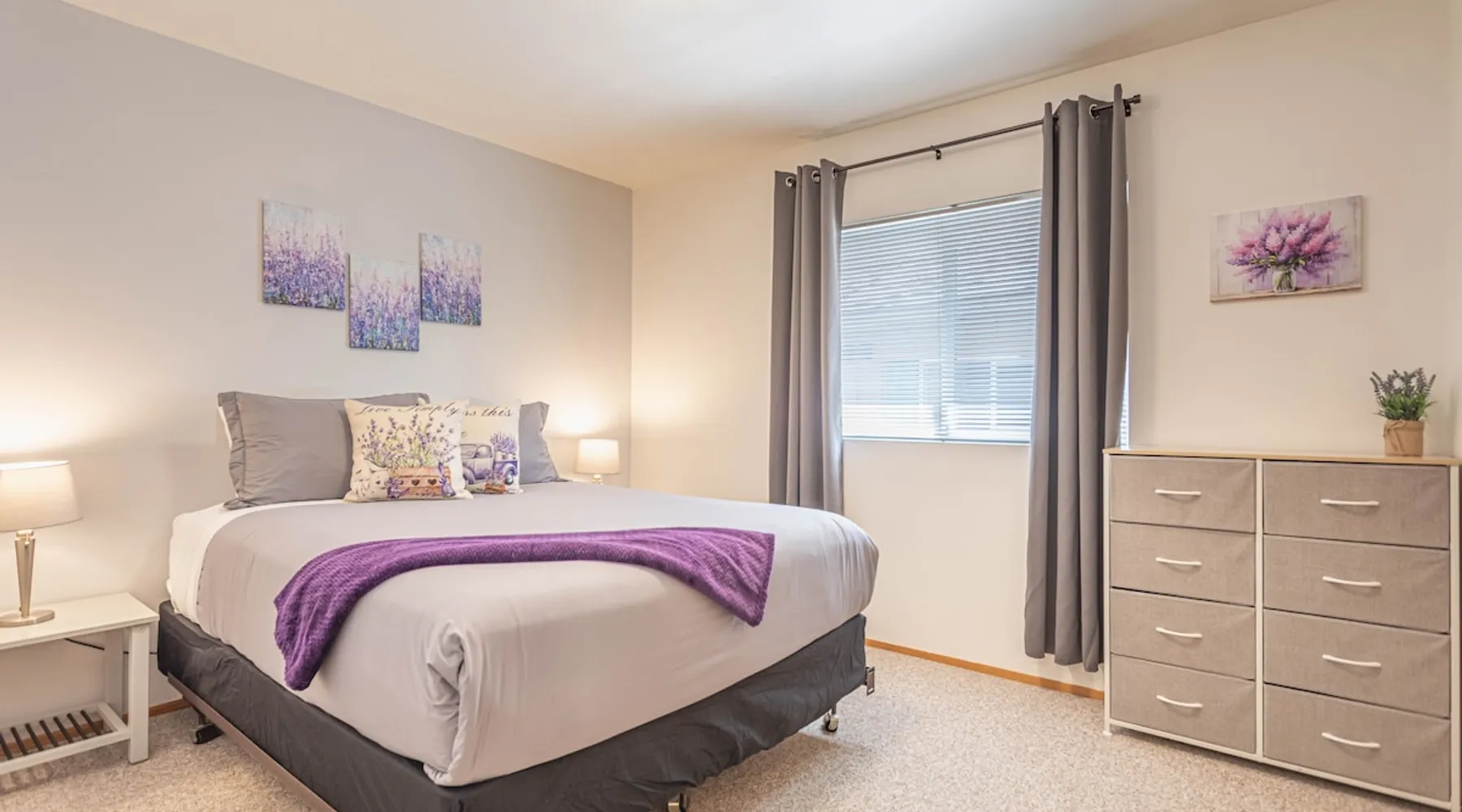 Introducing a peaceful, second-floor condo that is the perfect mountain retreat. Bright & cheerful with a calming theme, it features 2 bedrooms w/queen beds, 2 baths, and a pull-out sofa. The fully stocked kitchen, fireplace, air conditioning, & more, ensure a comfortable stay. Enjoy tranquil mountain views from the deck while sipping a glass of wine. Impeccably clean & pet-free, this condo has everything you need for a relaxing Bavarian getaway. Read More Details Below. The space Master Bedroom w/Private Bath, Queen bed, Dresser & Smart TV Second Bedroom: Queen Bed, Dresser Living Room: Pull out Sofa Bed (full size), Smart TV *Fully Stocked Kitchen *Dining area seating for 6+ *Dedicated Work Space (Desk) in Dining area *Living room with 2 Recliners, Sofa, Smart TV and Electric Fireplace *Ensuite Bathroom has Walk-in Shower, Hairdryer, shamp/cond/bodywash *Second Bathroom: Bathtub, Shower, Hairdryer, shamp/cond/bodywash *Two Smart TV's *Washer/Dryer with Detergent and Bounce *Private Deck with Seating and Mountain views *Boardgames *All Linens provided w/extra pillows *Bedside USB Plug-Ins *Air Conditioning in Summer Months *Heat Thermostats in each room QUESTIONS? Your questions are important to us and answered really fast! We're here to serve you & to make your stay incredibly memorable! Kristiina Miller, Property Manager iloveleavenworth Guest access The condo is entirely yours to enjoy, both inside and out, any time of day. Please note that the outdoor storage spaces and one indoor linen closet are locked for housekeeping use. Other things to note The Alpine Roller Coaster is conveniently located right across the street from the condo complex—just be sure to make reservations in advance. You’ll find a welcome book on the counter filled with helpful tips on where to eat, shop, and explore in Leavenworth. If you have any additional questions, feel free to give us a call—we're always here to help!