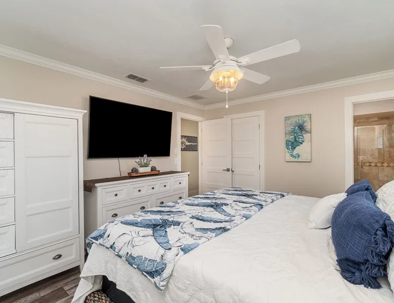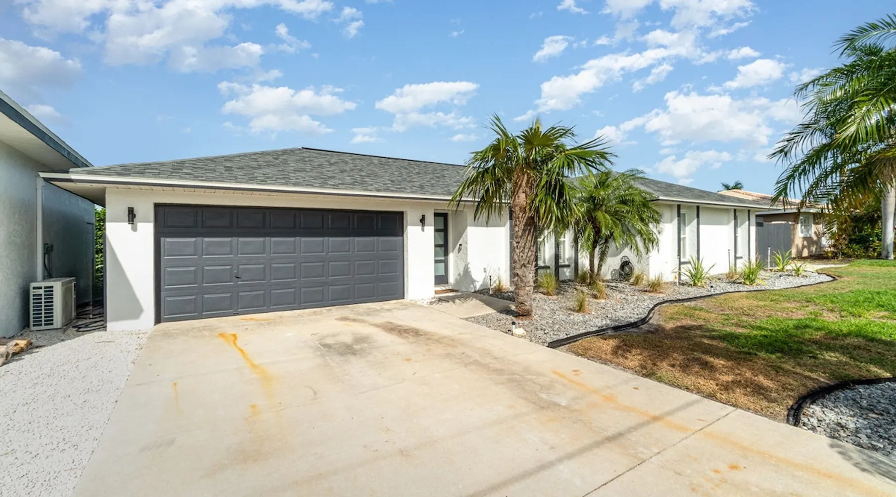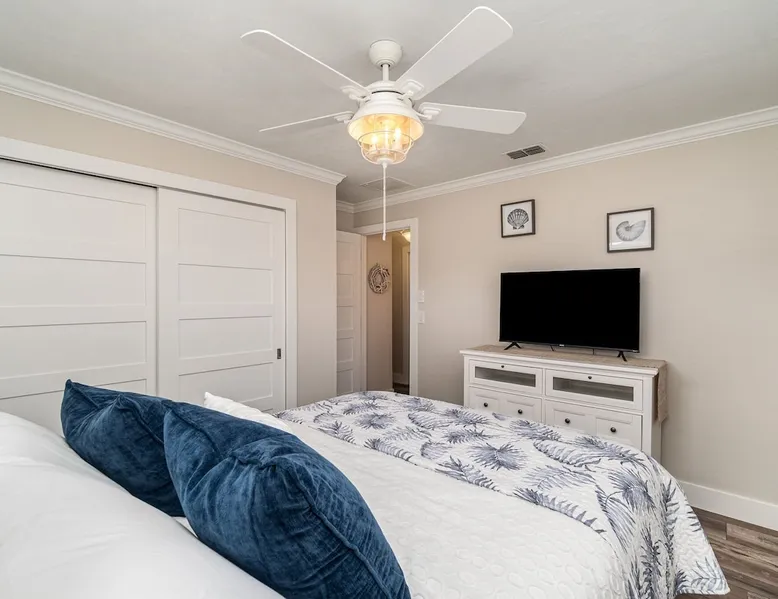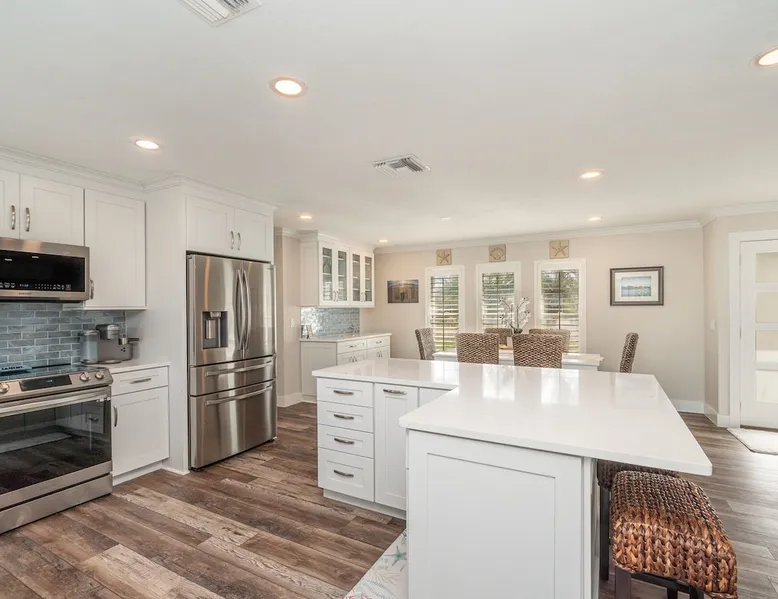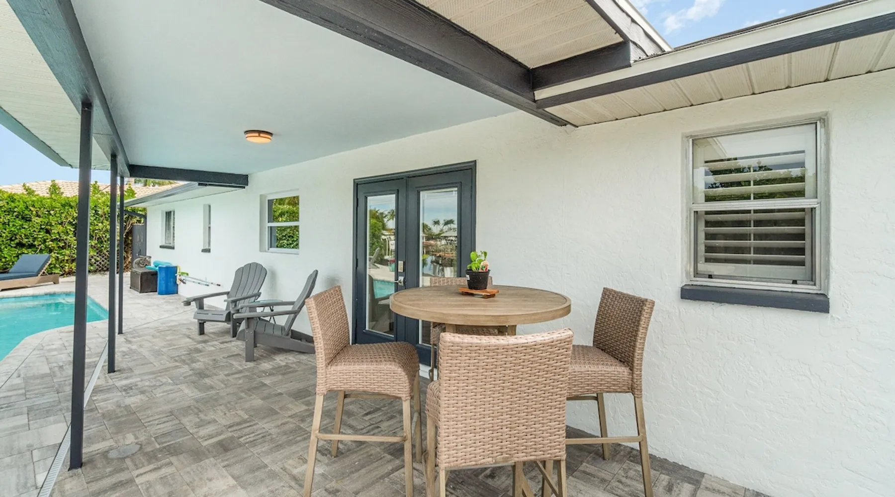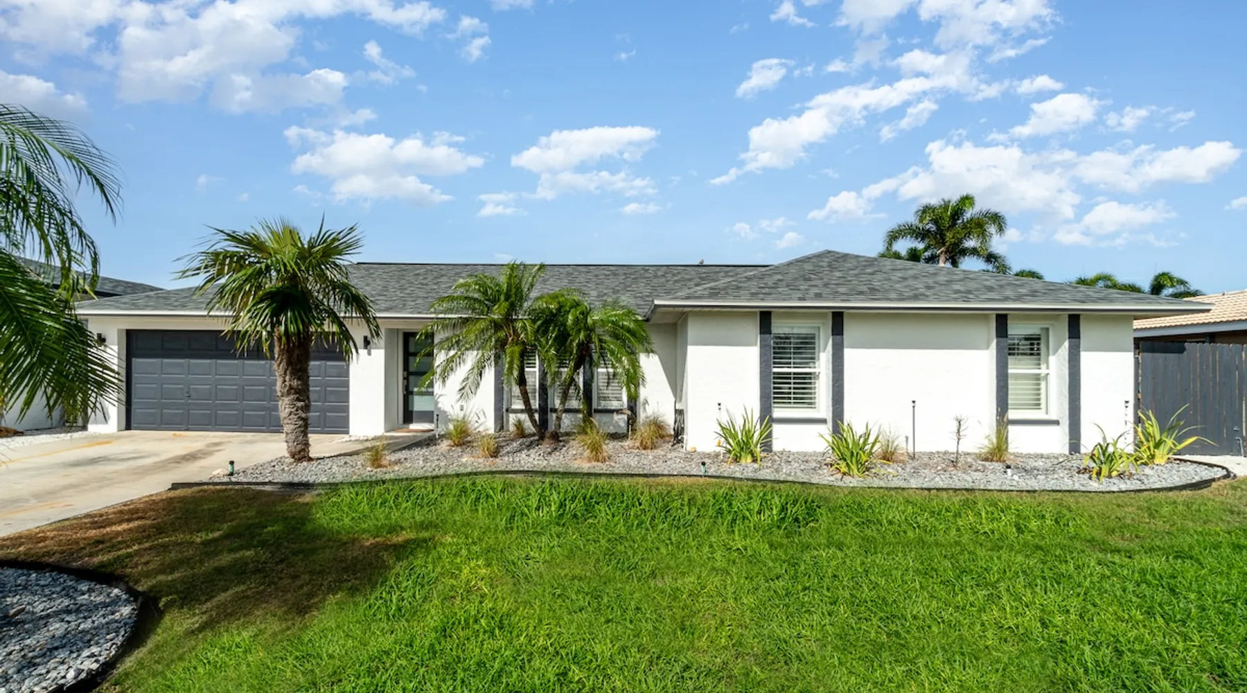 Sailboat access. Under 15 min from Fort Myers Beach. Fire Pit and Heated Pool The space Kick Back & Relax in Style! Enjoy the perks this stunning property and location have to offer. The incredible outdoor area boosts a perfect set up for relaxation. The fire pit, heated pool, canal view, boat dock, loungers, BBQ, outdoor seating, palm tress, and Ping Pong table, are just some of the features that will make you want to stay here forever. This home is perfect for guests who love exploring the waterways and area. All you can think of is just a short ride away! Water adventures, shopping, restaurants, sandy beaches, nightlife fun, trail parks, and so much more. You’ll feel right at home when you enter the house. This fully remodeled Villa features an open-concept living and dining area with plenty of seating along with an impressive 85-inch smart TV in the living room. The kitchen has a large island and is fully stocked with everything you need to cook a great meal for you and your family. The master bedroom features a comfortable king-size bed, a 65 ich smart TV, and a mini split AC unit for those who want to set the temp at night just the way they have it at home. The additional two bedrooms are equipped with a comfortable mattress for a good night’s sleep and a TV to watch your favorite TV shows. For those traveling with small children or planning to go to the beach, we provide some infant and beach equipment. Step outside to find yourself mesmerized by stunning water views, beautiful sunsets, and a wide variety of wildlife. Spend a cozy night gathered by the firepit roasting marshmallows and having fun with the whole family. For those who want to sit back and relax, you’ll love having your coffee/tea outside while spotting the dolphins and manatees. Spend your vacation relaxing in a spacious waterfront home and enjoy the beautiful sunsets from your lanai. You will be required to sign a rental agreement and credit card authorization form, which can be done electronically. You must be at least 25 years old to rent this property. Access to the home will be restricted if requirements are not completed. This property requires an energy contribution payment of $0.22 per KWh plus tax. Please note it when making your reservation. Please note that the garage is being used by the owner and you won't have access to it. The boat lift is used by the owner and not available to the guests. The boat dock can be used to tie a boat. There are security cameras at the front and on the sides of the house. Wood won't be provided for the fire pit.
