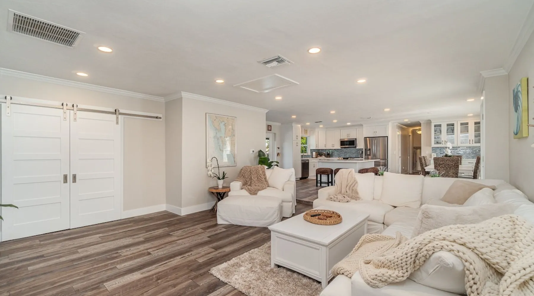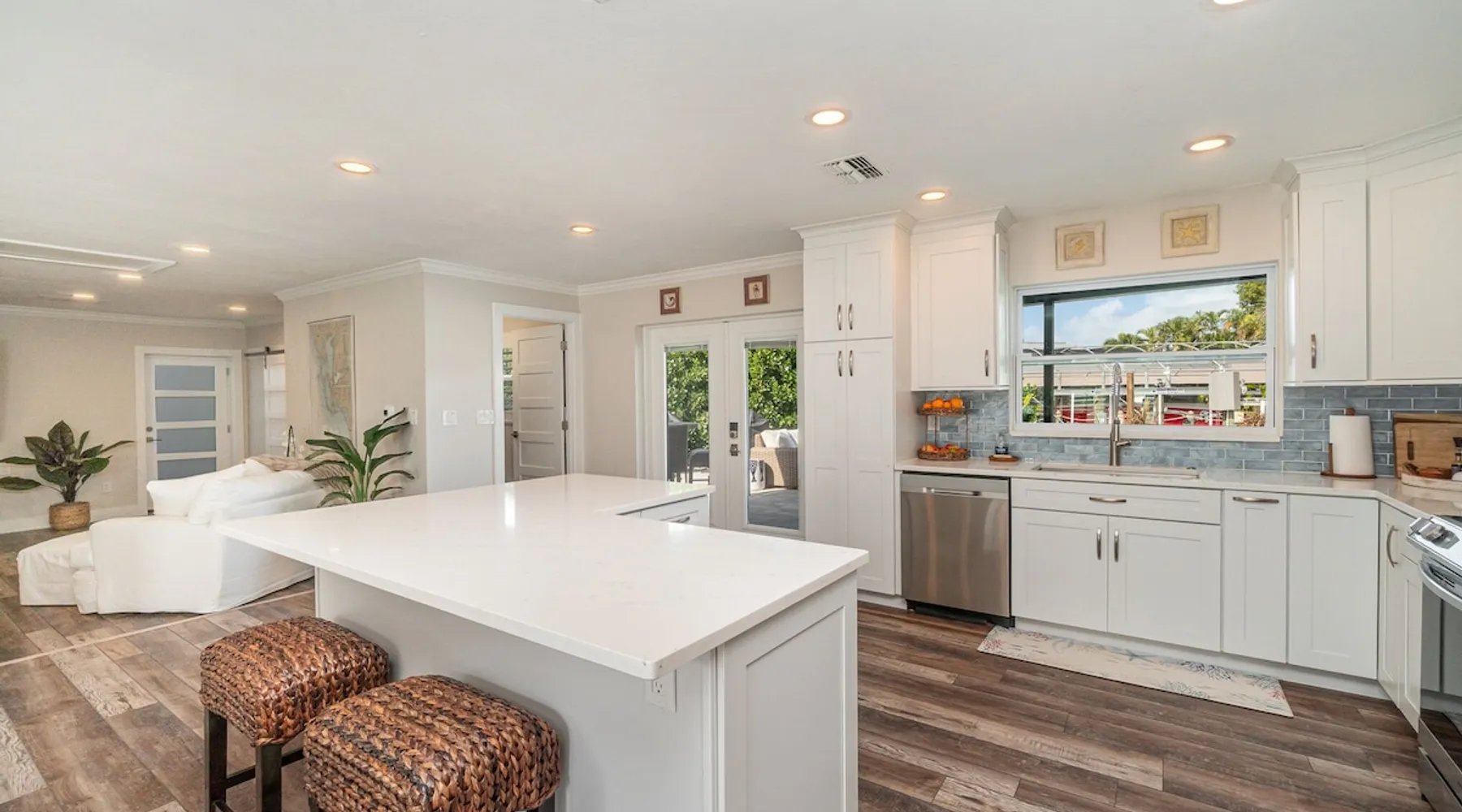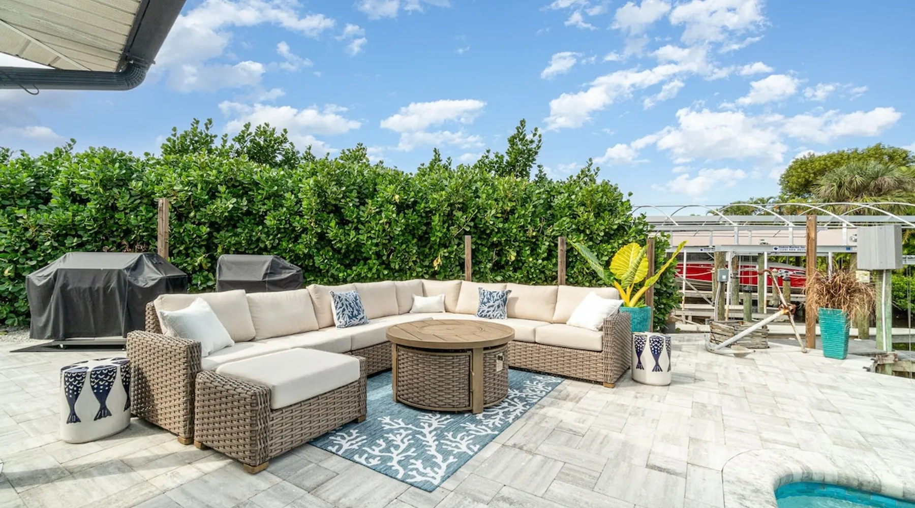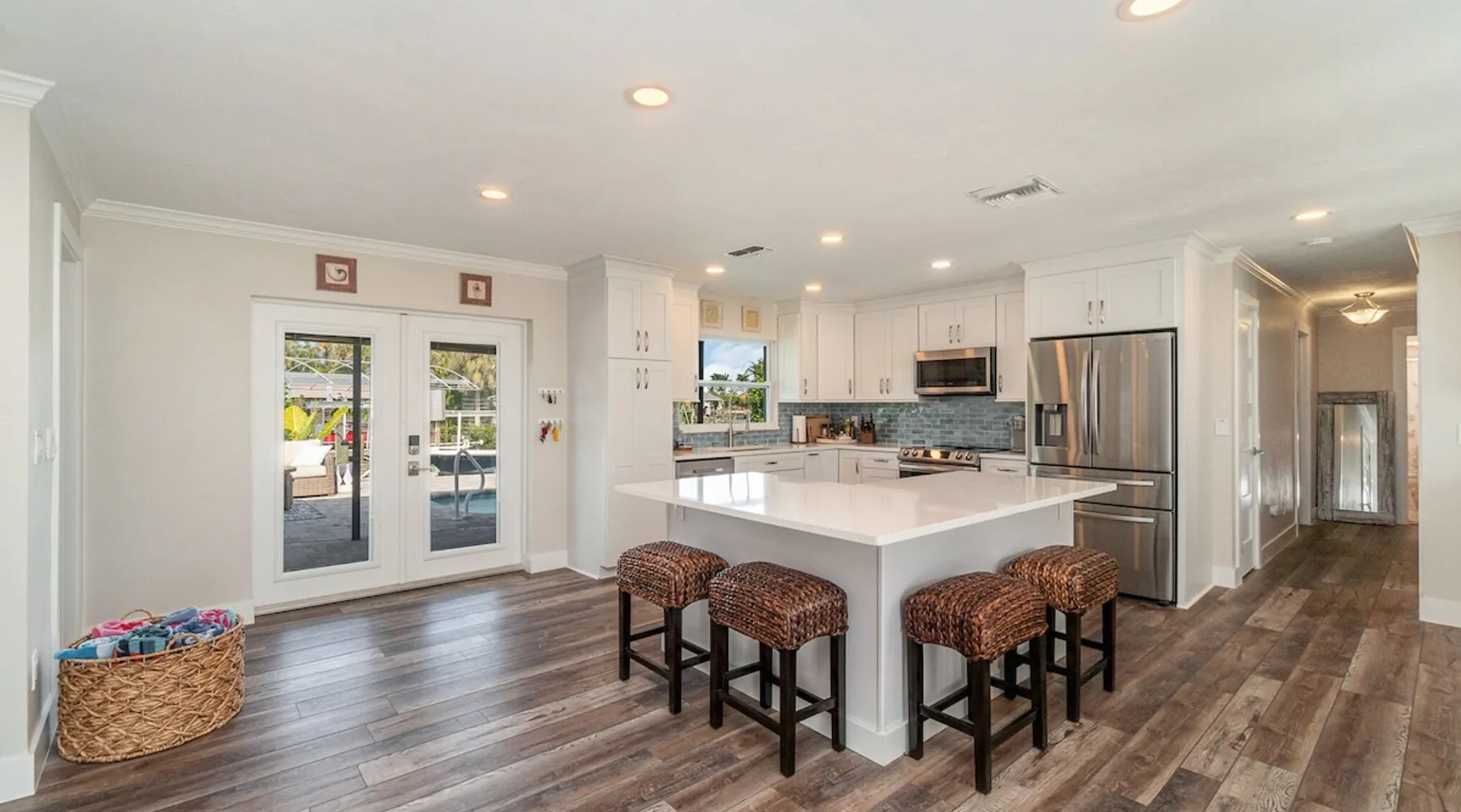 Sailboat access. Under 15 min from Fort Myers Beach. Fire Pit and Heated Pool The space Kick Back & Relax in Style! Enjoy the perks this stunning property and location have to offer. The incredible outdoor area boosts a perfect set up for relaxation. The fire pit, heated pool, canal view, boat dock, loungers, BBQ, outdoor seating, palm tress, and Ping Pong table, are just some of the features that will make you want to stay here forever. This home is perfect for guests who love exploring the waterways and area. All you can think of is just a short ride away! Water adventures, shopping, restaurants, sandy beaches, nightlife fun, trail parks, and so much more. You’ll feel right at home when you enter the house. This fully remodeled Villa features an open-concept living and dining area with plenty of seating along with an impressive 85-inch smart TV in the living room. The kitchen has a large island and is fully stocked with everything you need to cook a great meal for you and your family. The master bedroom features a comfortable king-size bed, a 65 ich smart TV, and a mini split AC unit for those who want to set the temp at night just the way they have it at home. The additional two bedrooms are equipped with a comfortable mattress for a good night’s sleep and a TV to watch your favorite TV shows. For those traveling with small children or planning to go to the beach, we provide some infant and beach equipment. Step outside to find yourself mesmerized by stunning water views, beautiful sunsets, and a wide variety of wildlife. Spend a cozy night gathered by the firepit roasting marshmallows and having fun with the whole family. For those who want to sit back and relax, you’ll love having your coffee/tea outside while spotting the dolphins and manatees. Spend your vacation relaxing in a spacious waterfront home and enjoy the beautiful sunsets from your lanai. You will be required to sign a rental agreement and credit card authorization form, which can be done electronically. You must be at least 25 years old to rent this property. Access to the home will be restricted if requirements are not completed. This property requires an energy contribution payment of $0.22 per KWh plus tax. Please note it when making your reservation. Please note that the garage is being used by the owner and you won't have access to it. The boat lift is used by the owner and not available to the guests. The boat dock can be used to tie a boat. There are security cameras at the front and on the sides of the house. Wood won't be provided for the fire pit.
