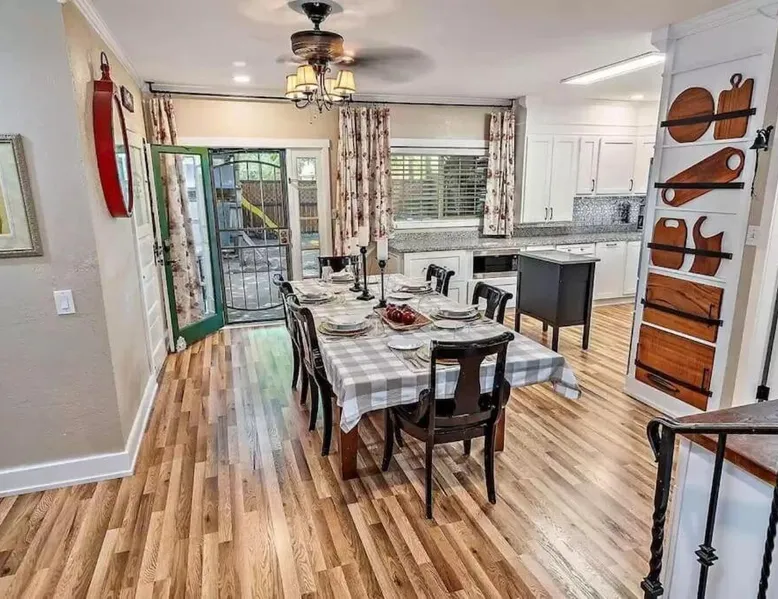 Spacious Accommodations: The 1930s Queen Anne Historic Downtown Retreat in Medford offers a spacious holiday home with four bedrooms and three bathrooms. The living room features a cozy fireplace and a fully equipped kitchen. Modern Amenities: Guests enjoy free WiFi, air-conditioning, and a washing machine. Additional amenities include bathrobes, a spa bath, and a patio. The property includes a work desk, TV, and free toiletries. Convenient Location: Located 3.1 mi from Rogue Valley International-Medford Airport, the retreat is 12 mi from Oregon Shakespeare Festival, Lithia Park, and Oregon Cabaret Theater. An ice-skating rink is nearby. Guests will have a special experience as the holiday home features a fireplace. Guests will find a stovetop, a refrigerator, a dishwasher and kitchenware in the fully equipped kitchen. The holiday home also offers a barbecue. The spacious holiday home provides air conditioning, a washing machine, as well as a shared bathroom featuring a bath and a hairdryer. The unit offers 6 beds.