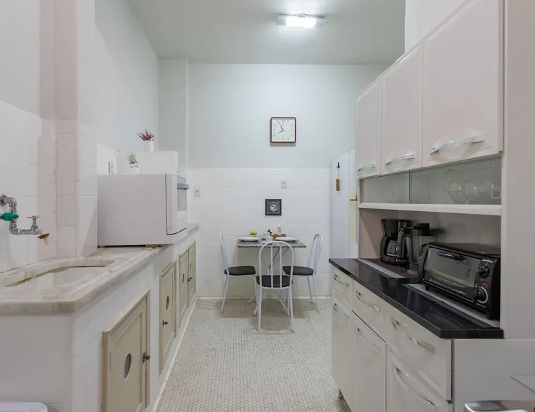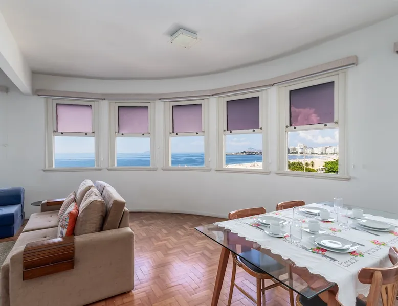❤ Feel at home with comfort and tranquility: ☑ View of Copacabana Beach ☑ Full kitchen ☑ WiFi ☑ Home office space ☑ Close to the Metro ☑ Ideal for tourism or business trips The space Great 3-bedroom apartment, spacious and airy, with view of Copacabana Beach, space for home office and an equipped and functional kitchen. Close to the Siqueira Campos subway station, in a location with easy access to the city's tourist attractions, a wide range of bars, restaurants and shops in general. Guest access Guests will have access to all spaces in the apartment, with the exception of the support rooms located next to the service area.