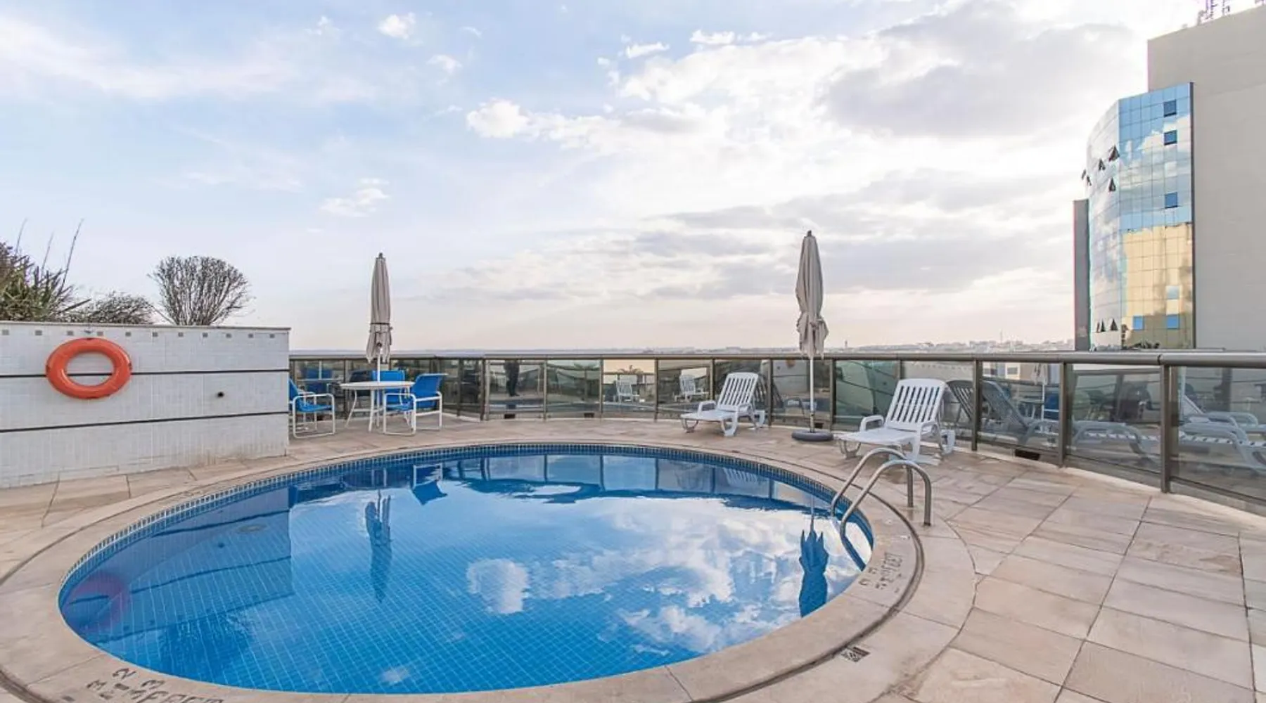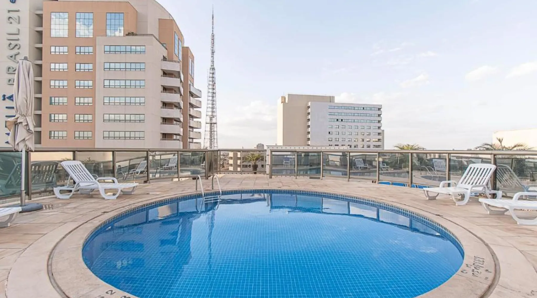 Comfortable Accommodations: Apart-hotel Brasil 21 in Brasília offers two-bedroom apartments with one bathroom and a living room. Each unit includes air-conditioning, a terrace, and a rooftop pool. Exceptional Facilities: Guests can enjoy a sauna, year-round outdoor swimming pool, and free WiFi. Additional amenities include a steam room, 24-hour front desk, electric vehicle charging station, family rooms, and room service. Prime Location: Located 11 mi from Brasilia International Airport, the aparthotel is near attractions such as the Cultural Complex of the Republic and Conjunto Nacional Mall. Highly rated by guests for its excellent facilities and services. Guests will have a special experience as this apartment offers a pool with a view and a sauna. This apartment features 1 living room, 2 separate bedrooms and 1 bathroom with a shower and free toiletries. The well-equipped kitchen has a stovetop, a refrigerator, kitchenware and a microwave. The air-conditioned apartment features a flat-screen TV with cable channels, a washing machine, a tea and coffee maker, a seating area as well as city views. The unit has 2 beds.