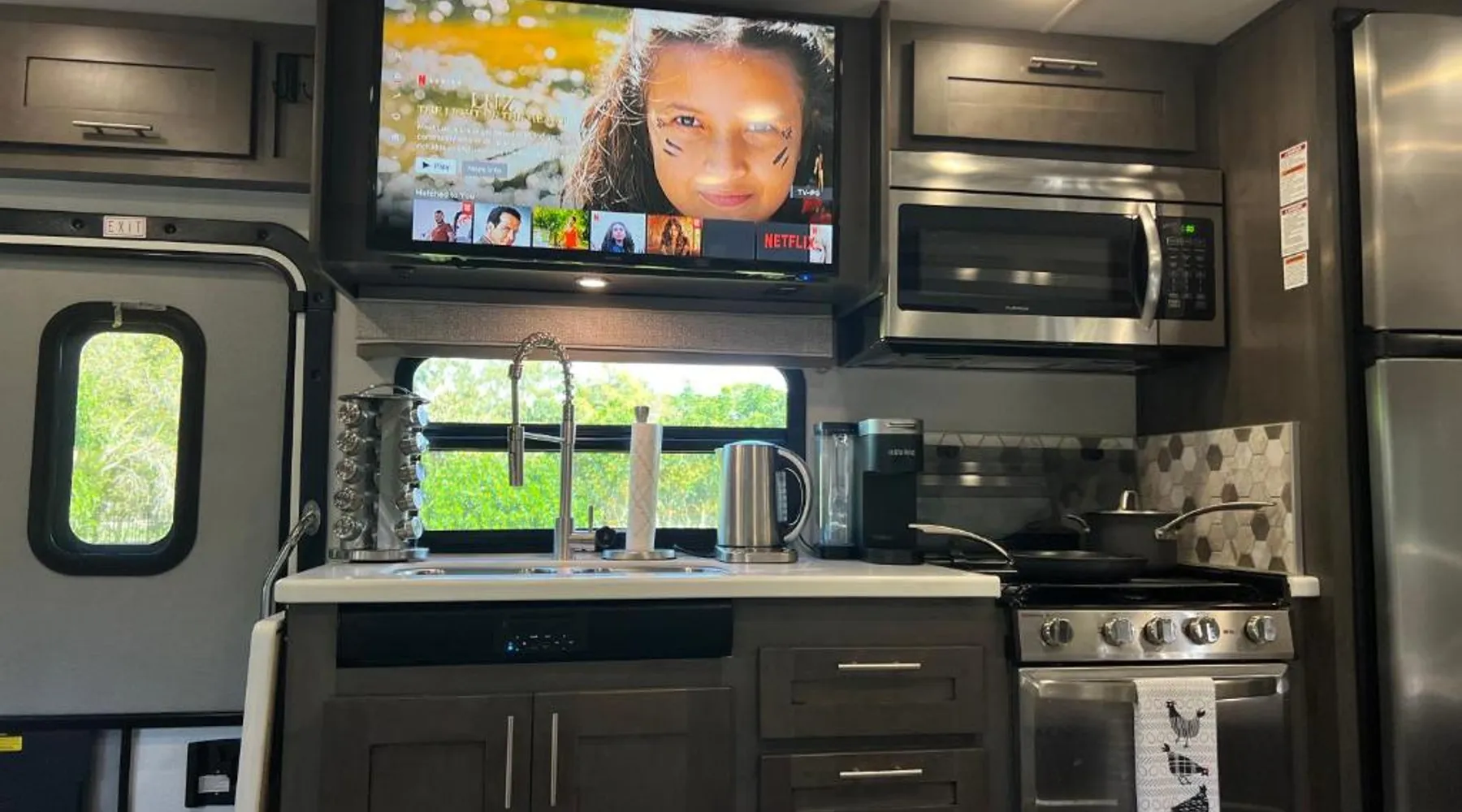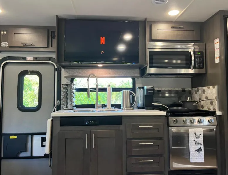 The Magic Motor Home offers accommodations in Parkland, 11 miles from Palm Aire Country Club and 11 miles from Mizner Park. The property is around 11 miles from Isle of Capri Casino and Race Track, 13 miles from Pompano City Center, and 13 miles from Pompano Beach Amphitheater. There's an outdoor pool and guests can use free Wifi and free private parking. This air-conditioned 2-bedroom campground comes with a fully equipped kitchen, a seating area, a dining area, and a TV. Towels and bed linen are available in the campground. The property has an outdoor dining area. Guests can relax in the garden at the property. Pompano Pier is 14 miles from the campground, while Villa Rica Railroad Station is 15 miles from the property. Boca Raton Airport is 11 miles away. Meals can be prepared in the kitchen, which has a stovetop, a refrigerator, an oven and a microwave. The air-conditioned mobile home features a TV, a private entrance, a tea and coffee maker, a seating area as well as garden views. The unit has 6 beds.