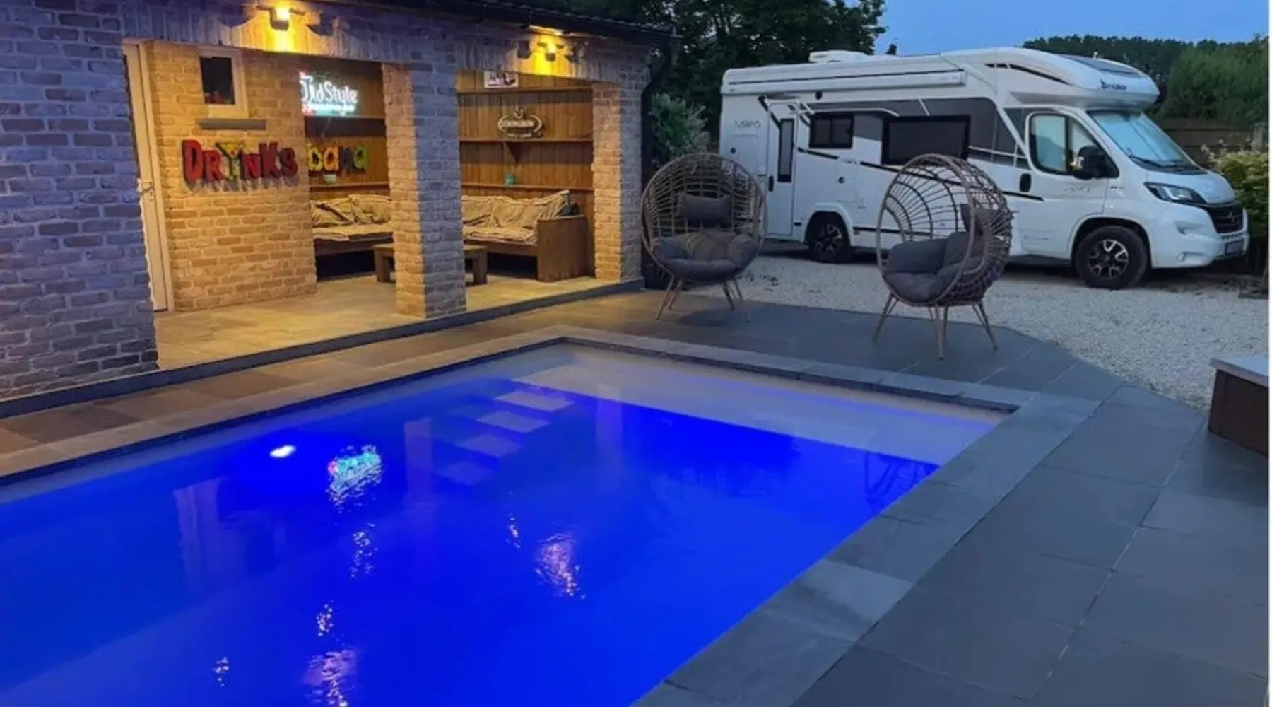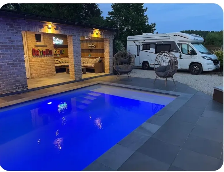 Our luxurious camper is available to stay in at our home. Well located 5 minutes from Aalst, also within walking distance of the station. Ghent and Brussels can be reached in less than half an hour by car/train for lovers of our cities. Several cycling and walking routes but nature reserves nearby for lovers of nature and tranquility. We also make the heated swimming pool (30°C) available from 1/5 to 1/10 Breakfast box available on request! The space The camper has 2 double beds, 1 of which is fixed and 1 that comes down into the living room. The kitchen has a Nespresso machine and all the necessities to cook your jar. The bathroom has a toilet, washbasin and a shower. From May 1 to September 30 the pool will remain available and heated to 30°. (if weather conditions allow, the dates may differ but there is no certainty about that) We also make our brand new barrel sauna available. (until 10 pm) Extra relaxation or relax the muscles after a day of city trips or cycling in Flemish Ardennes! Other things to note - hot tub, sauna are usable all year round usable! Just let us know an hour in advance so we can set up the wood-burning stoves! *coziness trump!* - breakfast is available on request - other wellness treatments are available in our salon and by reservation. Feel free to ask more info here!