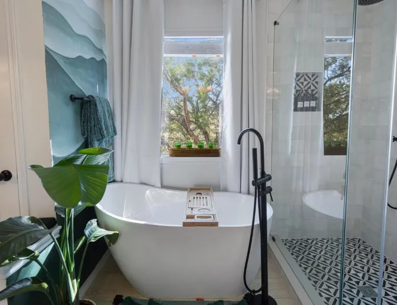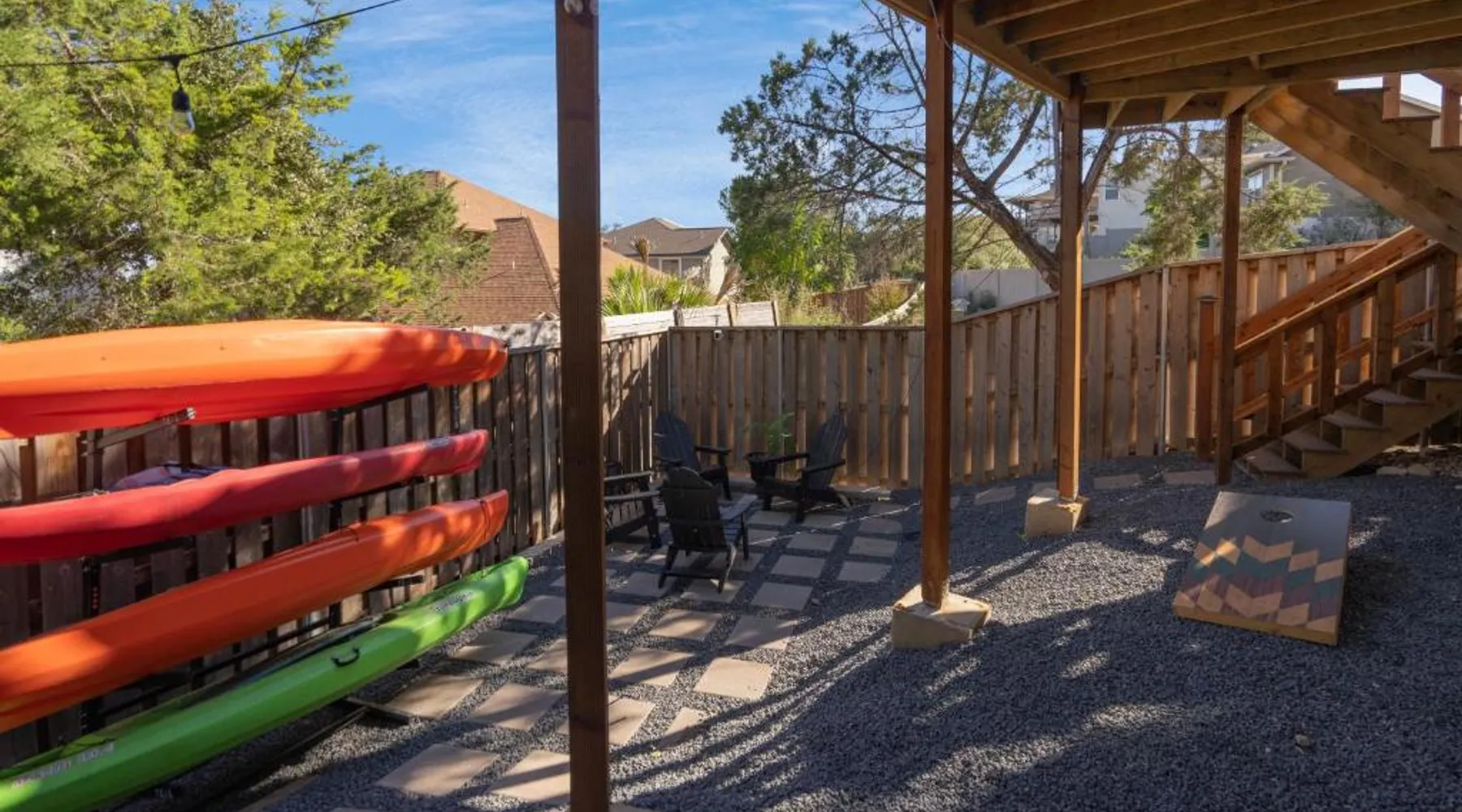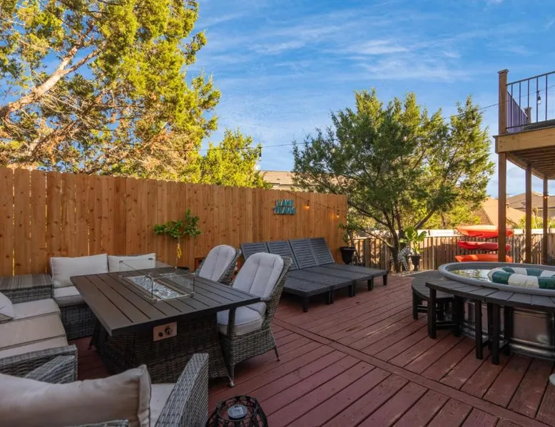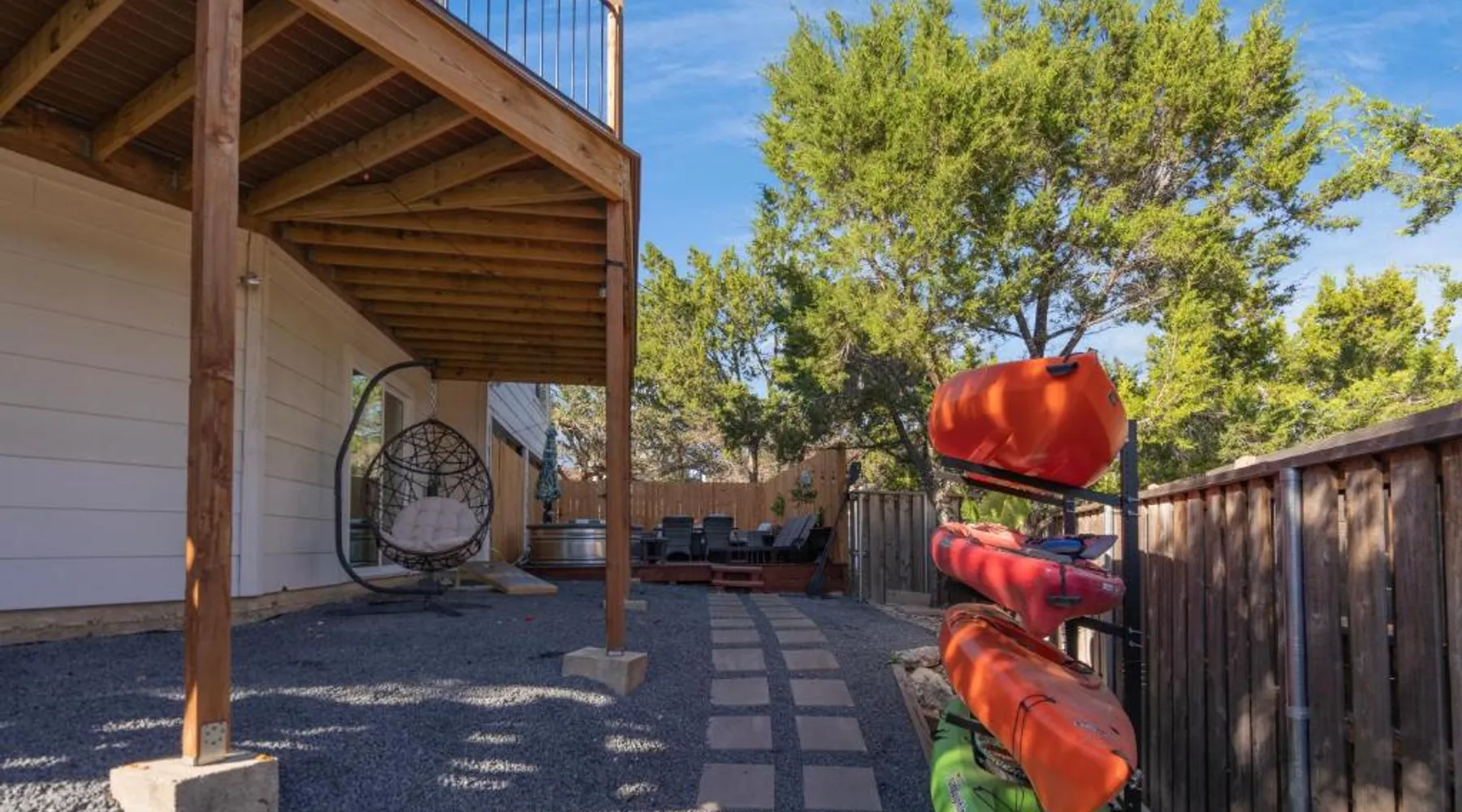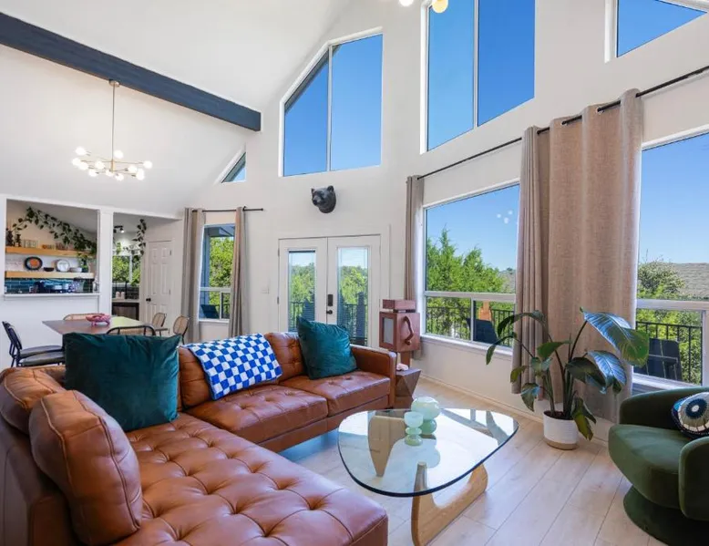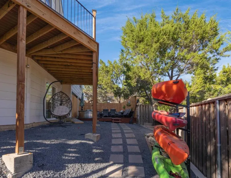 Elegant Holiday Home in Lago Vista: Casa Queso Blanco offers a serene retreat in Lago Vista, featuring a swimming pool with stunning views, a lush garden, and a spacious terrace. Guests can relax in the outdoor dining area or enjoy the peaceful lake views from the balcony. Comfortable Living Spaces: The holiday home includes three bedrooms and two bathrooms, complemented by a comfortable living room. Family rooms provide ample space for relaxation, while free WiFi ensures connectivity throughout the property. Modern Amenities: Equipped with air-conditioning, a fully fitted kitchen, and a washing machine, Casa Queso Blanco caters to all guest needs. Additional amenities include streaming services, a work desk, and a dining table, enhancing the overall stay experience. Convenient Location: Located 46 mi from Austin-Bergstrom International Airport, the property offers easy access to local attractions. The quiet street setting provides a peaceful retreat, ideal for relaxation and exploration. The pool with a view is the standout feature of this holiday home. Boasting a private entrance, this air-conditioned holiday home comes with 1 living room, 3 separate bedrooms and 2 bathrooms with a bath and a bidet. The fully equipped kitchen has a stovetop, a refrigerator, a dishwasher and kitchenware. Featuring a terrace with lake views, this holiday home also features a washing machine and a flat-screen TV with streaming services. The unit has 5 beds.