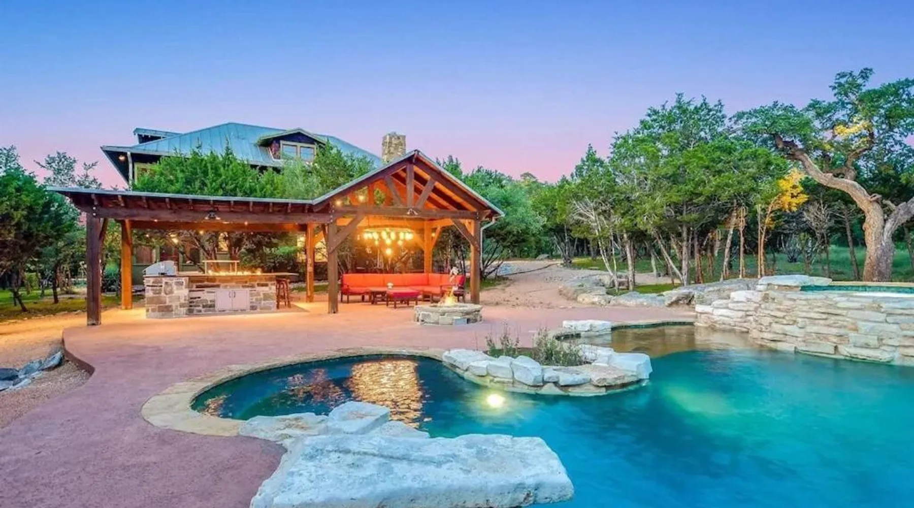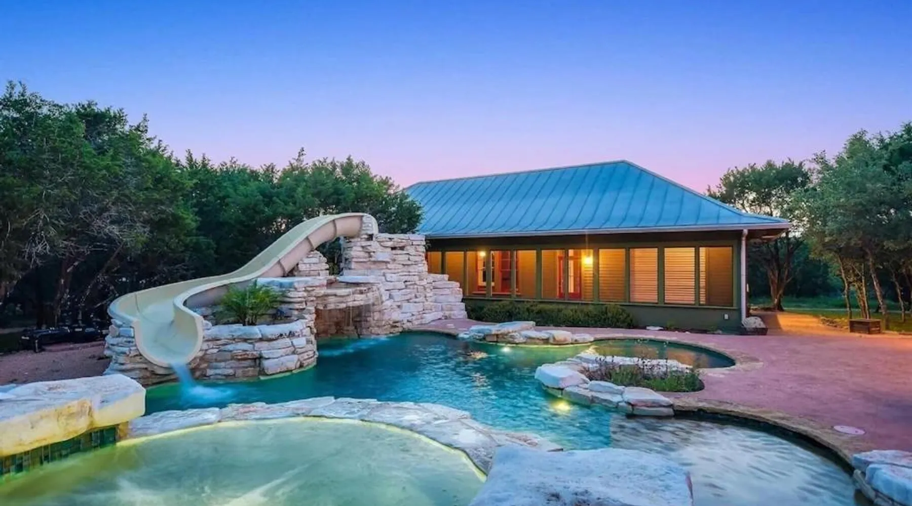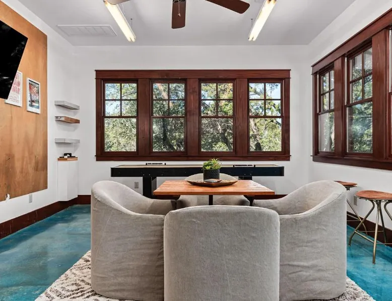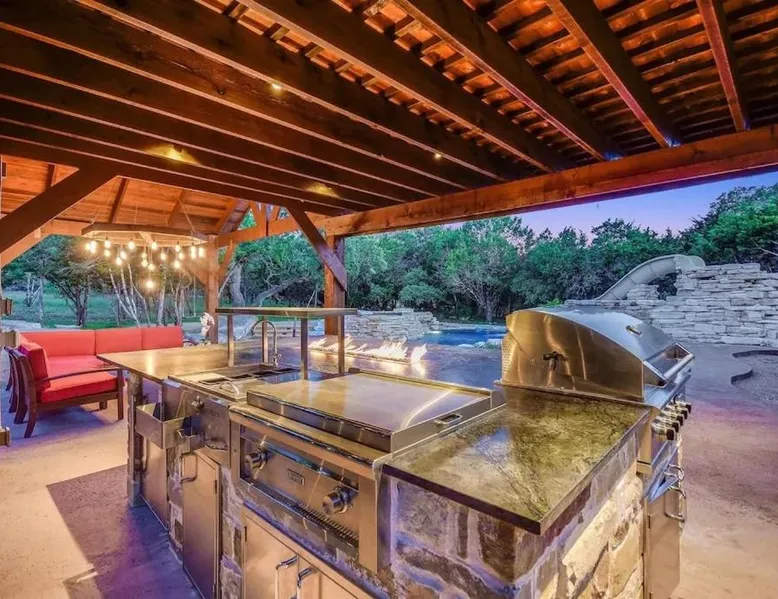 Spacious Accommodations: Grit&Grace Ranch in Bee Cave offers a spacious holiday home with five bedrooms and four bathrooms. The property features a private pool and a lush garden, providing ample space for relaxation. Outdoor Amenities: Guests can enjoy an outdoor swimming pool and a hot tub, perfect for unwinding. The resort-style pool and spa are complemented by free WiFi, ensuring connectivity throughout the stay. Leisure Facilities: The holiday home includes a games room, ideal for entertainment. Additional amenities include a washing machine, patio, and barbecue, catering to all guest needs. Convenient Location: Located 20 mi from Austin-Bergstrom International Airport, the property is close to attractions such as the Austin Convention Center (17 mi) and the Capitol Building (17 mi). Free on-site parking is available. The private pool and hot tub are the special features of this holiday home. Featuring a private entrance, this spacious holiday home also consists of 5 separate bedrooms and 4 bathrooms with a bath and a hairdryer. Guests will find a stovetop, a refrigerator, a dishwasher and kitchenware in the fully equipped kitchen. The holiday home also offers a barbecue. This holiday home features air conditioning, a washing machine, a TV and a patio. The unit offers 14 beds.