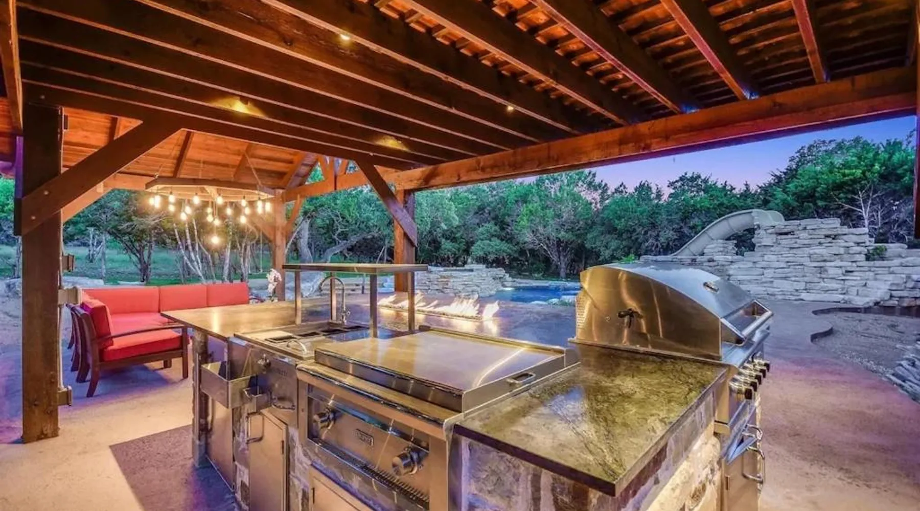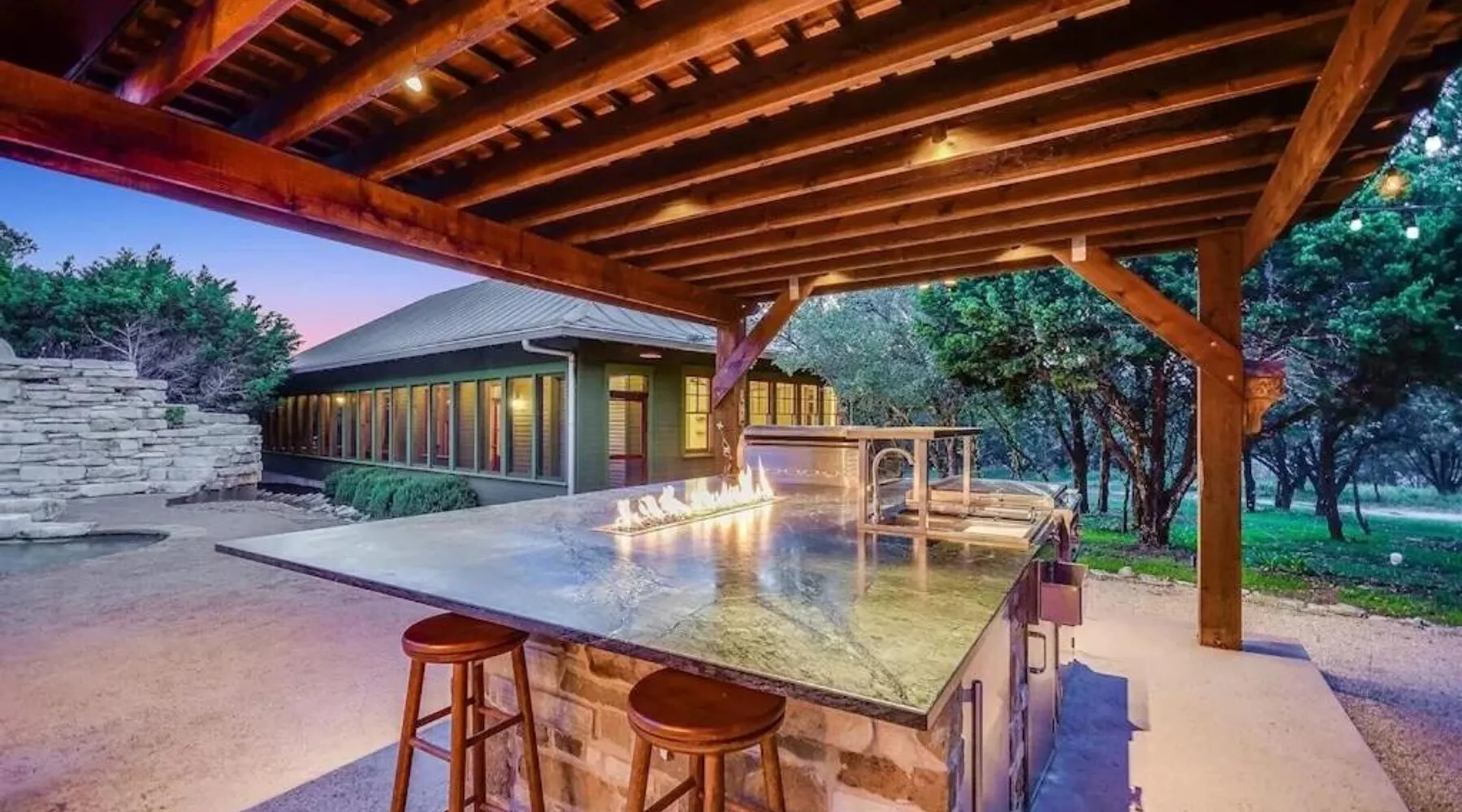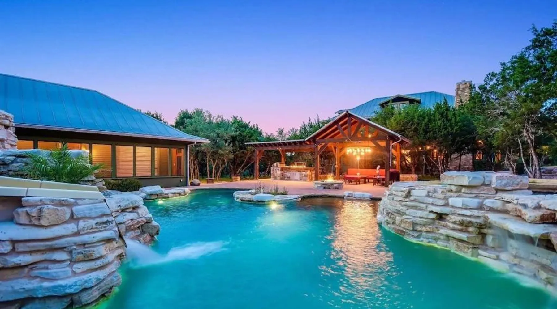 Spacious Accommodations: Grit&Grace Ranch in Bee Cave offers a spacious holiday home with five bedrooms and four bathrooms. The property features a private pool and a lush garden, providing ample space for relaxation. Outdoor Amenities: Guests can enjoy an outdoor swimming pool and a hot tub, perfect for unwinding. The resort-style pool and spa are complemented by free WiFi, ensuring connectivity throughout the stay. Leisure Facilities: The holiday home includes a games room, ideal for entertainment. Additional amenities include a washing machine, patio, and barbecue, catering to all guest needs. Convenient Location: Located 20 mi from Austin-Bergstrom International Airport, the property is close to attractions such as the Austin Convention Center (17 mi) and the Capitol Building (17 mi). Free on-site parking is available. The private pool and hot tub are the special features of this holiday home. Featuring a private entrance, this spacious holiday home also consists of 5 separate bedrooms and 4 bathrooms with a bath and a hairdryer. Guests will find a stovetop, a refrigerator, a dishwasher and kitchenware in the fully equipped kitchen. The holiday home also offers a barbecue. This holiday home features air conditioning, a washing machine, a TV and a patio. The unit offers 14 beds.
