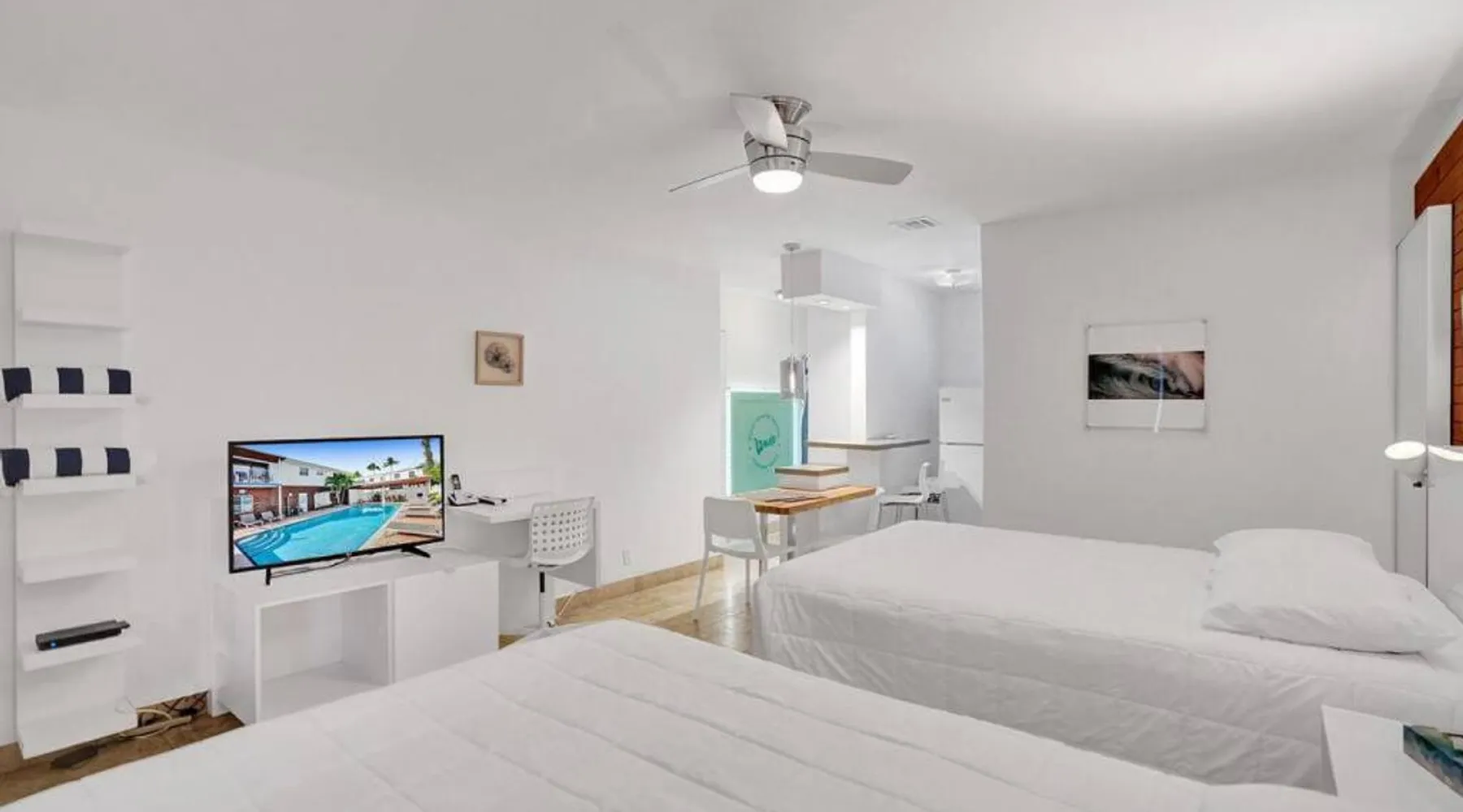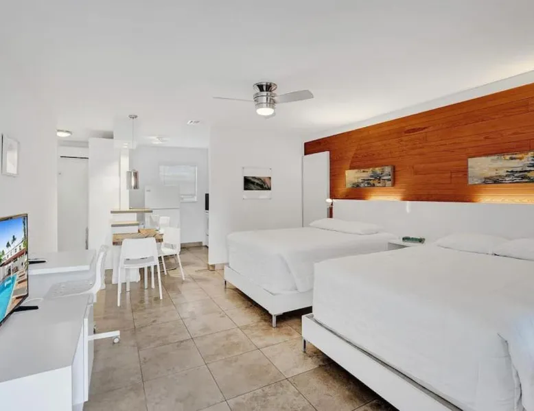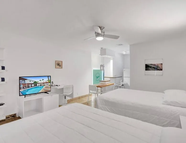 Comfortable Accommodations: Waves Beach Town Spacious Studio Apartment For 4 People in Pompano Beach offers a spacious apartment with one bedroom and one bathroom. The property features free WiFi, air-conditioning, and a fully equipped kitchen with kitchenware. Convenient Facilities: Guests can enjoy a work desk, barbecue, and free toiletries. The apartment includes a TV and luggage storage, ensuring a comfortable and hassle-free stay. Prime Location: Located 12 mi from Boca Raton Airport, the apartment is a short walk from Pompano Beach and less than 0.6 mi from Pompano Pier. Nearby attractions include Pompano City Center and Pompano Beach Amphitheater, each 2.1 mi away. The air-conditioned apartment features 1 bedroom, 1 bathroom and a kitchen. The apartment's kitchen, which has kitchenware, is available for cooking and storing food. This apartment provides a barbecue and a TV. The unit offers 2 beds.