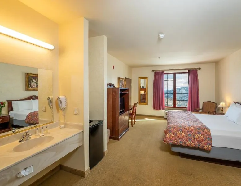 Comfortable Accommodations: Silverland Inn in Virginia City offers family rooms with air-conditioning, private bathrooms, and free WiFi. Each room includes a bath, shower, hairdryer, work desk, TV, and free toiletries. Convenient Facilities: Guests can enjoy a bar and free on-site private parking. Additional amenities include bathrobes, spa bath, and wardrobe. Prime Location: Located 20 mi from Reno-Tahoe International Airport and nearby attractions such as Reno-Sparks Convention Center (20 mi) and National Automobile Museum (24 mi). Guests appreciate the room cleanliness, convenient location, and attentive staff. This spacious suite is consisted of of 1 living room, 1 separate bedroom and 1 bathroom with a bath and free toiletries. This suite is air-conditioned and features a flat-screen TV, a carpeted floor and heating. The unit offers 1 bed.