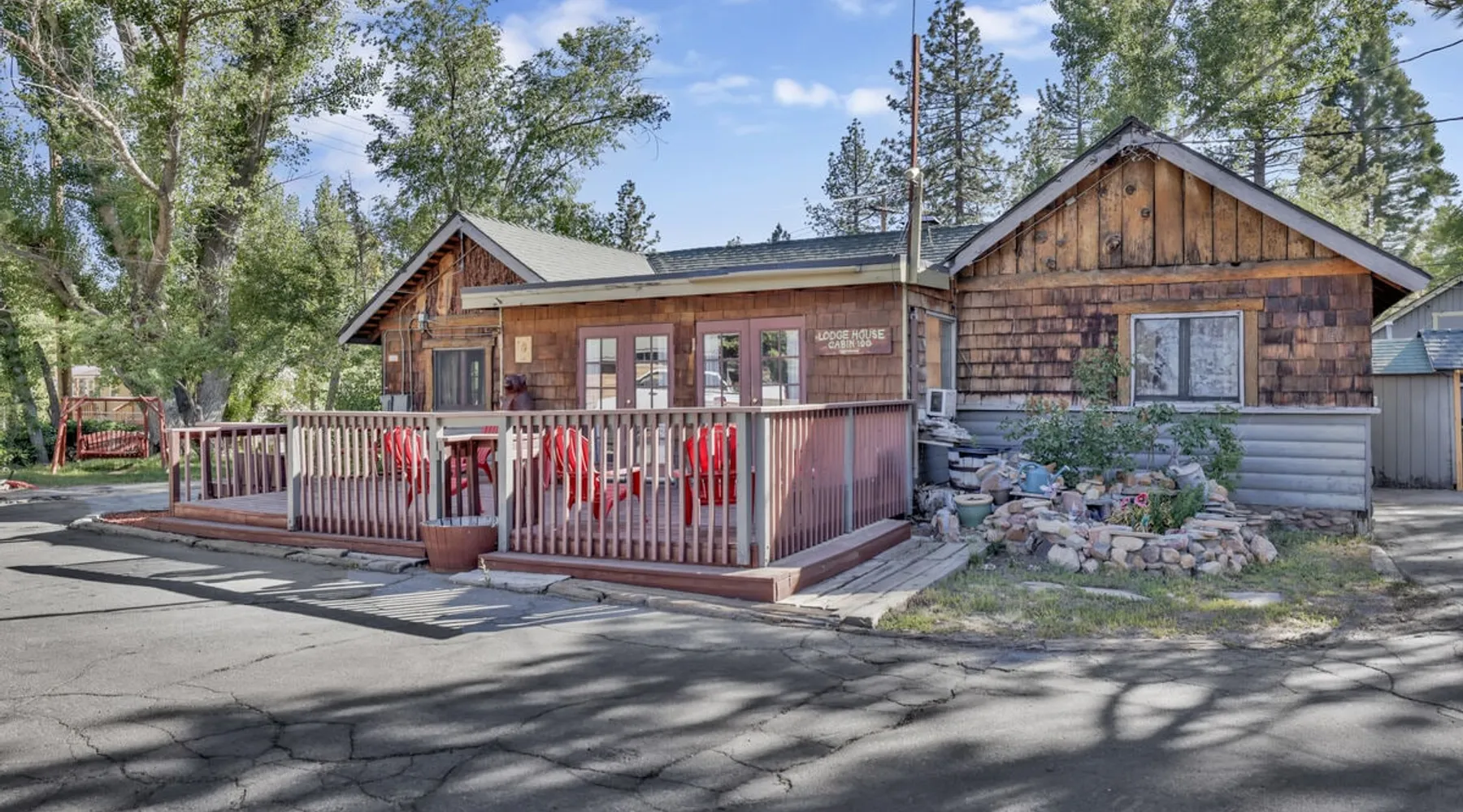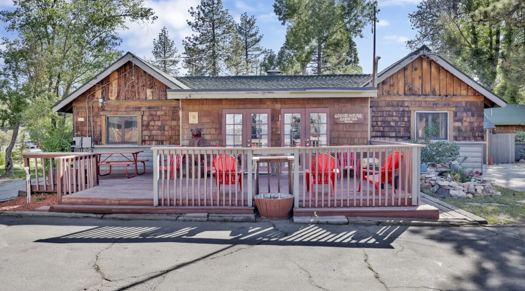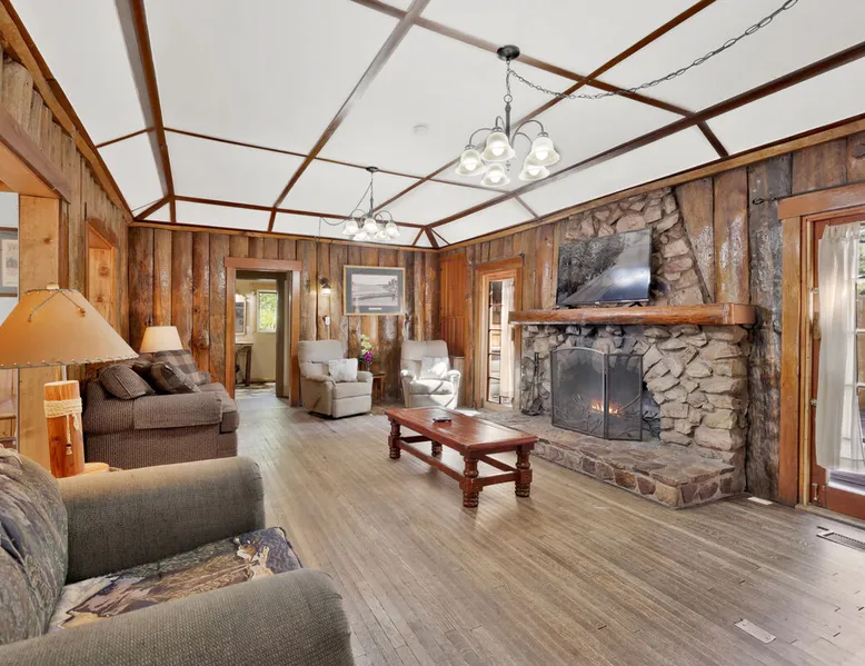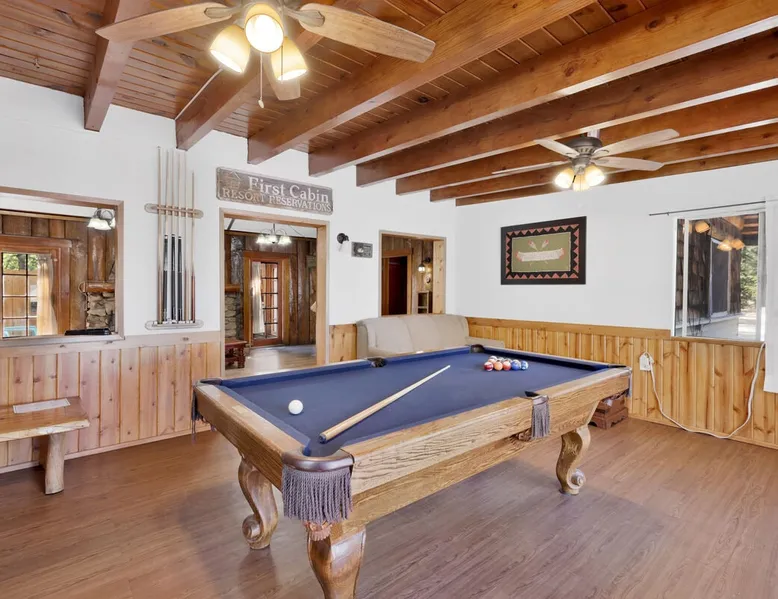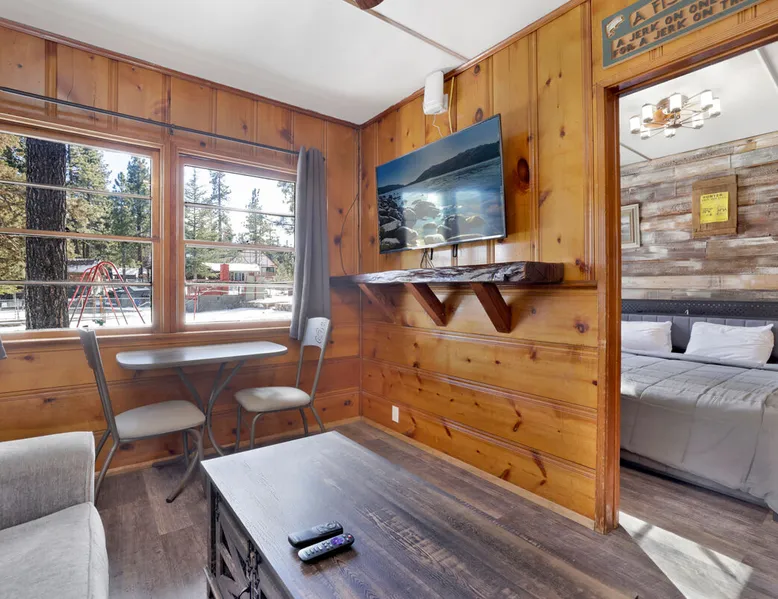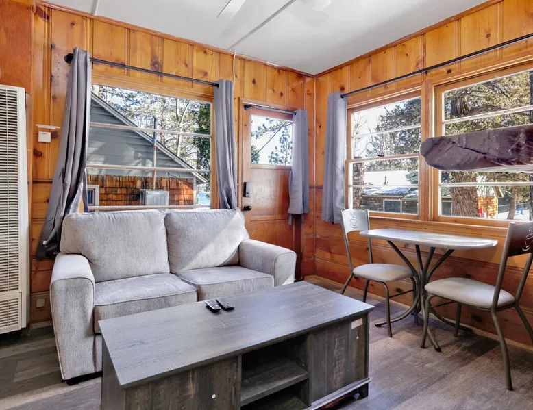 Shore Acres Lodge is the perfect destination for family vacations, group stays, and corporate retreats no matter the season you choose to visit the mountains. Nestled on the shoreline within a short stroll to the Village and within minutes to local activities you'll enjoy access to a cluster of furnished single level mountain cottages which pair together for your group to vacation in relaxation and comfort under the soaring pine trees and millions of stars. Come experience this lodge today! The space NEW LODGE RENOVATIONS COMPLETED FALL OF 2023!! Each cabin is ideal for an adventure in the mountains offering the comforts from home, modern essentials, and an unbeatable location in the mountains. Reserved individually or combined together these adorable cottages and the incredible location becomes the perfect year round destination for any season, sitting just steps away from the shoreline at Big Bear Lake and within a short walk to local marinas and the downtown Village area. Relax on lake-view decks, enjoy the group patio area, or use the provided Charcoal BBQ for grilling. Shore Acres Lodge boasts fantastic facilities: a lakefront location, seasonal shared boat dock, fishing area, summertime community swimming pool (weekends only, Memorial Day to Labor Day), outdoor horseshoe and volleyball pit, kids swing-set, large outdoor BBQ and picnic area, outdoor table tennis, onsite trash disposal, hi-speed WIFI access, flat screen streaming TVs, and a spacious pet-friendly property. (California Leash Law + Pet Fee Applies). Ample flat parking is available year-round. Walking distance to the Big Bear Village and local marinas this is an ideal location any time of the year! **NOTE** Our lodge facilities are publicly accessible to all Big Bear Vacations guests. If renting the lodge as a group, you will have full access to your private on-site cabins however please understand that the grounds, lake shore, boat dock, and lodge facilities are still public to all Big Bear Vacations guests. Cabin Arrangements: Cabin #100- Lodge House- 3 Bd|2Ba- 8 People- 3 Cars- King, Full, Twin, Full/Twin Bunk Cabin #101- Sunset Cabin- 1 Bd|1Ba- 2 People- 1 Car- King Cabin #102- Little Pines- 1 Bd|1Ba- 2 People- 1 Car- King Cabin #103- Big Pines- 1Bd|1Ba- 2 People- 1 Car- King Cabin #104- Lakeview- 2Bd|1Ba- 7 People- 2 Cars- Two Queen, Full/Twin Bunk Cabin #105- Juniper- 1Bd|1Ba- 2 People- 1 Car- King -Sleeps 23 -9 Car Driveway Parking -Pets Welcome w/ Additional Fee -2,950 Square Feet Hotel Permit #: PR0013888 Guest access Once checked in, guests can enjoy sole access to their private property for the duration of their booked dates. Registration details Exempt