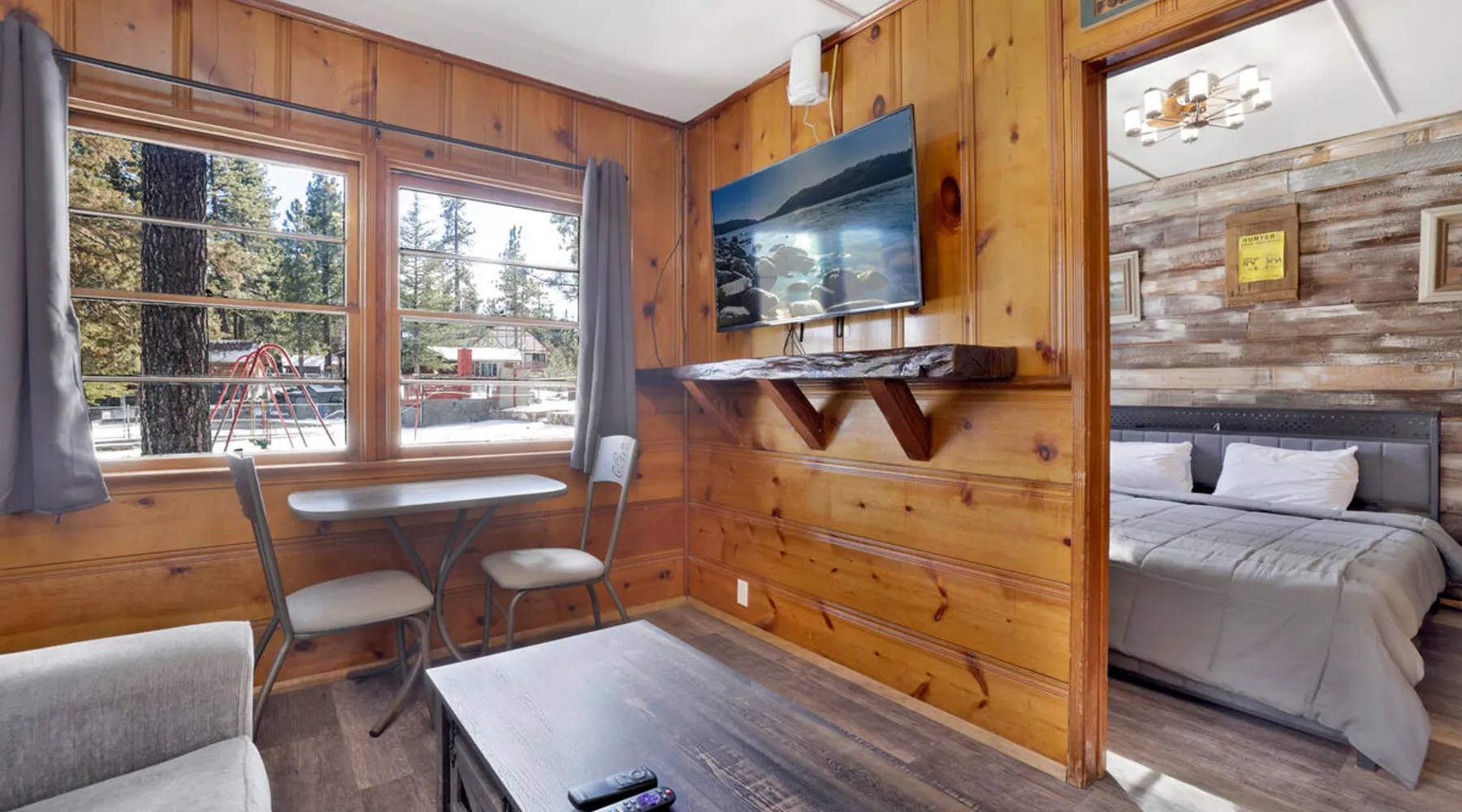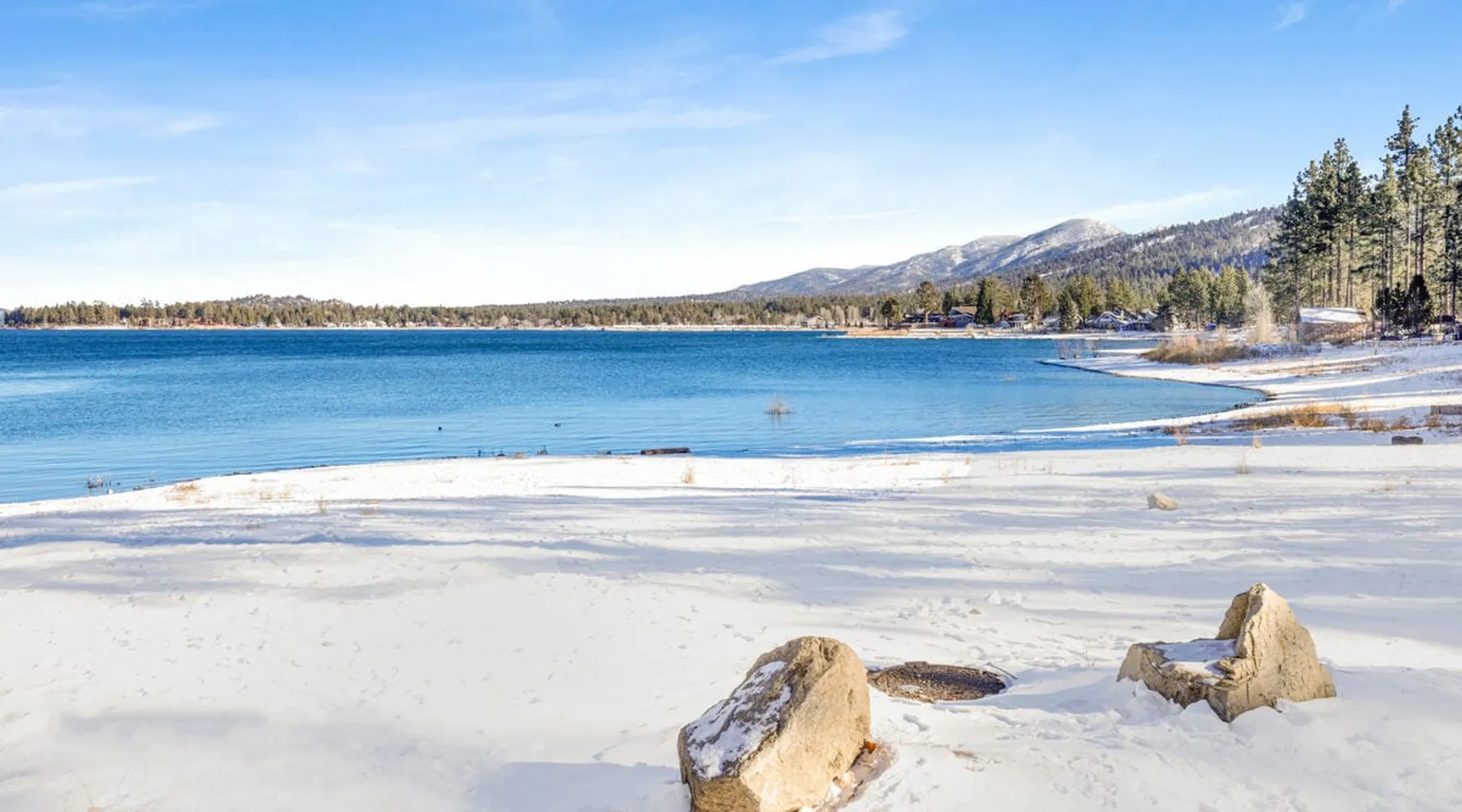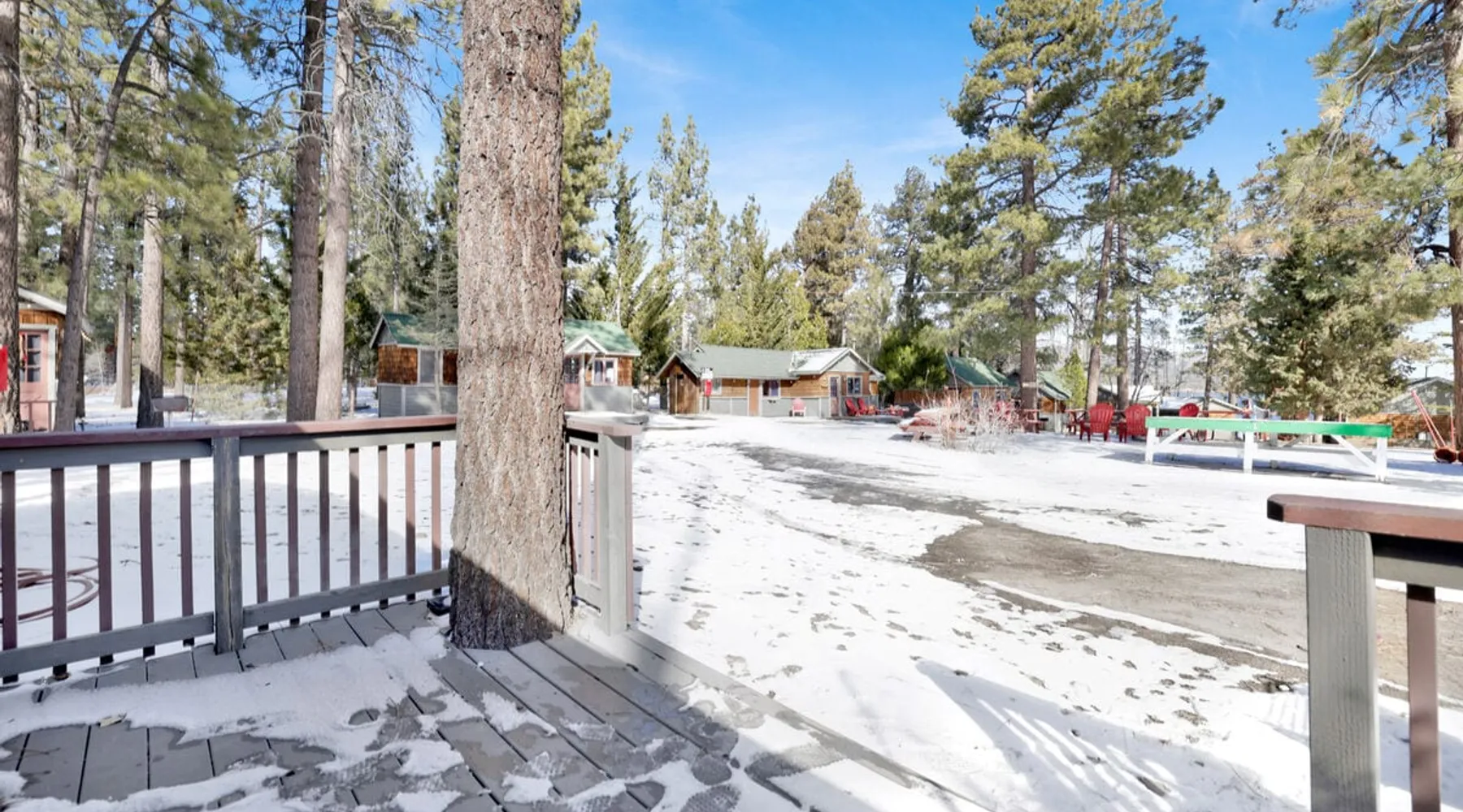 Shore Acres Lodge is the perfect destination for family vacations, group stays, and corporate retreats no matter the season you choose to visit the mountains. Nestled on the shoreline within a short stroll to the Village and within minutes to local activities you'll enjoy access to a cluster of furnished single level mountain cottages which pair together for your group to vacation in relaxation and comfort under the soaring pine trees and millions of stars. Come experience this lodge today! The space NEW LODGE RENOVATIONS COMPLETED FALL OF 2023!! Each cabin is ideal for an adventure in the mountains offering the comforts from home, modern essentials, and an unbeatable location in the mountains. Reserved individually or combined together these adorable cottages and the incredible location becomes the perfect year round destination for any season, sitting just steps away from the shoreline at Big Bear Lake and within a short walk to local marinas and the downtown Village area. Relax on lake-view decks, enjoy the group patio area, or use the provided Charcoal BBQ for grilling. Shore Acres Lodge boasts fantastic facilities: a lakefront location, seasonal shared boat dock, fishing area, summertime community swimming pool (weekends only, Memorial Day to Labor Day), outdoor horseshoe and volleyball pit, kids swing-set, large outdoor BBQ and picnic area, outdoor table tennis, onsite trash disposal, hi-speed WIFI access, flat screen streaming TVs, and a spacious pet-friendly property. (California Leash Law + Pet Fee Applies). Ample flat parking is available year-round. Walking distance to the Big Bear Village and local marinas this is an ideal location any time of the year! **NOTE** Our lodge facilities are publicly accessible to all Big Bear Vacations guests. If renting the lodge as a group, you will have full access to your private on-site cabins however please understand that the grounds, lake shore, boat dock, and lodge facilities are still public to all Big Bear Vacations guests. Cabin Arrangements: Cabin #100- Lodge House- 3 Bd|2Ba- 8 People- 3 Cars- King, Full, Twin, Full/Twin Bunk Cabin #101- Sunset Cabin- 1 Bd|1Ba- 2 People- 1 Car- King Cabin #102- Little Pines- 1 Bd|1Ba- 2 People- 1 Car- King Cabin #103- Big Pines- 1Bd|1Ba- 2 People- 1 Car- King Cabin #104- Lakeview- 2Bd|1Ba- 7 People- 2 Cars- Two Queen, Full/Twin Bunk Cabin #105- Juniper- 1Bd|1Ba- 2 People- 1 Car- King -Sleeps 23 -9 Car Driveway Parking -Pets Welcome w/ Additional Fee -2,950 Square Feet Hotel Permit #: PR0013888 Guest access Once checked in, guests can enjoy sole access to their private property for the duration of their booked dates. Registration details Exempt