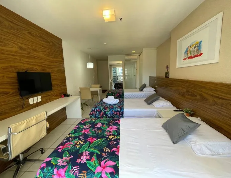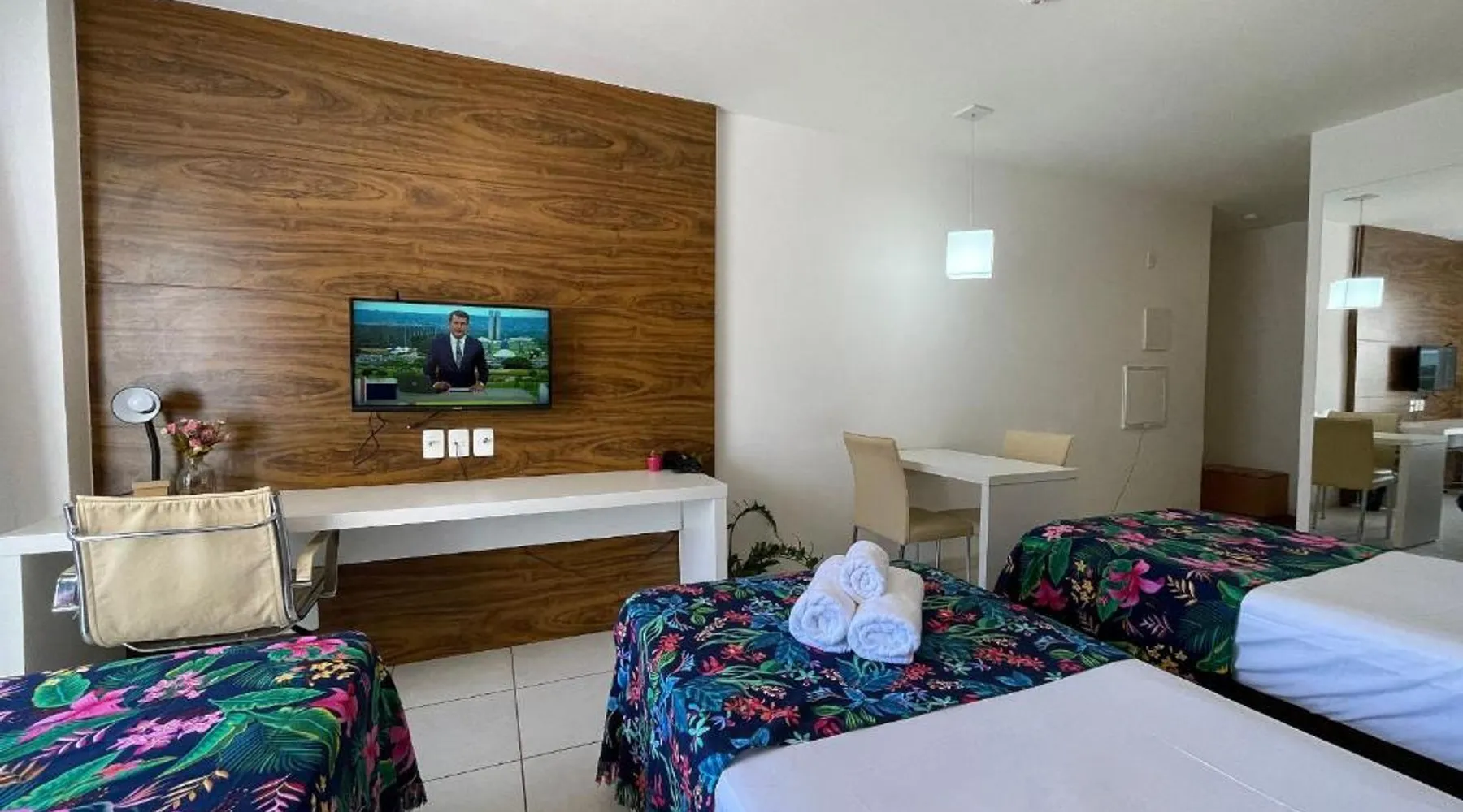 Comfortable Living Space: V1114 Flat com WI-FI exclusivo, academia e piscinas in Brasilia offers a one-bedroom apartment with a balcony. The property includes air-conditioning, a fully equipped kitchen, and a washing machine. Exceptional Facilities: Guests can enjoy a sauna, terrace, restaurant, massage services, and free WiFi. Additional amenities include a elevator, 24-hour front desk, outdoor seating area, and room service. Prime Location: Located 11 mi from Brasilia International Airport, the apartment is near Conjunto Nacional Mall (a few steps), Cultural Complex of the Republic (12-minute walk), and Brasília Cathedral (18-minute walk). Water sports are available in the surroundings. Highly Rated by Guests: The property is highly rated by guests for its excellent facilities and comfortable accommodations. In the kitchen, guests will find a stovetop, a refrigerator, kitchenware and a microwave. This apartment features air conditioning, a coffee machine, a TV with cable channels and a balcony. The unit offers 3 beds.