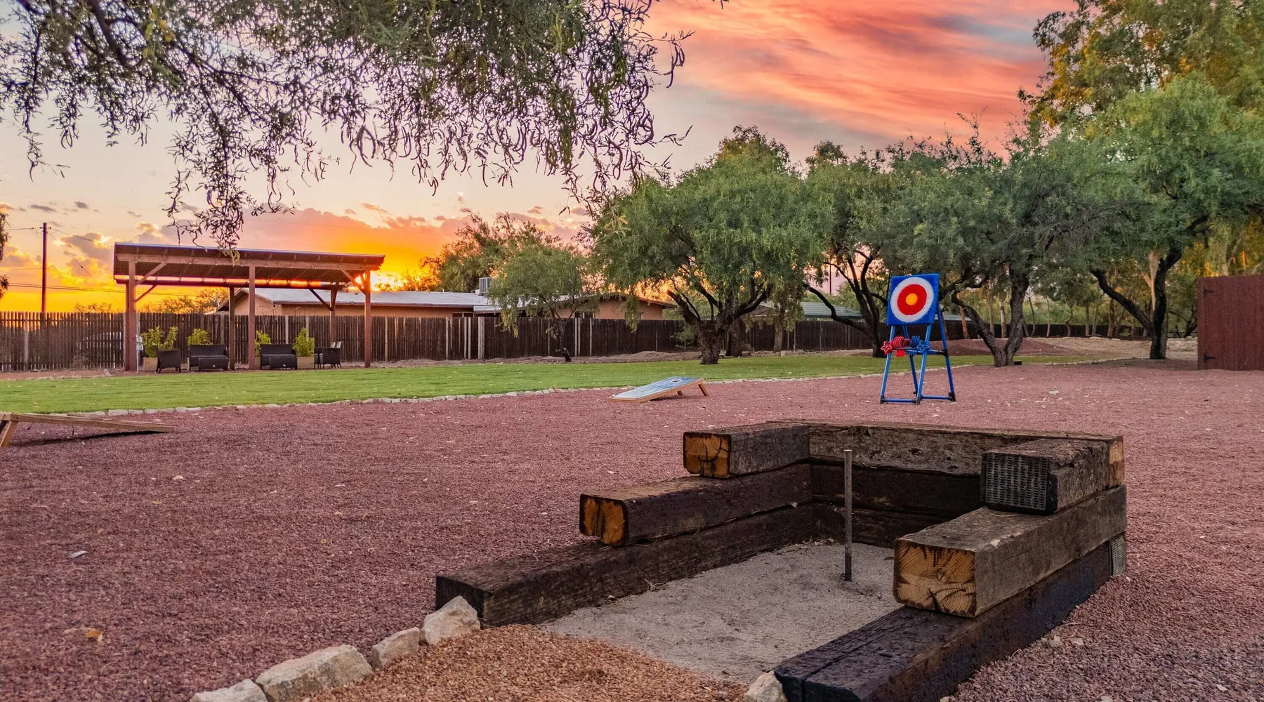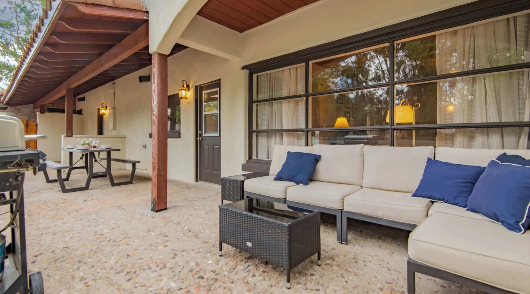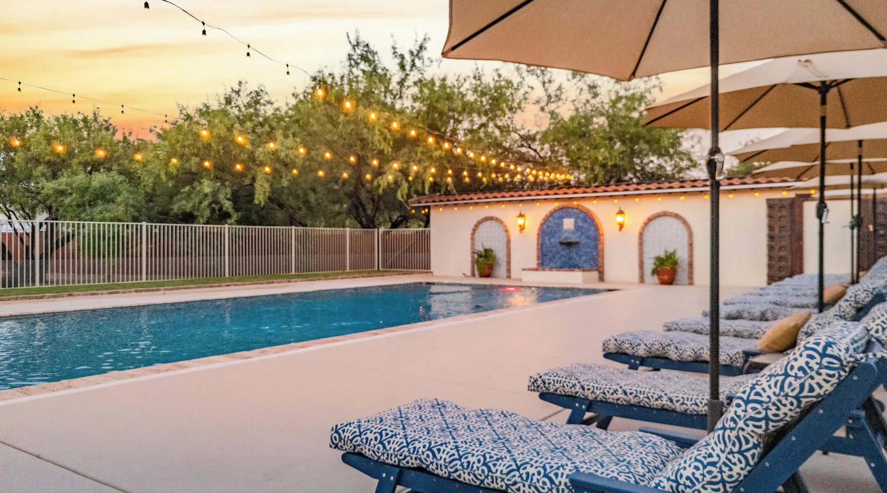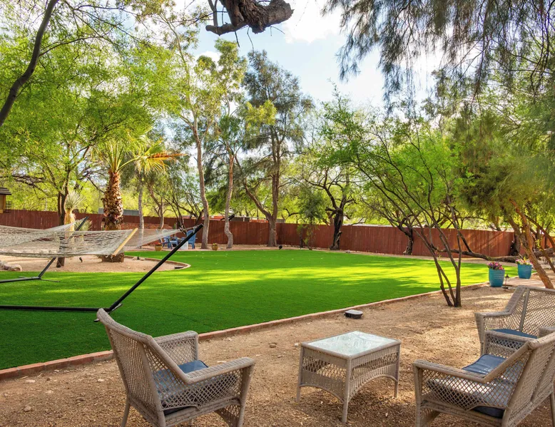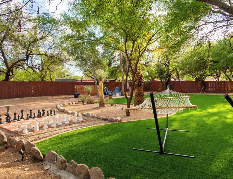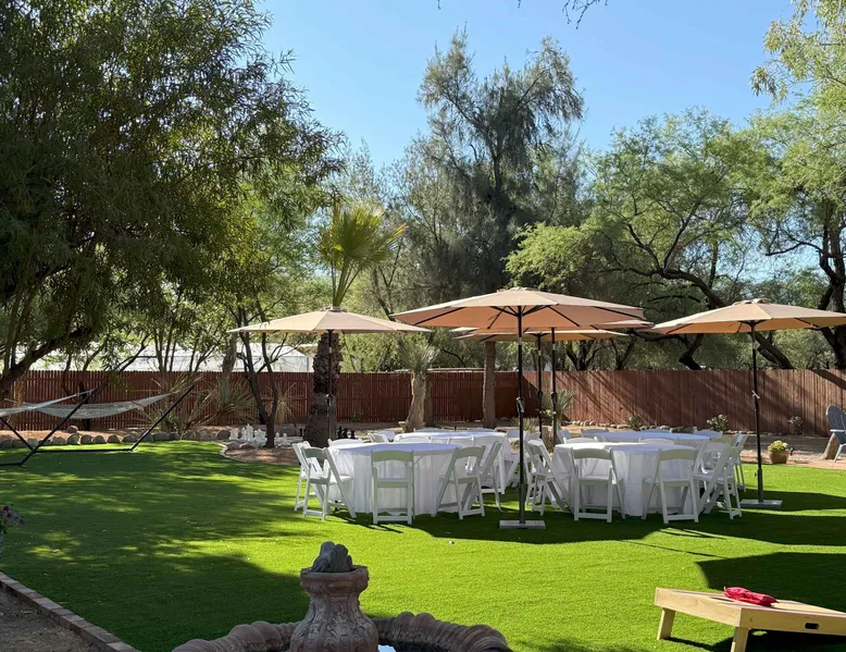 Summary: Nestled in a unique & serene location on the east side of Tucson in the beautiful Tanque Verde Valley, this spacious venue offers a mini-resort style blend of amenities. The large 5.7 acre Solana Spanish Villas estate, is perfect for accommodating large families, friends, biking or golf groups, wellness or corporate retreats. Come enjoy the Spanish charm at our historic style villas, relax in the heated pool, play a game of pickleball on our private court, or unwind in the serene surroundings. The Space: Solana Spanish Villas in Tucson AZ is the perfect location for larger groups. Our serene property, set amongst a mature Mesquite tree bosque and historic 150 year Eucalyptus trees, offers a tranquil retreat filled with unique vegetation and nicely shaded spaces around the property. With this rental you get access to our expansive 5.7-acre property, 5 villas, and 2 casitas. You also have full access to our exclusive amenities, perfect for large group gatherings! ACCOMMODATIONS: - Our charming Tanque Verde vacation retreat is ideal for large groups and can comfortably accommodate up to 35 guests (40 with sleeper sofas and trundles). - Smaller events are allowed to be booked through Airbnb, please coordinate with host. (See additional information below) All villas include: - Generous living spaces, dining areas, and fully equipped kitchens for preparing meals. - Complimentary coffee, sugar and tea provided for easy mornings! - Fully enclosed individual backyards/patios, Dog-friendly. With BBQ grills, propane provided. - All Villas & Casitas have A/C & heat. - Sleeping Arrangements: Multiple villas and casitas featuring a total of 16 bedrooms, 9 bathrooms. Complete with comfortable bedding, towels and complimentary shampoo, conditioner, body wash, Q-tips and cotton balls. Villa 1 - 4 bedroom / 1 bathroom, sleeps 9 Villa 2 - 3 bedroom / 1 bathroom, sleeps 6 Villa 4 - 1 bedroom / 1 bathroom, sleeps 4-5 Villa 5 - 5 bedroom / 3 bathroom, sleeps 12 Villa 6 - 2 bedroom / 1.5 bathroom, sleeps 7 Casita 7 - 1 bedroom studio / 1 bathroom, sleeps 4 (connects to Villa 6) EVENTS OR GATHERINGS: - We love hosting celebrations! Our property offers beautiful outdoor venue spaces perfect for weddings, retreats, and special gatherings. - Prior Approval Required: Please message us on Airbnb before booking if you plan to host any event or gathering so we can confirm availability and provide a custom quote. - Site Fees & Inclusions: Event site fees vary by event type and size and include tables, chairs, linens, place settings, setup, and takedown for your convenience. - Food & Beverage: All catering and bar service are provided in-house with curated menus and packages. (Outside catering is not permitted.) - Amenities: Multiple restrooms are available for event guests. - Quiet Hours: All events must conclude by 10:00 PM in accordance with local noise ordinances. - Airbnb Policy Compliance: Events are permitted only with prior approval and must follow Airbnb’s event guidelines. OUTDOOR ACTIVITIES: - Recreation: Enjoy park-like settings, relaxing in hammocks, a game of lawn chess, or an iconic southwestern game of horseshoes. - Fire Pit & Historic Fireplace: Perfect for evening gatherings under the stars. - Pickleball / Basketball court: We supply pickleball paddles and balls, as well as basketballs. So come ready to play! - Heated Outdoor Pool: Whether you're looking for some great family time, soaking up the beautiful sunny weather in Tucson or needing to cool off enjoy swimming in or large heated resort style pool. ADDITIONAL INFORMATION: - Check-in/Check-out: Flexible options to accommodate large groups. FACILITIES: - Parking: Each villa has on-site parking. Large parking available for RV's and trailers available for guests, please coordinate with the host. - Wi-Fi: Complimentary high-speed internet throughout the property. - EV charger: Available onsite. Universal charging port with Tesla adaptor available. - RV Parking available on property LOCATION: Conveniently located near Saguaro National Park East, Mount Lemmon, Colossal Cave, and Tanque Verde Falls, providing easy access to local activities while still enjoying all that the Sonoran Desert has to offer. - Safeway Grocery Store / Starbucks (2.2 miles) - Walgreens (2.3 miles) - Many local restaurants close by Whether you’re celebrating a milestone, planning a memorable family reunion, golf group, a fun-filled summer camp adventure, a productive corporate retreat, or seeking lodging for a bicycle team training in the Tucson area, our property offers the perfect backdrop for unforgettable memories. Book now for your next gathering! NOTE: Solana Spanish Villas is a guest ranch, and all Villas and Casitas share the communal amenities and outdoor spaces including the pool. Each Villa and Casita is fully private for individual guest use. The host/homeowner lives on-site in a separate residence, ensuring privacy while being available if needed. Guest Access: Check in details are emailed 24 hours before arrival. Each villa is equipped with privately coded access lock systems allowing for check in ease at your convenience. The Neighborhood: The Tanque Verde Valley is a hidden gem on the East side of Tucson. The Tanque Verde ("Green Tank") Valley is a unique area of Tucson due to several large washes in the area that bring water down from the mountain, providing for many Mesquite Tree bosques and a truly green oasis in the desert. Other Things to Note: AIRPORT: - Tucson International Airport (19 miles) GOLFING: Tucson is home to the PGA Tour Championship Golf Tournament, proudly sponsored by Cologuard, welcomes some of the world's most elite golfers to Tucson. - Arizona National Golf Club (4.7 miles) - Forty Niner Country Club (1.7 miles) - Ventana Canyon Club & Lodge (10 miles) - La Paloma Country Club (13 miles) - Fred Enke (9.5 miles) - Randolph Dell Urich (11 miles) CYCLING: Tucson is known as “The Biking Capital of the World”, Featuring - El Tou