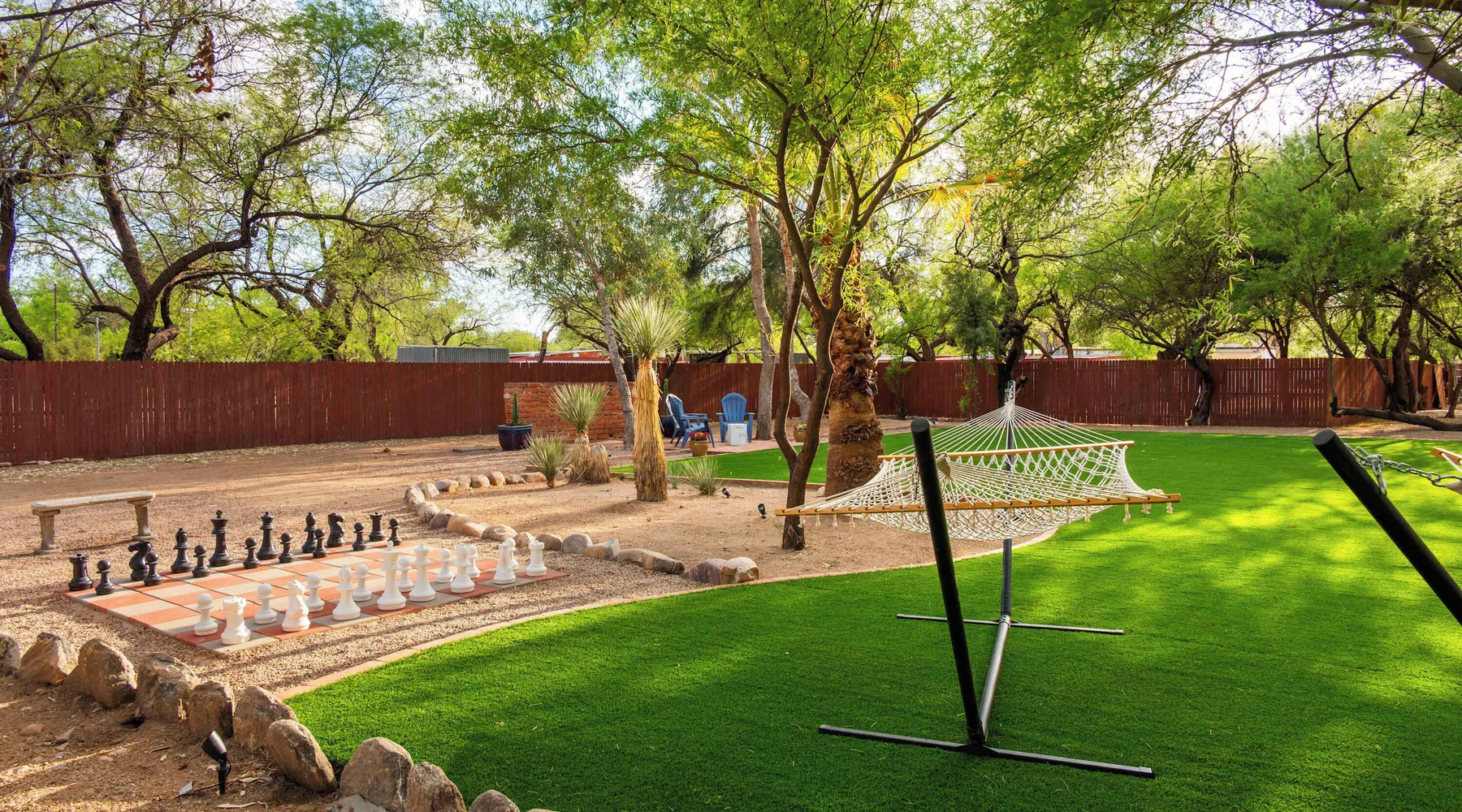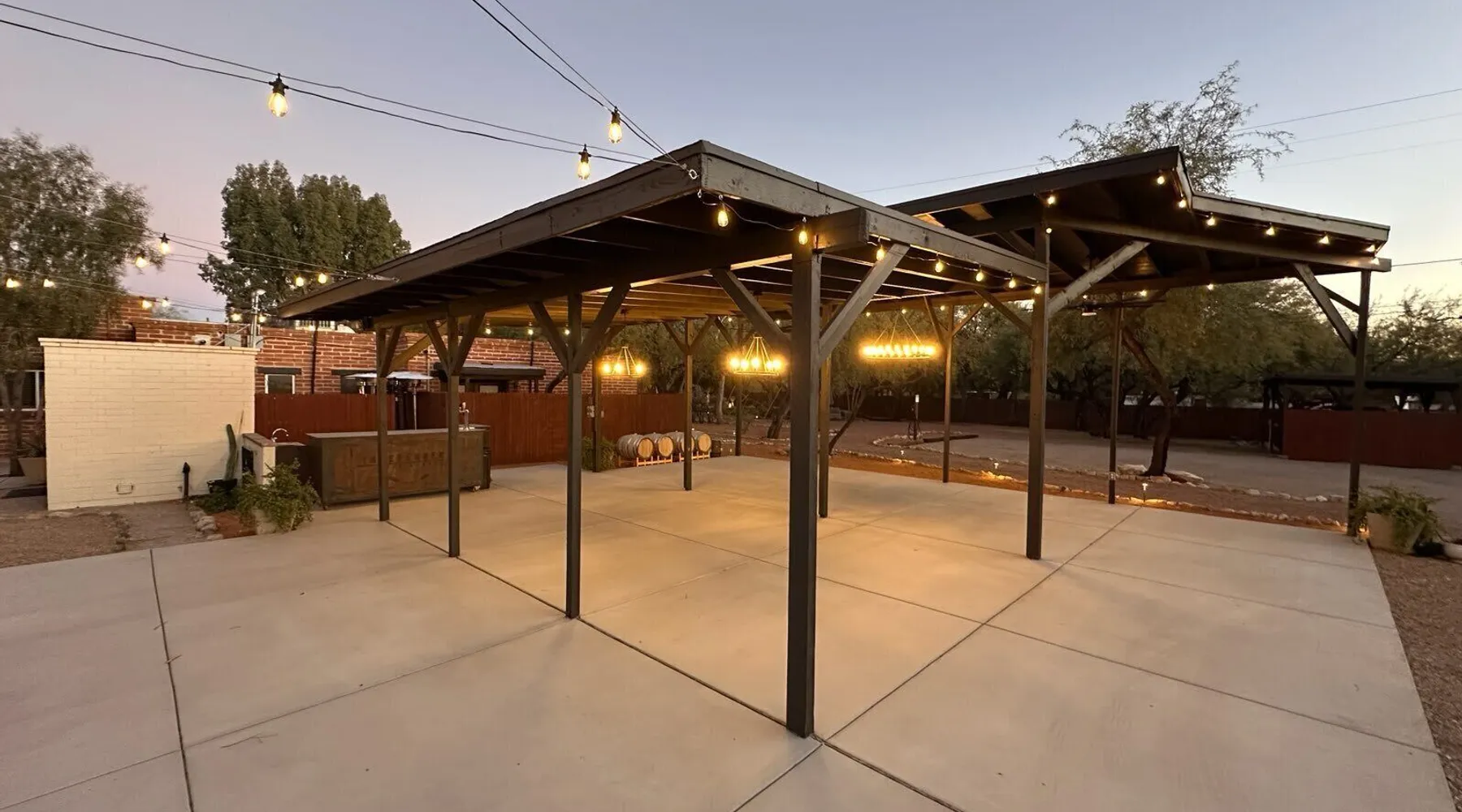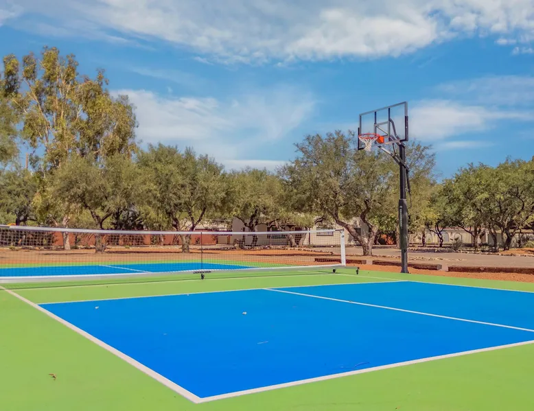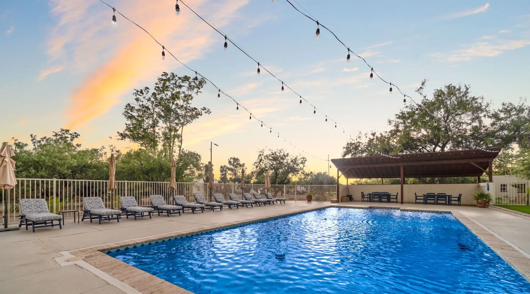 Summary: Nestled in a unique & serene location on the east side of Tucson in the beautiful Tanque Verde Valley, this spacious venue offers a mini-resort style blend of amenities. The large 5.7 acre Solana Spanish Villas estate, is perfect for accommodating large families, friends, biking or golf groups, wellness or corporate retreats. Come enjoy the Spanish charm at our historic style villas, relax in the heated pool, play a game of pickleball on our private court, or unwind in the serene surroundings. The Space: Solana Spanish Villas in Tucson AZ is the perfect location for larger groups. Our serene property, set amongst a mature Mesquite tree bosque and historic 150 year Eucalyptus trees, offers a tranquil retreat filled with unique vegetation and nicely shaded spaces around the property. With this rental you get access to our expansive 5.7-acre property, 5 villas, and 2 casitas. You also have full access to our exclusive amenities, perfect for large group gatherings! ACCOMMODATIONS: - Our charming Tanque Verde vacation retreat is ideal for large groups and can comfortably accommodate up to 35 guests (40 with sleeper sofas and trundles). - Smaller events are allowed to be booked through Airbnb, please coordinate with host. (See additional information below) All villas include: - Generous living spaces, dining areas, and fully equipped kitchens for preparing meals. - Complimentary coffee, sugar and tea provided for easy mornings! - Fully enclosed individual backyards/patios, Dog-friendly. With BBQ grills, propane provided. - All Villas & Casitas have A/C & heat. - Sleeping Arrangements: Multiple villas and casitas featuring a total of 16 bedrooms, 9 bathrooms. Complete with comfortable bedding, towels and complimentary shampoo, conditioner, body wash, Q-tips and cotton balls. Villa 1 - 4 bedroom / 1 bathroom, sleeps 9 Villa 2 - 3 bedroom / 1 bathroom, sleeps 6 Villa 4 - 1 bedroom / 1 bathroom, sleeps 4-5 Villa 5 - 5 bedroom / 3 bathroom, sleeps 12 Villa 6 - 2 bedroom / 1.5 bathroom, sleeps 7 Casita 7 - 1 bedroom studio / 1 bathroom, sleeps 4 (connects to Villa 6) EVENTS OR GATHERINGS: - We love hosting celebrations! Our property offers beautiful outdoor venue spaces perfect for weddings, retreats, and special gatherings. - Prior Approval Required: Please message us on Airbnb before booking if you plan to host any event or gathering so we can confirm availability and provide a custom quote. - Site Fees & Inclusions: Event site fees vary by event type and size and include tables, chairs, linens, place settings, setup, and takedown for your convenience. - Food & Beverage: All catering and bar service are provided in-house with curated menus and packages. (Outside catering is not permitted.) - Amenities: Multiple restrooms are available for event guests. - Quiet Hours: All events must conclude by 10:00 PM in accordance with local noise ordinances. - Airbnb Policy Compliance: Events are permitted only with prior approval and must follow Airbnb’s event guidelines. OUTDOOR ACTIVITIES: - Recreation: Enjoy park-like settings, relaxing in hammocks, a game of lawn chess, or an iconic southwestern game of horseshoes. - Fire Pit & Historic Fireplace: Perfect for evening gatherings under the stars. - Pickleball / Basketball court: We supply pickleball paddles and balls, as well as basketballs. So come ready to play! - Heated Outdoor Pool: Whether you're looking for some great family time, soaking up the beautiful sunny weather in Tucson or needing to cool off enjoy swimming in or large heated resort style pool. ADDITIONAL INFORMATION: - Check-in/Check-out: Flexible options to accommodate large groups. FACILITIES: - Parking: Each villa has on-site parking. Large parking available for RV's and trailers available for guests, please coordinate with the host. - Wi-Fi: Complimentary high-speed internet throughout the property. - EV charger: Available onsite. Universal charging port with Tesla adaptor available. - RV Parking available on property LOCATION: Conveniently located near Saguaro National Park East, Mount Lemmon, Colossal Cave, and Tanque Verde Falls, providing easy access to local activities while still enjoying all that the Sonoran Desert has to offer. - Safeway Grocery Store / Starbucks (2.2 miles) - Walgreens (2.3 miles) - Many local restaurants close by Whether you’re celebrating a milestone, planning a memorable family reunion, golf group, a fun-filled summer camp adventure, a productive corporate retreat, or seeking lodging for a bicycle team training in the Tucson area, our property offers the perfect backdrop for unforgettable memories. Book now for your next gathering! NOTE: Solana Spanish Villas is a guest ranch, and all Villas and Casitas share the communal amenities and outdoor spaces including the pool. Each Villa and Casita is fully private for individual guest use. The host/homeowner lives on-site in a separate residence, ensuring privacy while being available if needed. Guest Access: Check in details are emailed 24 hours before arrival. Each villa is equipped with privately coded access lock systems allowing for check in ease at your convenience. The Neighborhood: The Tanque Verde Valley is a hidden gem on the East side of Tucson. The Tanque Verde ("Green Tank") Valley is a unique area of Tucson due to several large washes in the area that bring water down from the mountain, providing for many Mesquite Tree bosques and a truly green oasis in the desert. Other Things to Note: AIRPORT: - Tucson International Airport (19 miles) GOLFING: Tucson is home to the PGA Tour Championship Golf Tournament, proudly sponsored by Cologuard, welcomes some of the world's most elite golfers to Tucson. - Arizona National Golf Club (4.7 miles) - Forty Niner Country Club (1.7 miles) - Ventana Canyon Club & Lodge (10 miles) - La Paloma Country Club (13 miles) - Fred Enke (9.5 miles) - Randolph Dell Urich (11 miles) CYCLING: Tucson is known as “The Biking Capital of the World”, Featuring - El Tou