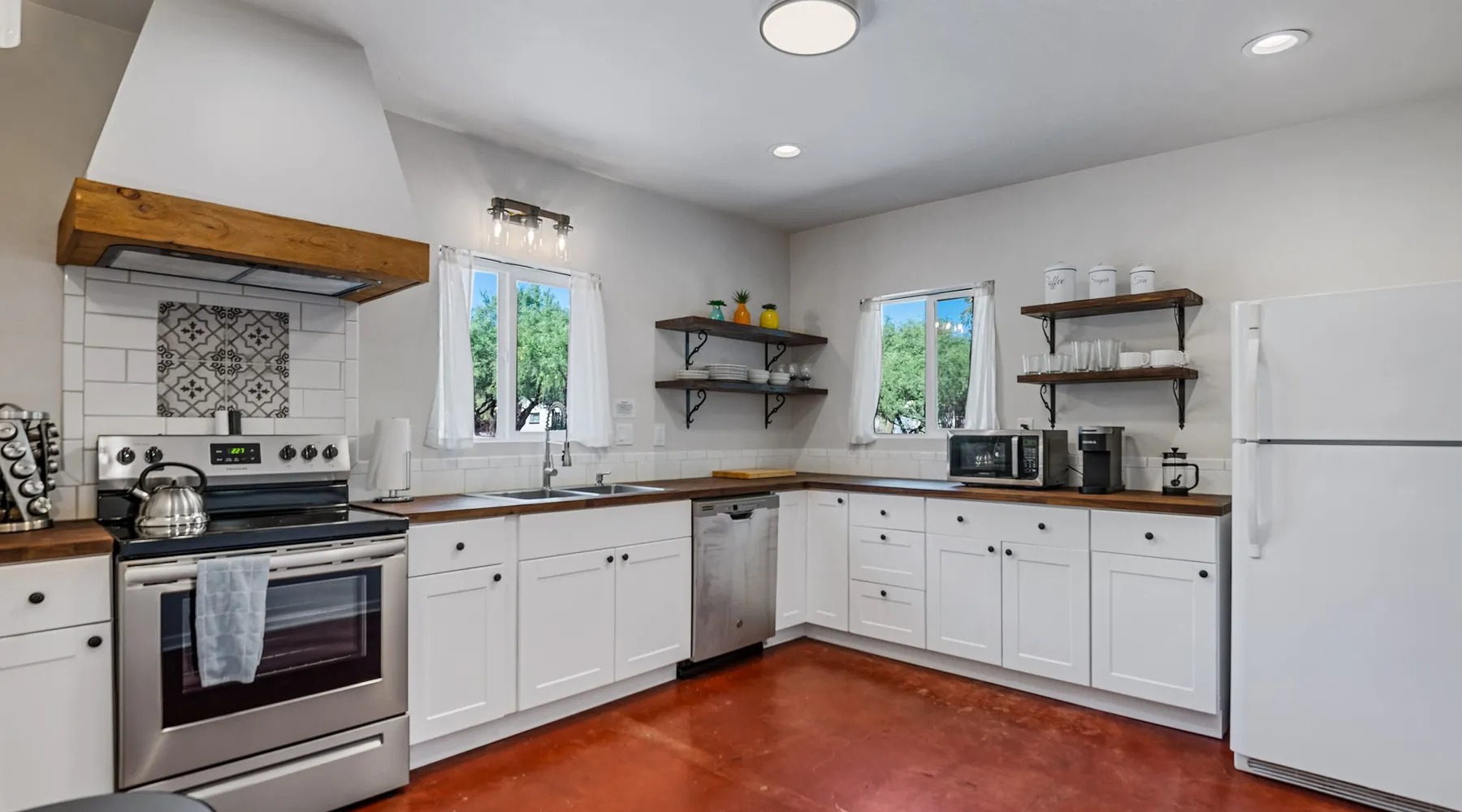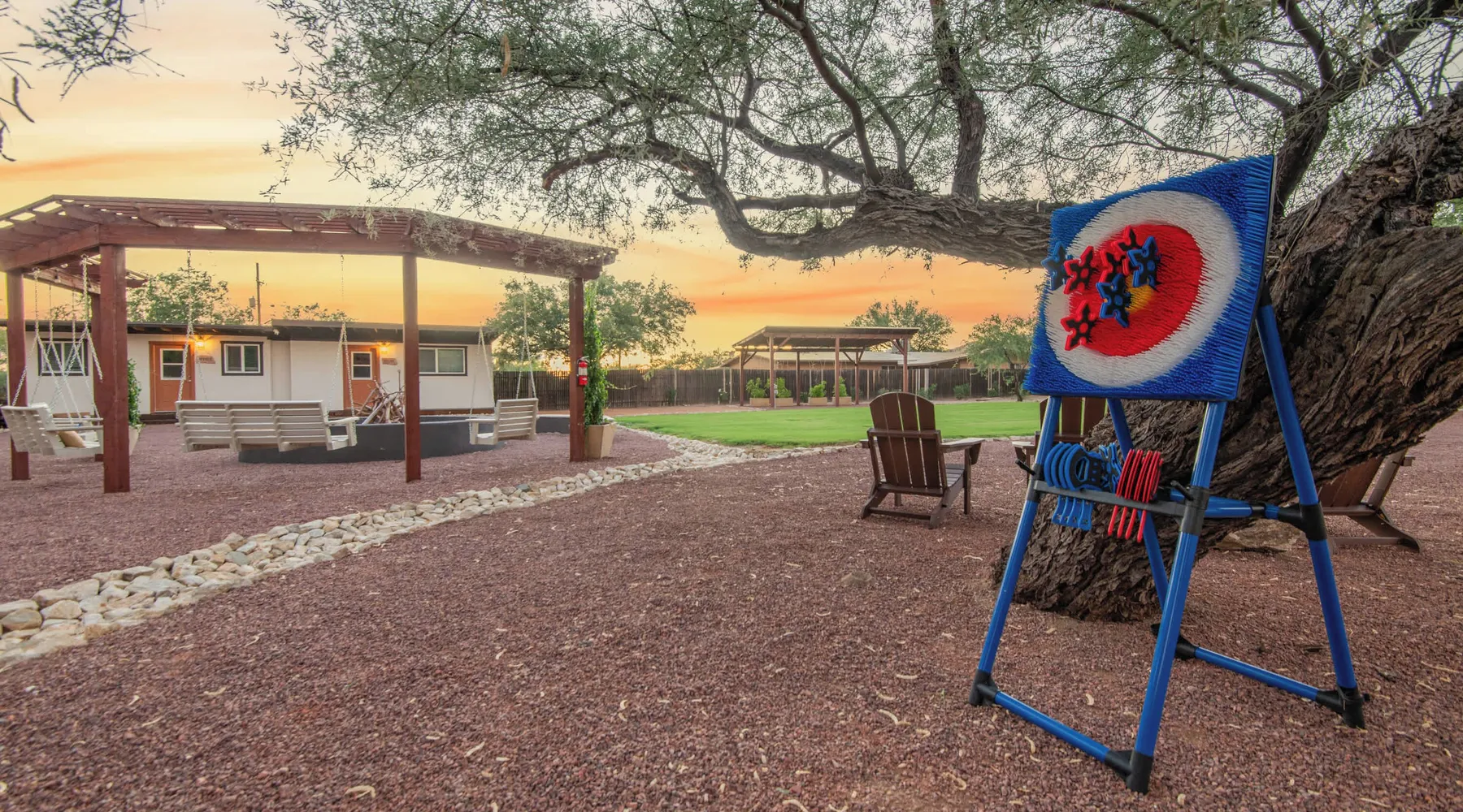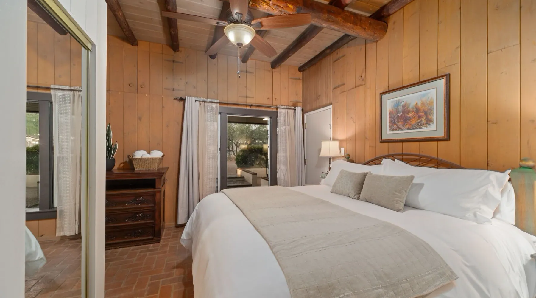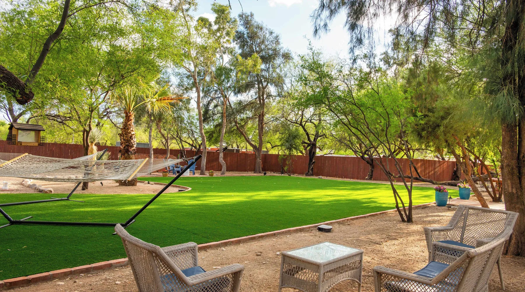 Summary: Nestled in a unique & serene location on the east side of Tucson in the beautiful Tanque Verde Valley, this spacious venue offers a mini-resort style blend of amenities. The large 5.7 acre Solana Spanish Villas estate, is perfect for accommodating large families, friends, biking or golf groups, wellness or corporate retreats. Come enjoy the Spanish charm at our historic style villas, relax in the heated pool, play a game of pickleball on our private court, or unwind in the serene surroundings. The Space: Solana Spanish Villas in Tucson AZ is the perfect location for larger groups. Our serene property, set amongst a mature Mesquite tree bosque and historic 150 year Eucalyptus trees, offers a tranquil retreat filled with unique vegetation and nicely shaded spaces around the property. With this rental you get access to our expansive 5.7-acre property, 5 villas, and 2 casitas. You also have full access to our exclusive amenities, perfect for large group gatherings! ACCOMMODATIONS: - Our charming Tanque Verde vacation retreat is ideal for large groups and can comfortably accommodate up to 35 guests (40 with sleeper sofas and trundles). - Smaller events are allowed to be booked through Airbnb, please coordinate with host. (See additional information below) All villas include: - Generous living spaces, dining areas, and fully equipped kitchens for preparing meals. - Complimentary coffee, sugar and tea provided for easy mornings! - Fully enclosed individual backyards/patios, Dog-friendly. With BBQ grills, propane provided. - All Villas & Casitas have A/C & heat. - Sleeping Arrangements: Multiple villas and casitas featuring a total of 16 bedrooms, 9 bathrooms. Complete with comfortable bedding, towels and complimentary shampoo, conditioner, body wash, Q-tips and cotton balls. Villa 1 - 4 bedroom / 1 bathroom, sleeps 9 Villa 2 - 3 bedroom / 1 bathroom, sleeps 6 Villa 4 - 1 bedroom / 1 bathroom, sleeps 4-5 Villa 5 - 5 bedroom / 3 bathroom, sleeps 12 Villa 6 - 2 bedroom / 1.5 bathroom, sleeps 7 Casita 7 - 1 bedroom studio / 1 bathroom, sleeps 4 (connects to Villa 6) EVENTS OR GATHERINGS: - We love hosting celebrations! Our property offers beautiful outdoor venue spaces perfect for weddings, retreats, and special gatherings. - Prior Approval Required: Please message us on Airbnb before booking if you plan to host any event or gathering so we can confirm availability and provide a custom quote. - Site Fees & Inclusions: Event site fees vary by event type and size and include tables, chairs, linens, place settings, setup, and takedown for your convenience. - Food & Beverage: All catering and bar service are provided in-house with curated menus and packages. (Outside catering is not permitted.) - Amenities: Multiple restrooms are available for event guests. - Quiet Hours: All events must conclude by 10:00 PM in accordance with local noise ordinances. - Airbnb Policy Compliance: Events are permitted only with prior approval and must follow Airbnb’s event guidelines. OUTDOOR ACTIVITIES: - Recreation: Enjoy park-like settings, relaxing in hammocks, a game of lawn chess, or an iconic southwestern game of horseshoes. - Fire Pit & Historic Fireplace: Perfect for evening gatherings under the stars. - Pickleball / Basketball court: We supply pickleball paddles and balls, as well as basketballs. So come ready to play! - Heated Outdoor Pool: Whether you're looking for some great family time, soaking up the beautiful sunny weather in Tucson or needing to cool off enjoy swimming in or large heated resort style pool. ADDITIONAL INFORMATION: - Check-in/Check-out: Flexible options to accommodate large groups. FACILITIES: - Parking: Each villa has on-site parking. Large parking available for RV's and trailers available for guests, please coordinate with the host. - Wi-Fi: Complimentary high-speed internet throughout the property. - EV charger: Available onsite. Universal charging port with Tesla adaptor available. - RV Parking available on property LOCATION: Conveniently located near Saguaro National Park East, Mount Lemmon, Colossal Cave, and Tanque Verde Falls, providing easy access to local activities while still enjoying all that the Sonoran Desert has to offer. - Safeway Grocery Store / Starbucks (2.2 miles) - Walgreens (2.3 miles) - Many local restaurants close by Whether you’re celebrating a milestone, planning a memorable family reunion, golf group, a fun-filled summer camp adventure, a productive corporate retreat, or seeking lodging for a bicycle team training in the Tucson area, our property offers the perfect backdrop for unforgettable memories. Book now for your next gathering! NOTE: Solana Spanish Villas is a guest ranch, and all Villas and Casitas share the communal amenities and outdoor spaces including the pool. Each Villa and Casita is fully private for individual guest use. The host/homeowner lives on-site in a separate residence, ensuring privacy while being available if needed. Guest Access: Check in details are emailed 24 hours before arrival. Each villa is equipped with privately coded access lock systems allowing for check in ease at your convenience. The Neighborhood: The Tanque Verde Valley is a hidden gem on the East side of Tucson. The Tanque Verde ("Green Tank") Valley is a unique area of Tucson due to several large washes in the area that bring water down from the mountain, providing for many Mesquite Tree bosques and a truly green oasis in the desert. Other Things to Note: AIRPORT: - Tucson International Airport (19 miles) GOLFING: Tucson is home to the PGA Tour Championship Golf Tournament, proudly sponsored by Cologuard, welcomes some of the world's most elite golfers to Tucson. - Arizona National Golf Club (4.7 miles) - Forty Niner Country Club (1.7 miles) - Ventana Canyon Club & Lodge (10 miles) - La Paloma Country Club (13 miles) - Fred Enke (9.5 miles) - Randolph Dell Urich (11 miles) CYCLING: Tucson is known as “The Biking Capital of the World”, Featuring - El Tou