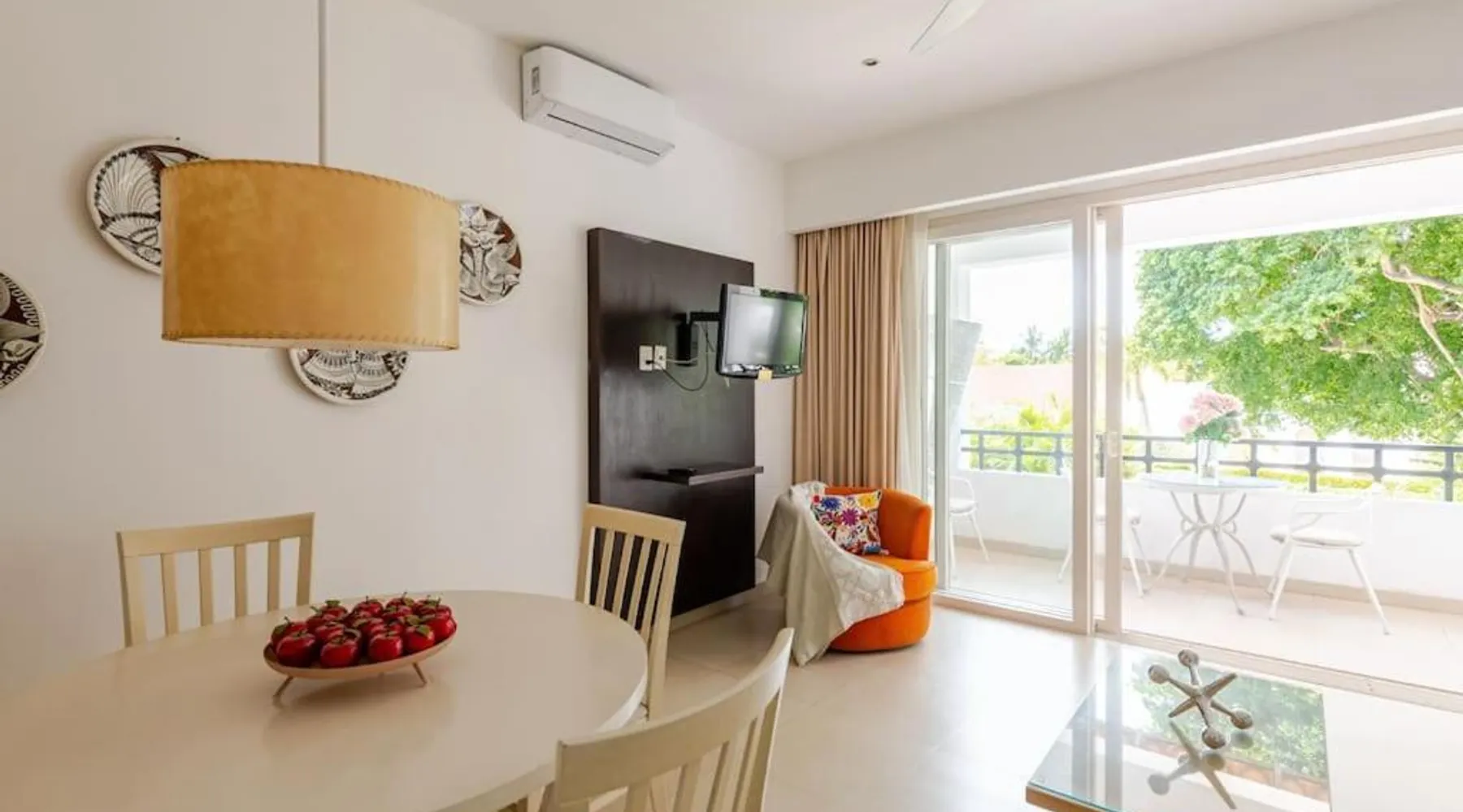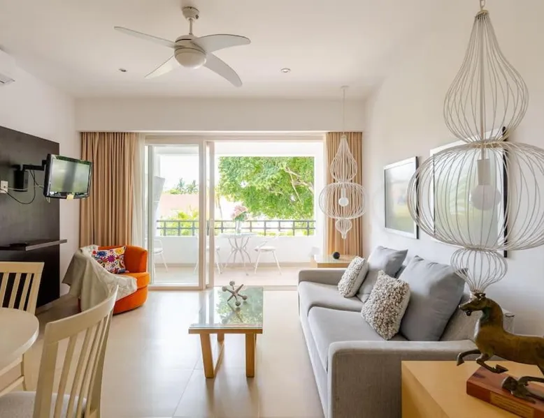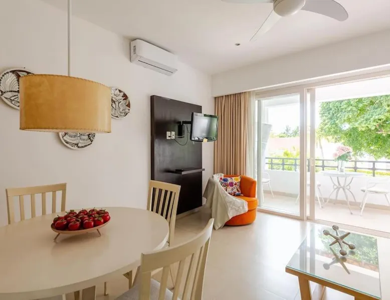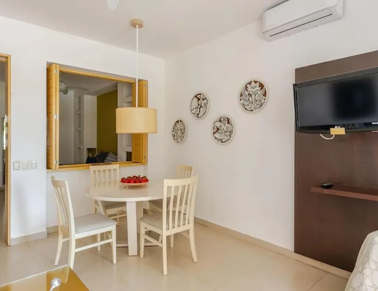 Spacious Living: Taheima VIP in Nuevo Vallarta offers a spacious apartment with one bedroom and two bathrooms. The living room features a sofa bed and a dining table, providing ample space for relaxation and entertainment. Outdoor Amenities: Guests can enjoy a terrace and a year-round outdoor swimming pool. The terrace offers garden and pool views, while the pool provides a refreshing retreat. Free WiFi is available throughout the property. Convenient Facilities: The apartment includes air-conditioning, a fully equipped kitchen, and a washing machine. Additional amenities include a hot tub, balcony, and free on-site private parking. Nearby Attractions: Nuevo Vallarta North Beach is a 14-minute walk away, while Aquaventuras Park lies 1.9 mi from the property. The Lic. Gustavo Diaz Ordaz Airport is 5.6 mi distant. Guests will have a special experience as this apartment provides a private pool and a hot tub. The apartment's kitchen, which has a refrigerator and a microwave, is available for cooking and storing food. The spacious air-conditioned apartment features a flat-screen TV, a washing machine, a mini-bar, a tea and coffee maker as well as garden views. The unit has 2 beds.
