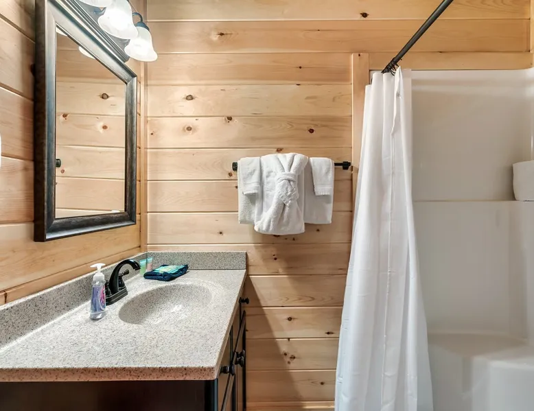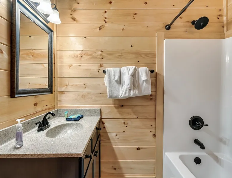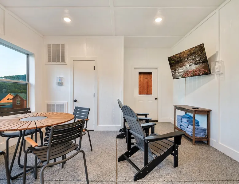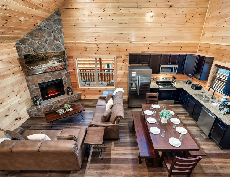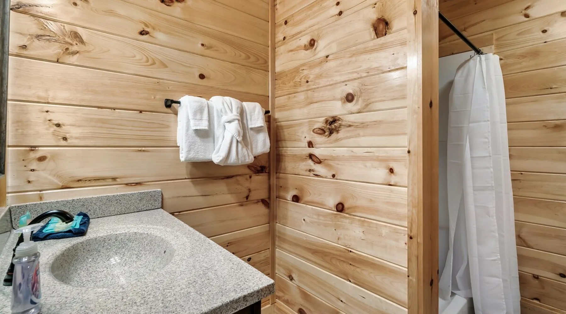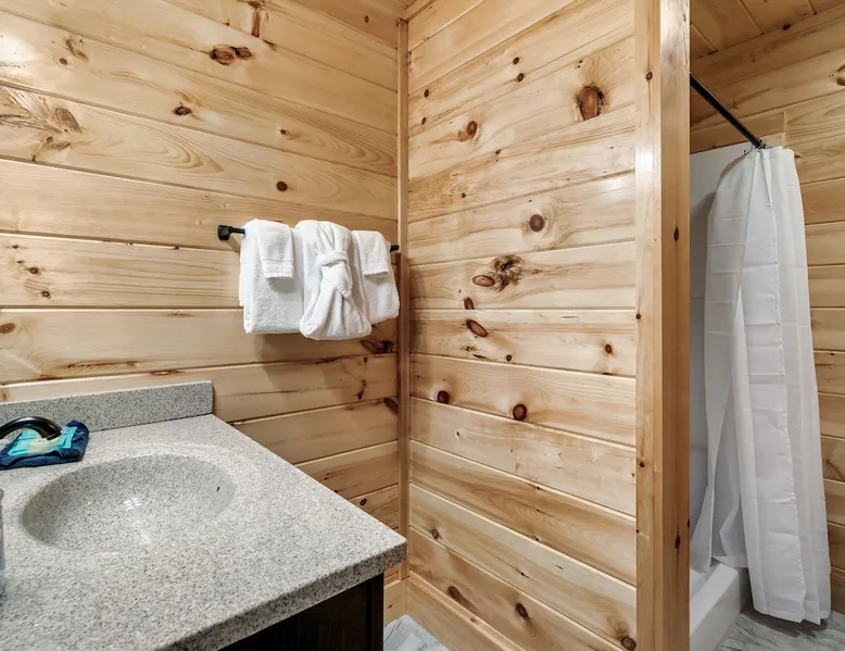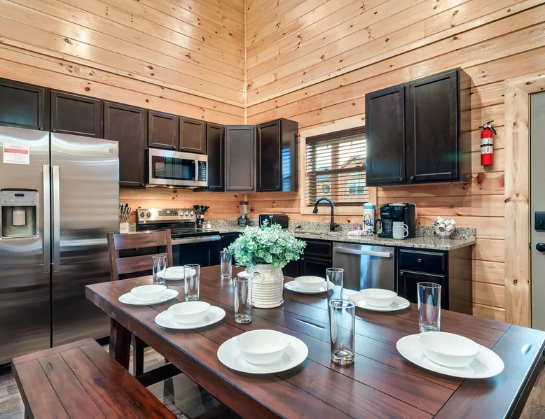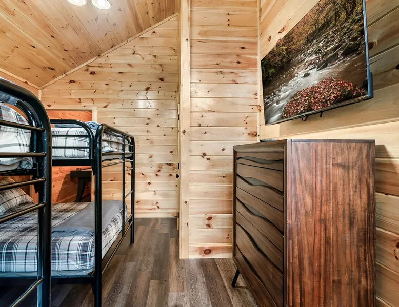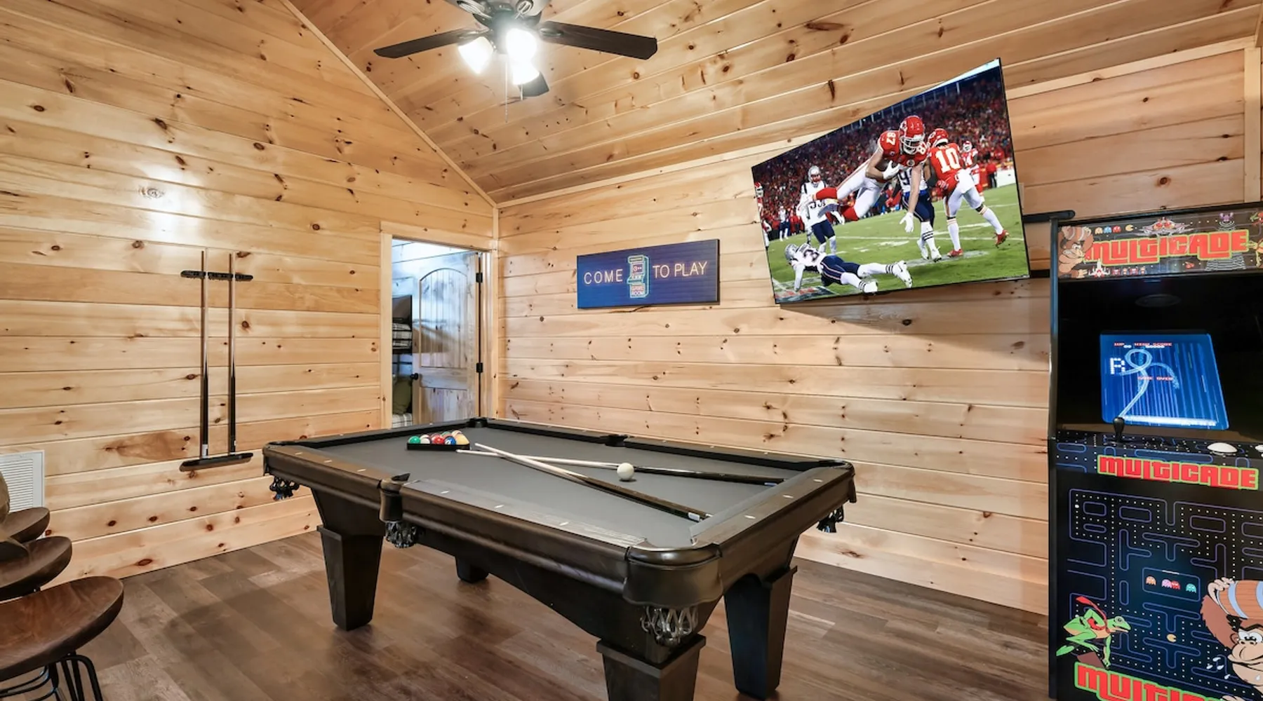 Sunshine Splashed by Thompson Retreats INDOOR HEATED SWIMMING POOL cabin that is ONE minute from the Pigeon Forge parkway and centrally located to all the attractions in Gatlinburg, Pigeon Forge, & the Smoky Mountains! This beautiful new cabin sleeps up to 12 people with 4 en- suite bedrooms. This cabin is the perfect base to explore the Smokies! It's close to local attractions and offers several of its own - indoor pool, pool table and multi-cade, outdoor grill, and streaming smart TVs. The space Escape to the heart of the Smoky Mountains and experience the ultimate in relaxation and entertainment at our stunning Indoor Heated Swimming Pool Cabin. This exceptional two-level cabin is perfectly situated right off the Parkway, offering unrivaled convenience and easy access to all the captivating attractions of Gatlinburg, Pigeon Forge, and the breathtaking Smoky Mountains. Accommodating up to 12 guests, this beautiful cabin boasts 4 spacious en-suite bedrooms, ensuring privacy and comfort for everyone in your group. The modern amenities and tasteful decor make it a cozy home away from home, promising an unforgettable retreat in the midst of nature's wonders. The highlight of this cabin is undoubtedly its private indoor heated swimming pool. Whether it's a summer getaway or a winter escape, you can enjoy a soothing swim in the crystal-clear waters year-round. For those seeking entertainment, the cabin offers a variety of options. Challenge your friends and family to a friendly game on the pool table, or relive the golden age of arcade gaming with our multi-cade machine, providing hours of nostalgia and fun. Craving the great outdoors? Go for a hike in the park or fire up the outdoor grill and savor a delicious barbecue meal while breathing in the fresh mountain air. The cabin's outdoor spaces are perfect for enjoying the natural beauty that surrounds you. When it's time to unwind indoors, you'll find modern comfort in our streaming smart TVs. Catch up on your favorite shows, watch a movie night with loved ones, or simply cozy up by the fireplace with a good book. This cabin isn't just a place to stay; it's your base camp for exploring the wonders of the Smoky Mountains. With its proximity to local attractions and its own array of amenities, your days can be filled with adventure and your nights with relaxation. Whether you're seeking adventure, tranquility, or a bit of both, our Indoor Heated Swimming Pool Cabin offers the perfect blend of luxury, convenience, and entertainment. Book your stay today and embark on an unforgettable journey in the heart of the Smokies! ★ ~2400 Sq Ft ★ Indoor saltwater pool heated to 84 degrees! ★ Reliable Very Fast High Speed Internet (~350MB!) ★ Multicade Barrel Arcade! ★ Pool Table ★ Parking that easily fits three to four cars (five if parked strategically or double parked) ★ Prime Smoky Mountains Location that is right off the Parkway. Private yet convenient ★ ONE minute to Parkway, 7 minutes to The Island, 12 minutes to Dollywood, 14 minutes to Gatlinburg Mountain Village and 15 minutes for the National Park ★ Streaming Roku Smart TV's. BYO password for streaming services such as Netflix, Amazon Prime, etc... ★ Washer/Dryer ★ Fully Equipped Kitchen ★ Enjoy the large deck with comfortable rockers, table and chairs, gas grill and hot tub ★ Close to restaurants, shopping and lots of entertainment ★ Sleeps 12 with three en-suite king bedrooms and an en-suite bunk room with two full over full bunks ★ Comfortable relaxing living room with electric fireplace ★ Private hot tub for 5 people ★ NO pets allowed ★ NO Smoking Guest access You will get a door code before check-in. No need to meet anyone for keys. You get the whole house to yourself. Other things to note ★ OCUPANCY 12 Person Max. All guests must be 25+ (children with parents are allowed) ★ ENTRY: The front door is equipped with an electronic keypad. We will send you your passcode for your door lock. Check in after 4pm No late check-out or early check-in. If you arrive early or depart late, there will be a $100 charge per half-hour. ★ HEATED INDOOR POOL The saltwater pool is the highlight of the cabin! The 16' x 8' Indoor Pool is heated to 84 degrees year round. The pool depth is 3 feet deep. Use at your own risk and supervise children as there is no life guard. The pool is private, exclusively for the use of cabin guests. ★ INTERNET/STREAMING TV’S: High Speed Wireless Internet is included in your stay throughout the cabin. The living room has a 65 inch large flat screen Roku smart TV, great for family movies or ballgames. The loft game room also has a 65 inch streaming Roku smart TVs. Streaming Roku Smart TV's. BYO password for streaming services such as Netflix, Amazon Prime, etc... ★ BEDROOMS There are 3 king master bedrooms with en-suite bathrooms which accommodate up to 6 adults comfortably. The top level also has an ensuite bedroom with 2 full over full bunk beds that can sleep 4 adults comfortably or up to 8 kids comfortably. ★ BATHROOMS 4 bathrooms: 3 with a walk-in showers and 1 with a shower/bathtub combo. ★ KITCHEN A dining table with 2 chairs and 2 benches in the kitchen can fit 8 people. There is also a table behind the sofa that can fit three additional people and a similar table in the loft for three people. The open dining area and a fully equipped kitchen provide for wonderful space for family gatherings. Appliances, pots, pans, cups, plates, utensils, drip/pod Keurig coffee maker. ★ DECK Large deck on the main level with two rockers and a side table, a table and two chairs, gas grill and 5 person hot tub. ★ LAUNDRY Washer and dryer, ironing board and iron. ★ AMENITIES Our cleaning service provides initial start-up supplies including toilet paper, paper towels, dishwasher detergent, trash bags, shampoo and bar soap. Depending on the length of your stay, you may need to purchase some of the items when the initial supply runs out. ★