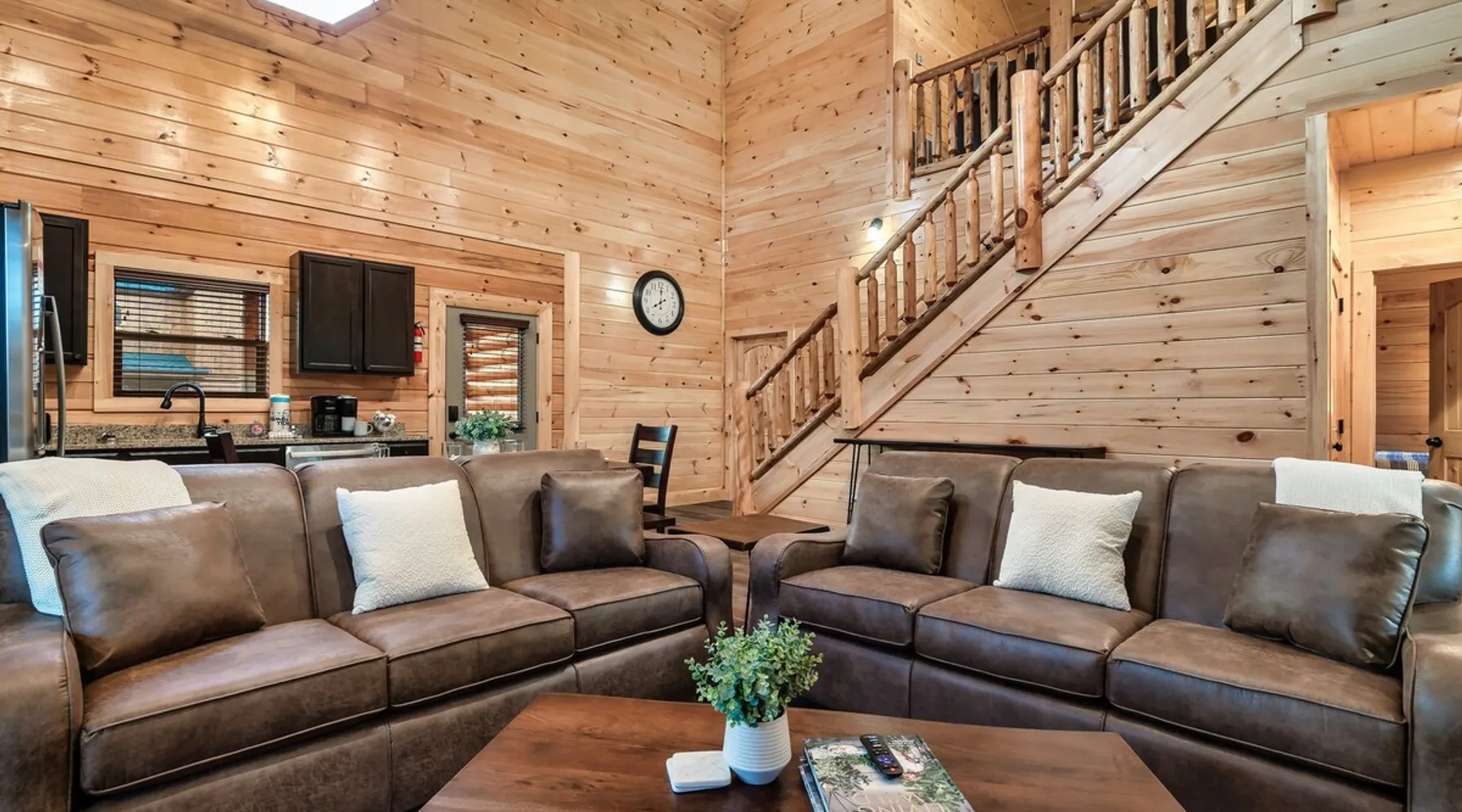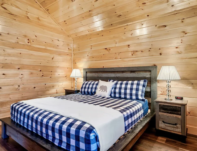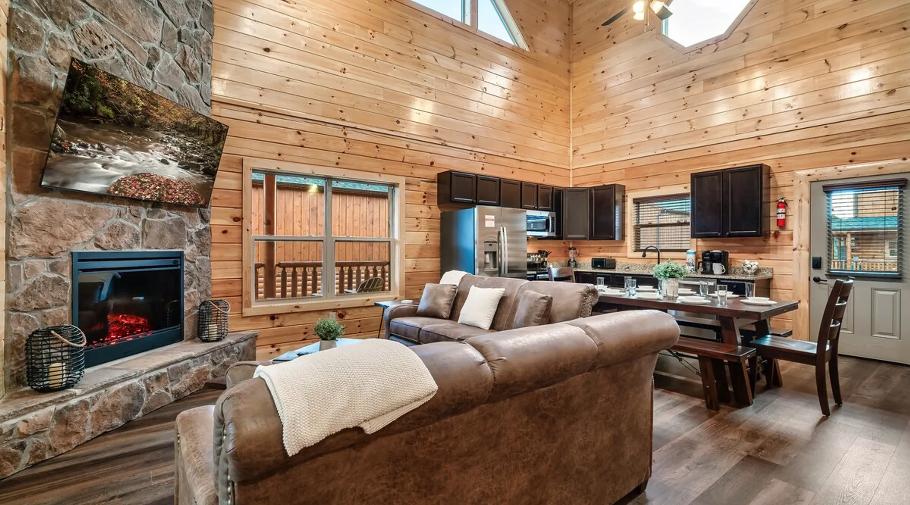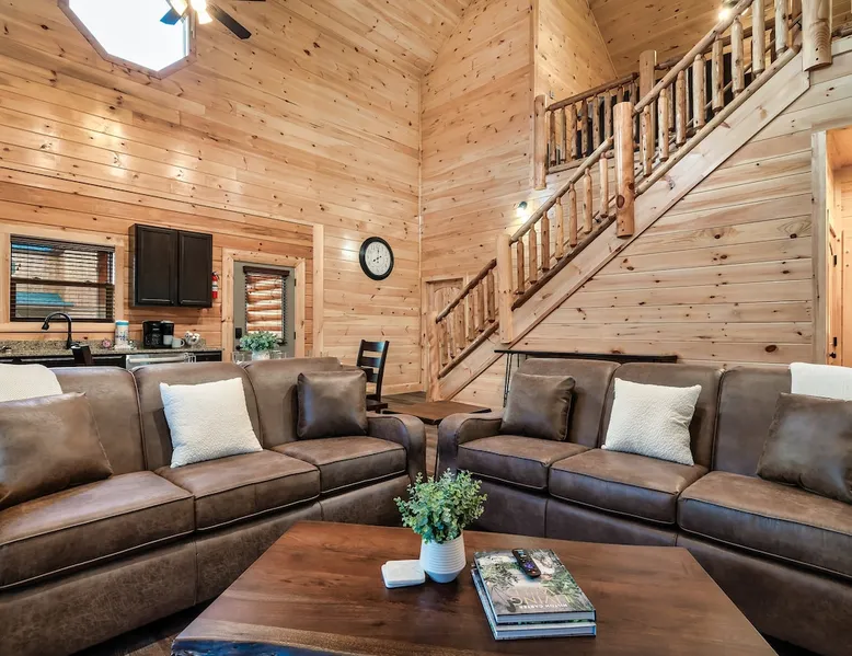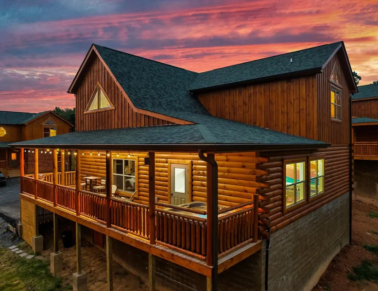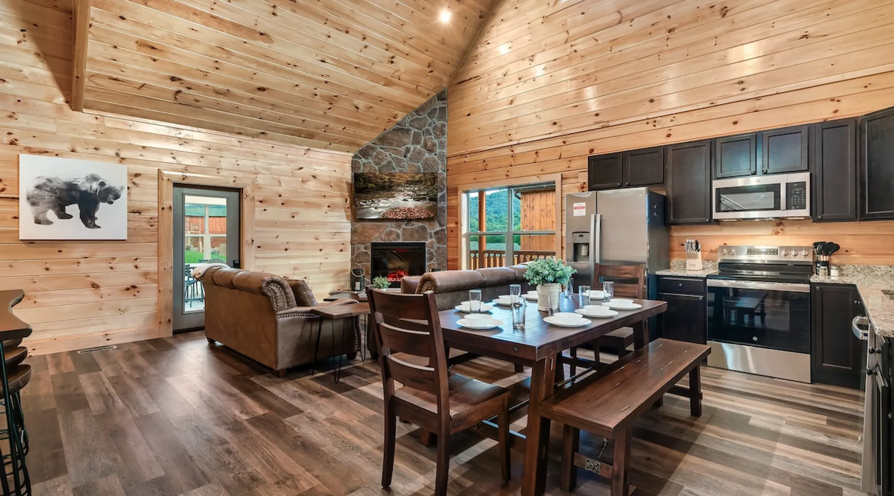 Sunshine Splashed by Thompson Retreats INDOOR HEATED SWIMMING POOL cabin that is ONE minute from the Pigeon Forge parkway and centrally located to all the attractions in Gatlinburg, Pigeon Forge, & the Smoky Mountains! This beautiful new cabin sleeps up to 12 people with 4 en- suite bedrooms. This cabin is the perfect base to explore the Smokies! It's close to local attractions and offers several of its own - indoor pool, pool table and multi-cade, outdoor grill, and streaming smart TVs. The space Escape to the heart of the Smoky Mountains and experience the ultimate in relaxation and entertainment at our stunning Indoor Heated Swimming Pool Cabin. This exceptional two-level cabin is perfectly situated right off the Parkway, offering unrivaled convenience and easy access to all the captivating attractions of Gatlinburg, Pigeon Forge, and the breathtaking Smoky Mountains. Accommodating up to 12 guests, this beautiful cabin boasts 4 spacious en-suite bedrooms, ensuring privacy and comfort for everyone in your group. The modern amenities and tasteful decor make it a cozy home away from home, promising an unforgettable retreat in the midst of nature's wonders. The highlight of this cabin is undoubtedly its private indoor heated swimming pool. Whether it's a summer getaway or a winter escape, you can enjoy a soothing swim in the crystal-clear waters year-round. For those seeking entertainment, the cabin offers a variety of options. Challenge your friends and family to a friendly game on the pool table, or relive the golden age of arcade gaming with our multi-cade machine, providing hours of nostalgia and fun. Craving the great outdoors? Go for a hike in the park or fire up the outdoor grill and savor a delicious barbecue meal while breathing in the fresh mountain air. The cabin's outdoor spaces are perfect for enjoying the natural beauty that surrounds you. When it's time to unwind indoors, you'll find modern comfort in our streaming smart TVs. Catch up on your favorite shows, watch a movie night with loved ones, or simply cozy up by the fireplace with a good book. This cabin isn't just a place to stay; it's your base camp for exploring the wonders of the Smoky Mountains. With its proximity to local attractions and its own array of amenities, your days can be filled with adventure and your nights with relaxation. Whether you're seeking adventure, tranquility, or a bit of both, our Indoor Heated Swimming Pool Cabin offers the perfect blend of luxury, convenience, and entertainment. Book your stay today and embark on an unforgettable journey in the heart of the Smokies! ★ ~2400 Sq Ft ★ Indoor saltwater pool heated to 84 degrees! ★ Reliable Very Fast High Speed Internet (~350MB!) ★ Multicade Barrel Arcade! ★ Pool Table ★ Parking that easily fits three to four cars (five if parked strategically or double parked) ★ Prime Smoky Mountains Location that is right off the Parkway. Private yet convenient ★ ONE minute to Parkway, 7 minutes to The Island, 12 minutes to Dollywood, 14 minutes to Gatlinburg Mountain Village and 15 minutes for the National Park ★ Streaming Roku Smart TV's. BYO password for streaming services such as Netflix, Amazon Prime, etc... ★ Washer/Dryer ★ Fully Equipped Kitchen ★ Enjoy the large deck with comfortable rockers, table and chairs, gas grill and hot tub ★ Close to restaurants, shopping and lots of entertainment ★ Sleeps 12 with three en-suite king bedrooms and an en-suite bunk room with two full over full bunks ★ Comfortable relaxing living room with electric fireplace ★ Private hot tub for 5 people ★ NO pets allowed ★ NO Smoking Guest access You will get a door code before check-in. No need to meet anyone for keys. You get the whole house to yourself. Other things to note ★ OCUPANCY 12 Person Max. All guests must be 25+ (children with parents are allowed) ★ ENTRY: The front door is equipped with an electronic keypad. We will send you your passcode for your door lock. Check in after 4pm No late check-out or early check-in. If you arrive early or depart late, there will be a $100 charge per half-hour. ★ HEATED INDOOR POOL The saltwater pool is the highlight of the cabin! The 16' x 8' Indoor Pool is heated to 84 degrees year round. The pool depth is 3 feet deep. Use at your own risk and supervise children as there is no life guard. The pool is private, exclusively for the use of cabin guests. ★ INTERNET/STREAMING TV’S: High Speed Wireless Internet is included in your stay throughout the cabin. The living room has a 65 inch large flat screen Roku smart TV, great for family movies or ballgames. The loft game room also has a 65 inch streaming Roku smart TVs. Streaming Roku Smart TV's. BYO password for streaming services such as Netflix, Amazon Prime, etc... ★ BEDROOMS There are 3 king master bedrooms with en-suite bathrooms which accommodate up to 6 adults comfortably. The top level also has an ensuite bedroom with 2 full over full bunk beds that can sleep 4 adults comfortably or up to 8 kids comfortably. ★ BATHROOMS 4 bathrooms: 3 with a walk-in showers and 1 with a shower/bathtub combo. ★ KITCHEN A dining table with 2 chairs and 2 benches in the kitchen can fit 8 people. There is also a table behind the sofa that can fit three additional people and a similar table in the loft for three people. The open dining area and a fully equipped kitchen provide for wonderful space for family gatherings. Appliances, pots, pans, cups, plates, utensils, drip/pod Keurig coffee maker. ★ DECK Large deck on the main level with two rockers and a side table, a table and two chairs, gas grill and 5 person hot tub. ★ LAUNDRY Washer and dryer, ironing board and iron. ★ AMENITIES Our cleaning service provides initial start-up supplies including toilet paper, paper towels, dishwasher detergent, trash bags, shampoo and bar soap. Depending on the length of your stay, you may need to purchase some of the items when the initial supply runs out. ★