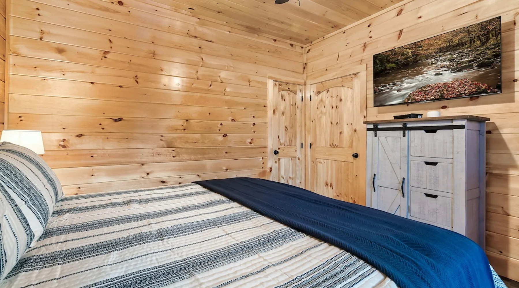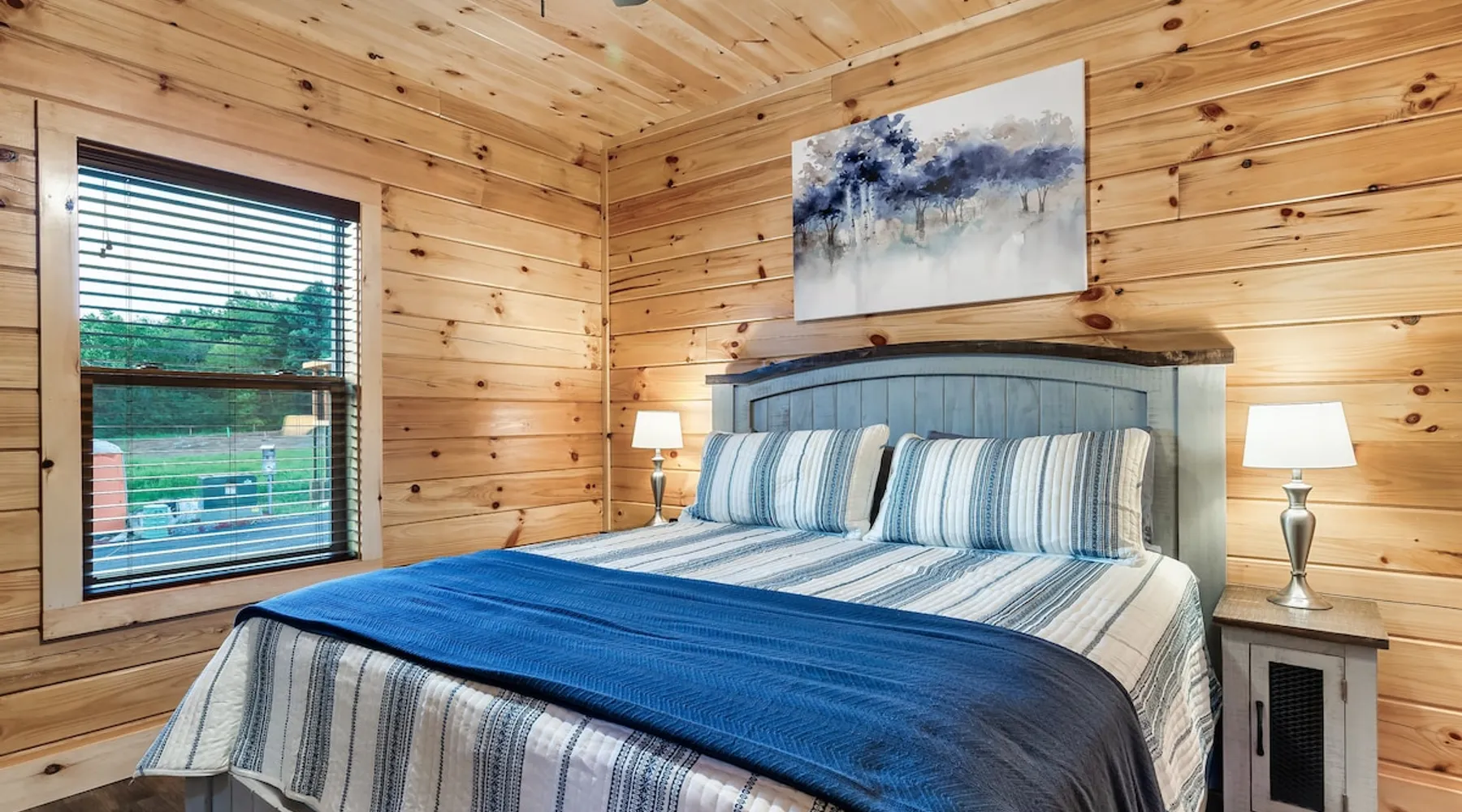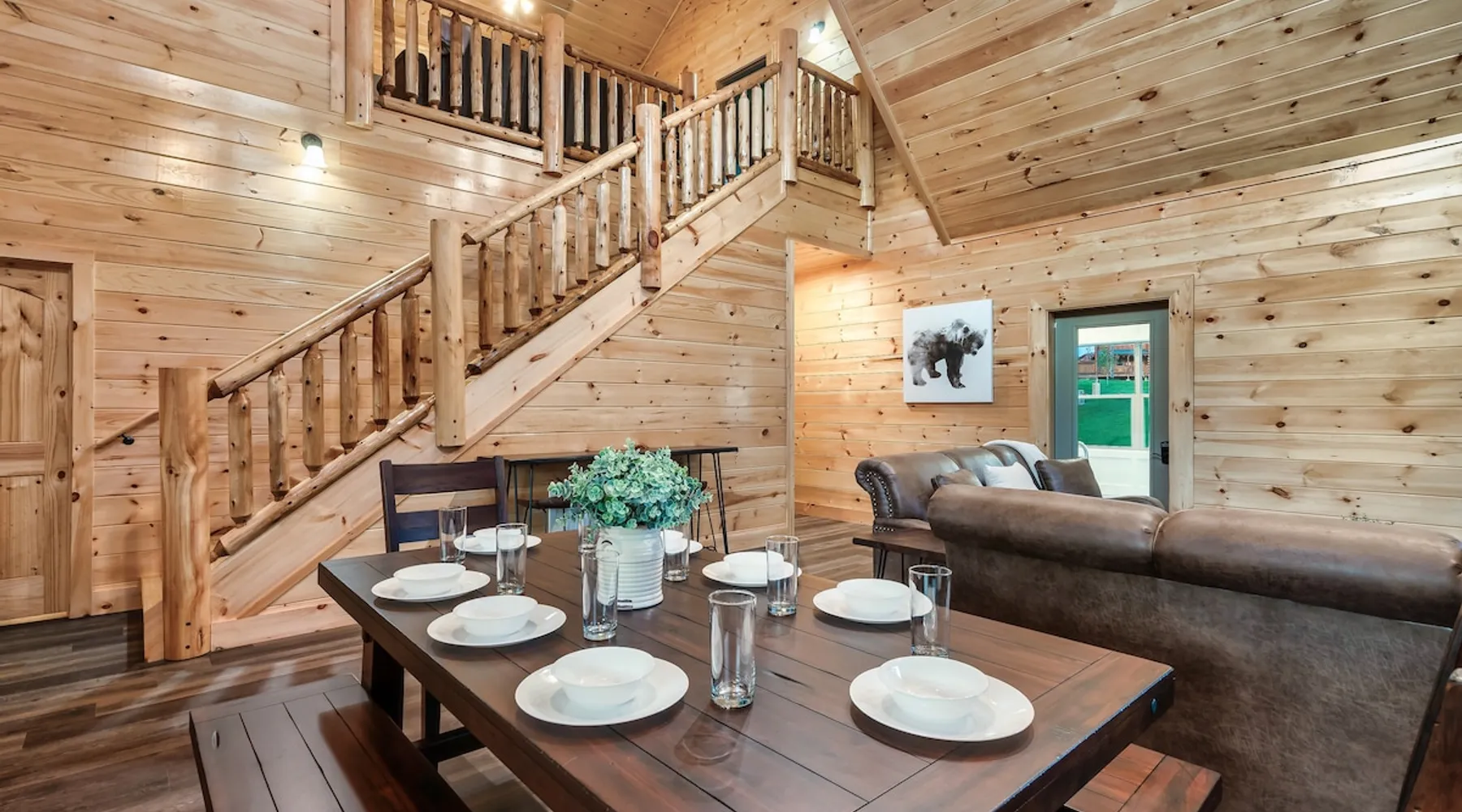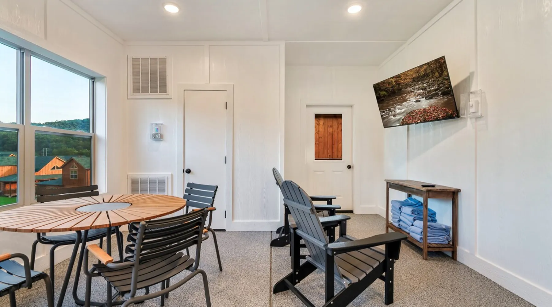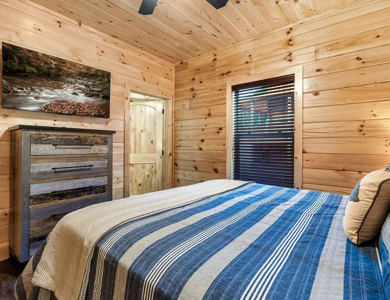 Sunshine Splashed by Thompson Retreats INDOOR HEATED SWIMMING POOL cabin that is ONE minute from the Pigeon Forge parkway and centrally located to all the attractions in Gatlinburg, Pigeon Forge, & the Smoky Mountains! This beautiful new cabin sleeps up to 12 people with 4 en- suite bedrooms. This cabin is the perfect base to explore the Smokies! It's close to local attractions and offers several of its own - indoor pool, pool table and multi-cade, outdoor grill, and streaming smart TVs. The space Escape to the heart of the Smoky Mountains and experience the ultimate in relaxation and entertainment at our stunning Indoor Heated Swimming Pool Cabin. This exceptional two-level cabin is perfectly situated right off the Parkway, offering unrivaled convenience and easy access to all the captivating attractions of Gatlinburg, Pigeon Forge, and the breathtaking Smoky Mountains. Accommodating up to 12 guests, this beautiful cabin boasts 4 spacious en-suite bedrooms, ensuring privacy and comfort for everyone in your group. The modern amenities and tasteful decor make it a cozy home away from home, promising an unforgettable retreat in the midst of nature's wonders. The highlight of this cabin is undoubtedly its private indoor heated swimming pool. Whether it's a summer getaway or a winter escape, you can enjoy a soothing swim in the crystal-clear waters year-round. For those seeking entertainment, the cabin offers a variety of options. Challenge your friends and family to a friendly game on the pool table, or relive the golden age of arcade gaming with our multi-cade machine, providing hours of nostalgia and fun. Craving the great outdoors? Go for a hike in the park or fire up the outdoor grill and savor a delicious barbecue meal while breathing in the fresh mountain air. The cabin's outdoor spaces are perfect for enjoying the natural beauty that surrounds you. When it's time to unwind indoors, you'll find modern comfort in our streaming smart TVs. Catch up on your favorite shows, watch a movie night with loved ones, or simply cozy up by the fireplace with a good book. This cabin isn't just a place to stay; it's your base camp for exploring the wonders of the Smoky Mountains. With its proximity to local attractions and its own array of amenities, your days can be filled with adventure and your nights with relaxation. Whether you're seeking adventure, tranquility, or a bit of both, our Indoor Heated Swimming Pool Cabin offers the perfect blend of luxury, convenience, and entertainment. Book your stay today and embark on an unforgettable journey in the heart of the Smokies! ★ ~2400 Sq Ft ★ Indoor saltwater pool heated to 84 degrees! ★ Reliable Very Fast High Speed Internet (~350MB!) ★ Multicade Barrel Arcade! ★ Pool Table ★ Parking that easily fits three to four cars (five if parked strategically or double parked) ★ Prime Smoky Mountains Location that is right off the Parkway. Private yet convenient ★ ONE minute to Parkway, 7 minutes to The Island, 12 minutes to Dollywood, 14 minutes to Gatlinburg Mountain Village and 15 minutes for the National Park ★ Streaming Roku Smart TV's. BYO password for streaming services such as Netflix, Amazon Prime, etc... ★ Washer/Dryer ★ Fully Equipped Kitchen ★ Enjoy the large deck with comfortable rockers, table and chairs, gas grill and hot tub ★ Close to restaurants, shopping and lots of entertainment ★ Sleeps 12 with three en-suite king bedrooms and an en-suite bunk room with two full over full bunks ★ Comfortable relaxing living room with electric fireplace ★ Private hot tub for 5 people ★ NO pets allowed ★ NO Smoking Guest access You will get a door code before check-in. No need to meet anyone for keys. You get the whole house to yourself. Other things to note ★ OCUPANCY 12 Person Max. All guests must be 25+ (children with parents are allowed) ★ ENTRY: The front door is equipped with an electronic keypad. We will send you your passcode for your door lock. Check in after 4pm No late check-out or early check-in. If you arrive early or depart late, there will be a $100 charge per half-hour. ★ HEATED INDOOR POOL The saltwater pool is the highlight of the cabin! The 16' x 8' Indoor Pool is heated to 84 degrees year round. The pool depth is 3 feet deep. Use at your own risk and supervise children as there is no life guard. The pool is private, exclusively for the use of cabin guests. ★ INTERNET/STREAMING TV’S: High Speed Wireless Internet is included in your stay throughout the cabin. The living room has a 65 inch large flat screen Roku smart TV, great for family movies or ballgames. The loft game room also has a 65 inch streaming Roku smart TVs. Streaming Roku Smart TV's. BYO password for streaming services such as Netflix, Amazon Prime, etc... ★ BEDROOMS There are 3 king master bedrooms with en-suite bathrooms which accommodate up to 6 adults comfortably. The top level also has an ensuite bedroom with 2 full over full bunk beds that can sleep 4 adults comfortably or up to 8 kids comfortably. ★ BATHROOMS 4 bathrooms: 3 with a walk-in showers and 1 with a shower/bathtub combo. ★ KITCHEN A dining table with 2 chairs and 2 benches in the kitchen can fit 8 people. There is also a table behind the sofa that can fit three additional people and a similar table in the loft for three people. The open dining area and a fully equipped kitchen provide for wonderful space for family gatherings. Appliances, pots, pans, cups, plates, utensils, drip/pod Keurig coffee maker. ★ DECK Large deck on the main level with two rockers and a side table, a table and two chairs, gas grill and 5 person hot tub. ★ LAUNDRY Washer and dryer, ironing board and iron. ★ AMENITIES Our cleaning service provides initial start-up supplies including toilet paper, paper towels, dishwasher detergent, trash bags, shampoo and bar soap. Depending on the length of your stay, you may need to purchase some of the items when the initial supply runs out. ★