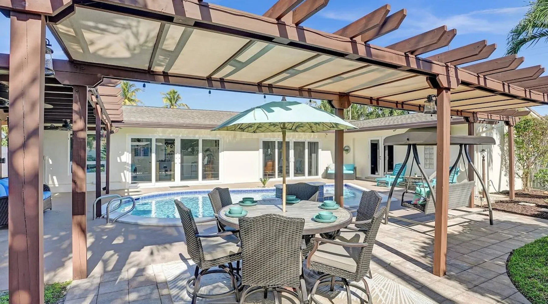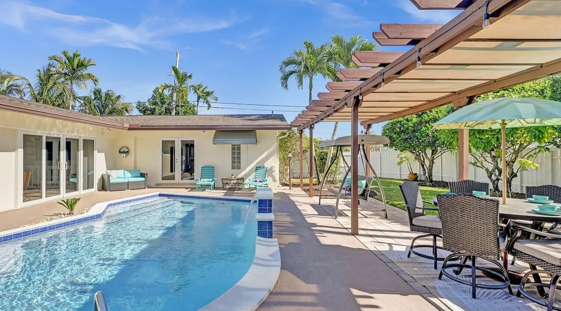 Escape to sunny Hollywood, FL, and discover your perfect vacation oasis! This fully & newly furnished 3-bedroom, 2-bathroom Airbnb is your ticket to relaxation and fun. Lounge by the private heated pool in your fenced backyard, savor meals in the modern kitchen, and enjoy the convenience of on-site laundry facilities. Located in the heart of Hollywood, you're just a short drive away from beautiful beaches, cultural attractions, and dining hotspots. Your unforgettable Florida getaway starts here! The space Welcome to your Hollywood, FL retreat! This beautifully appointed 3-bedroom, 2-bathroom Airbnb promises a relaxing and memorable stay. With modern furnishings, a fully equipped kitchen, and a spacious living area, you'll feel right at home. Step outside to your private heated pool and fenced backyard for sun-soaked relaxation, and enjoy the convenience of on-site laundry facilities. Located in the heart of Hollywood, you'll have easy access to stunning beaches, cultural attractions, and fantastic dining options. Whether you're here for a weekend or an extended stay, this home is your perfect South Florida getaway. Book now and start creating cherished memories! Guest access Access to the whole house, heated pool (Extra Amenity for an additional charge), and private fully fenced backyard. Other things to note There is an Electronic Lock on the Front Door. Guests will be asked to provide us with a unique 4 digit code prior to their arrival. This code will be programed to the front door. There will be a $35 fee if guest fails to checkout on time. Checkout is at 10am. SURROUNDING AREA: 8 miles from Fort Lauderdale/Hollywood Airport, 5.5 miles from the beach, boat tours and other water activities, grocery store only 1.2 miles away, downtown (bars & restaurants) 3.3 miles away, Everglade Airboat Tours 20 miles away, Synagogue only 0.3 miles away, Catholic Church only 0.4 miles away. KID FRIENDLY: Butterfly World, Lion Country Safari, Topgolf, Tidal Wave Water Park, CastAway Water Park, Museum of Discovery and Science and Dr. Von D. Mizell-Eula Johnson State Park. The Salt Water Pool is HEATED during the colder months. -The price for heating the pool is $45.00 a day. Must be paid prior to check-in, with 48 hours notice, and is only available for the entirety of your stay. The pool is cleaned and serviced twice a week.The pool shark should not be removed from the pool. It is there to vacuum and keep the bottom clean. We DO NOT allow locals to rent our home. If you request to book we will kindly decline your request. MOSQUITOES: Depending on the time of year and mostly prevalent after dark. Please keep doors closed. Apply repellent. IGUANAS and WILD GREEN PARROTS: You may spot some Iguanas and Parrots around our Backyard Oasis - They're harmless local wildlife and part of the unique experience here! WE ARE ONLY ALLOWING REGISTERED GUESTS AND ZERO NON-REGISTERED GUESTS. AS PER CITY ORDINANCE PARTIES AND LARGE GATHERINGS ARE STRICTLY PROHIBITED. FREE PARKING UP TO 2 CARS - NO ON-STREET PARKING. NOT FOLLOWING THESE RULES WILL RESULT IN A CANCELLATION OF YOUR RESERVATION AND REMOVAL FROM THE PROPERTY WITH NO REFUND DUE!