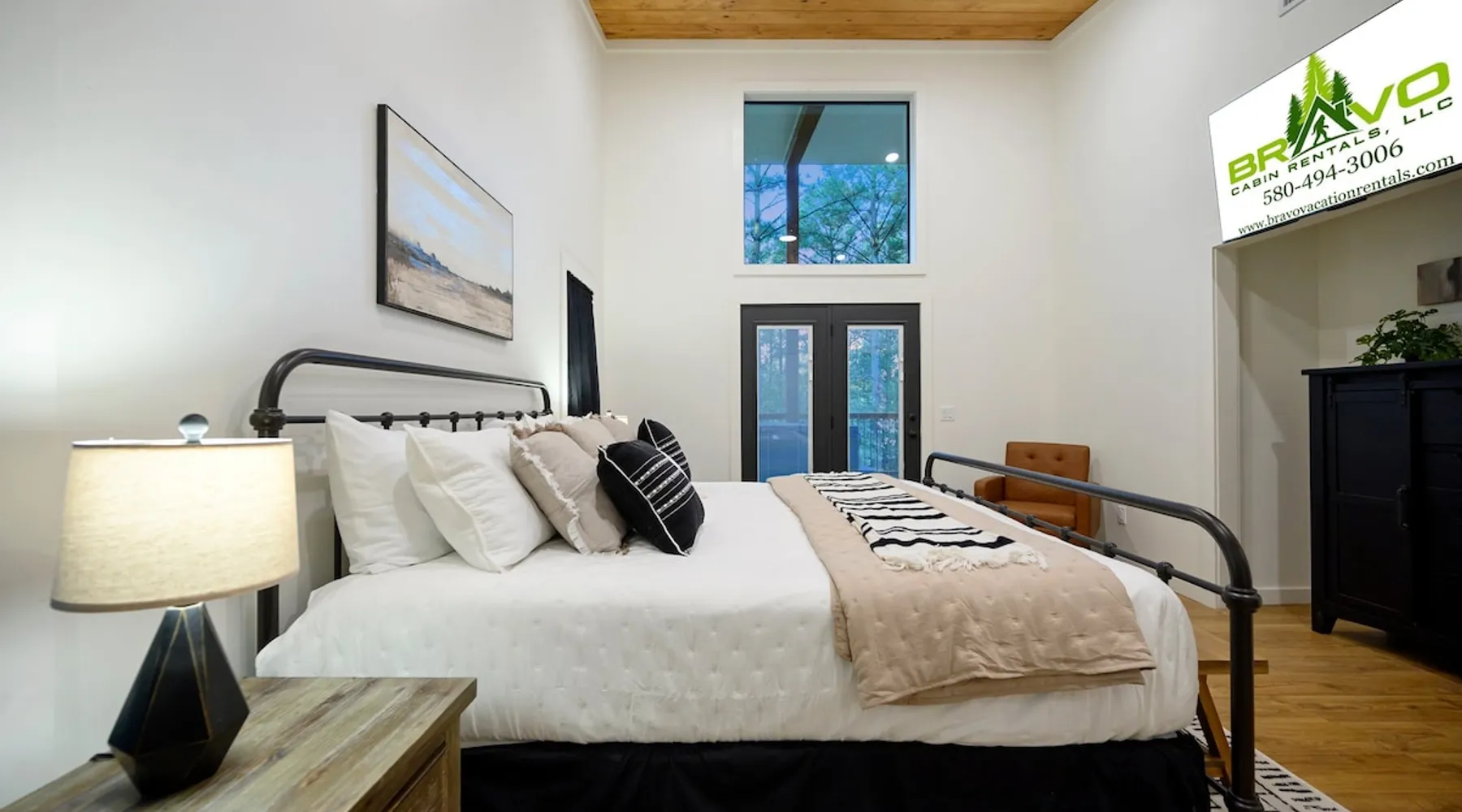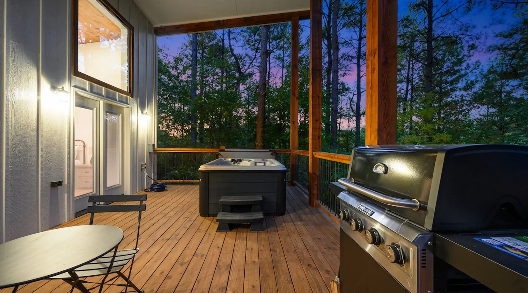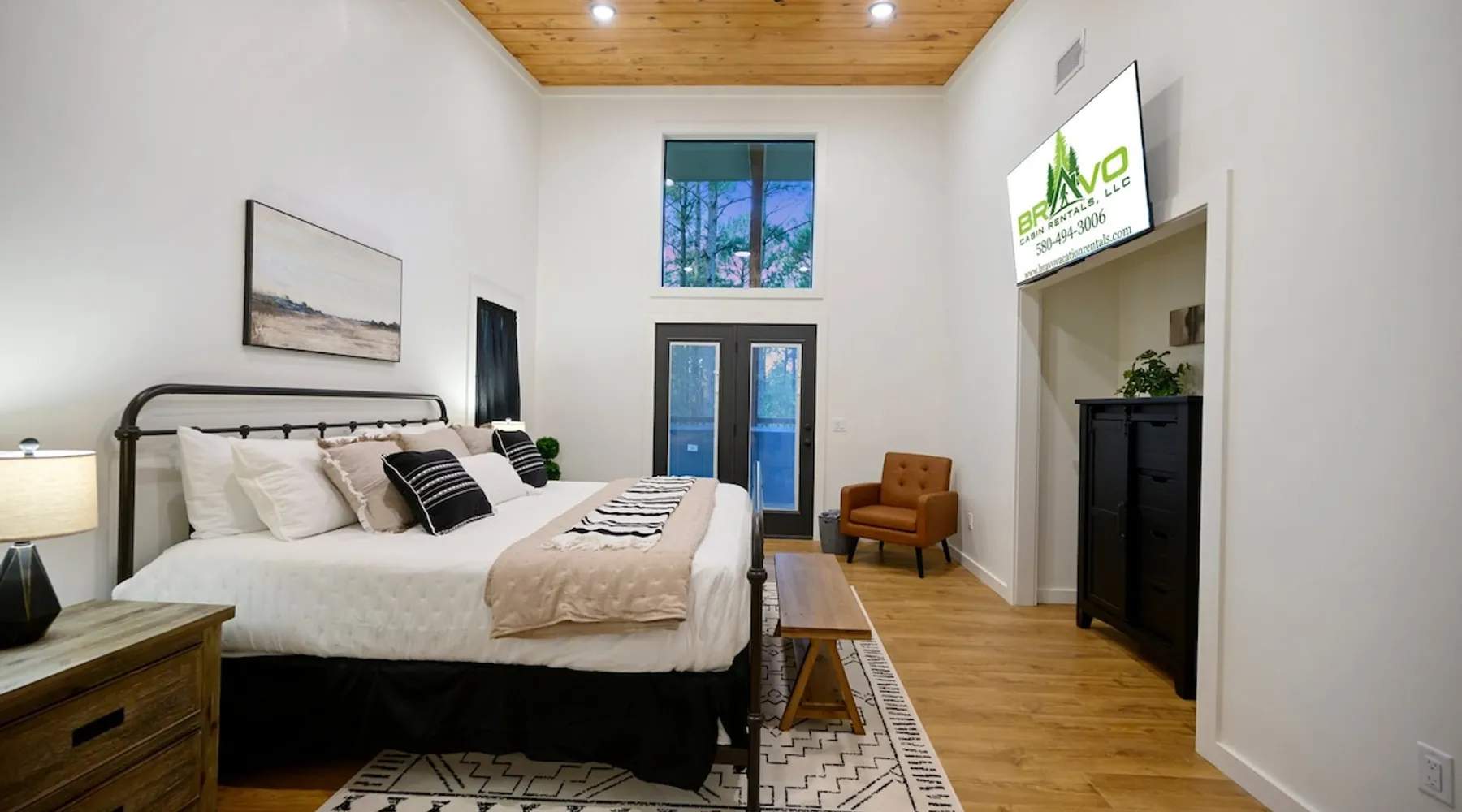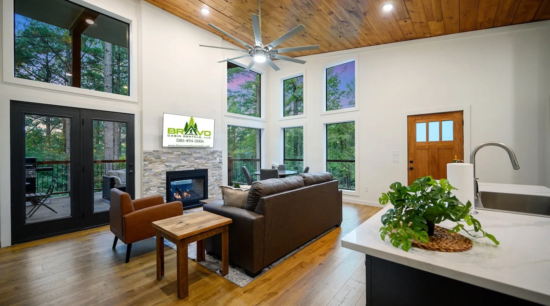 🏡 River’s Edge Looking for the perfect romantic getaway or peaceful solo retreat? River’s Edge is your cozy, woodland haven—nestled in the pines of Hochatown and just minutes from local adventures. Whether you're stargazing from the hot tub or relaxing beside the double-sided fireplace, this cabin offers all the comfort and charm you need to reconnect and unwind. The space 🛋️ LIVING ROOM Sleeper sofa (sleeps 2) and accent chair Throw blankets and coffee table Double-sided gas fireplace Big-screen TV Coffee bar with duo coffee pot/K-cup combo 🍽️ KITCHEN & DINING Fully stocked kitchen with full-size appliances Island seating for 4 Cooking basics: pots, pans, flatware, utensils, paper towels Dishwasher and detergent provided 🛏️ MASTER BEDROOM & BATHROOM King-size bed with nightstands and lamps Foot bench and accent chair Large dresser and walk-in closet with hangers Ensuite bathroom with: Double vanity sinks Large walk-in shower Private toilet 🌳OUTDOOR LIVING Private hot tub Double-sided fireplace Big-screen TV Gas grill Dining for 2 + additional seating for 3 Tranquil woodland views for morning coffee or starry nights 🐾 PET FRIENDLY 2 dogs under 50 lbs each (6 months or older) $125 per pet (non-refundable) 📌 GENERAL INFO Full-size washer and dryer Sleeper sofa bedding in the master dresser Gas fireplaces are seasonal (October–May 15th) Free Wi-Fi Refund policy: 6% processing fee on refunds. Max occupancy: 4 guests – NO EXCEPTIONS Guest access Guest has access to entire cabin Other things to note It is located near all the best restaurants, activities, and park amenities. It is just a short drive to Broken Bow Lake, Beavers Bend State Park, popular hiking trails, restaurants, breweries, wineries, and downtown Hochatown, and access to all the outdoors activities you want – boating, hiking, fly-fishing, kayaking, zip-lining, ATV trails, horseback riding, Cedar Creek Golf Course, Choctaw Landing Casino, mini-golf, helicopter rides, mining for gold, train rides, go-carts, and a great petting zoo. Don’t forget these items when you come to visit: • Rain gear and light jackets (Our average rainfall is 55″-60″ each year). • We have beautiful scenic trails; good hiking boots are a must. • Water shoes for our vast shorelines and streams. • Insect repellent, sunblock, and other first-aid supplies. • Coffee and filters – enjoy this while sitting on the deck in the early morning. • Condiments --A starter supply of coffee/filters, salt/pepper, paper towels, toilet paper, bath soap, dish soap, dishwasher tablets, trash bags, and laundry soap is provided. Still, guests may need to bring additional supplies. If we are missing something or you have a question we haven't answered, please feel free to reach out to us directly at Bravo Cabin Rentals and we will personally respond as soon as possible. We look forward to making your next vacation in Broken Bow/Hochatown one you won’t forget!