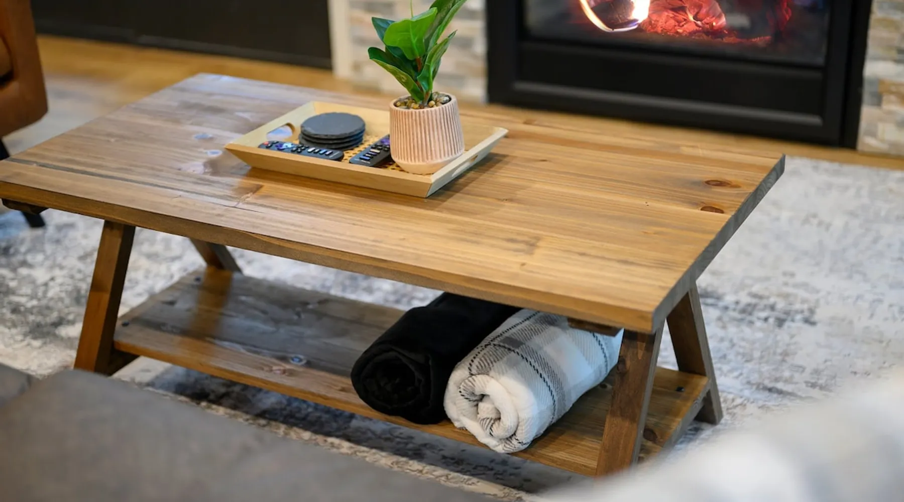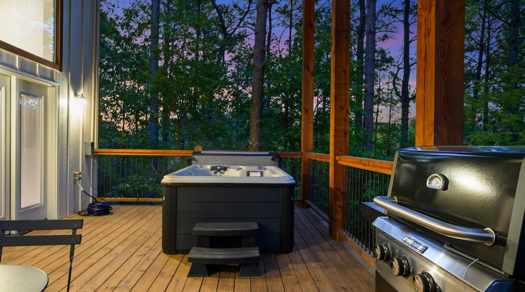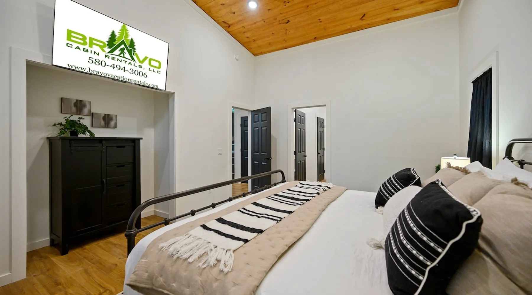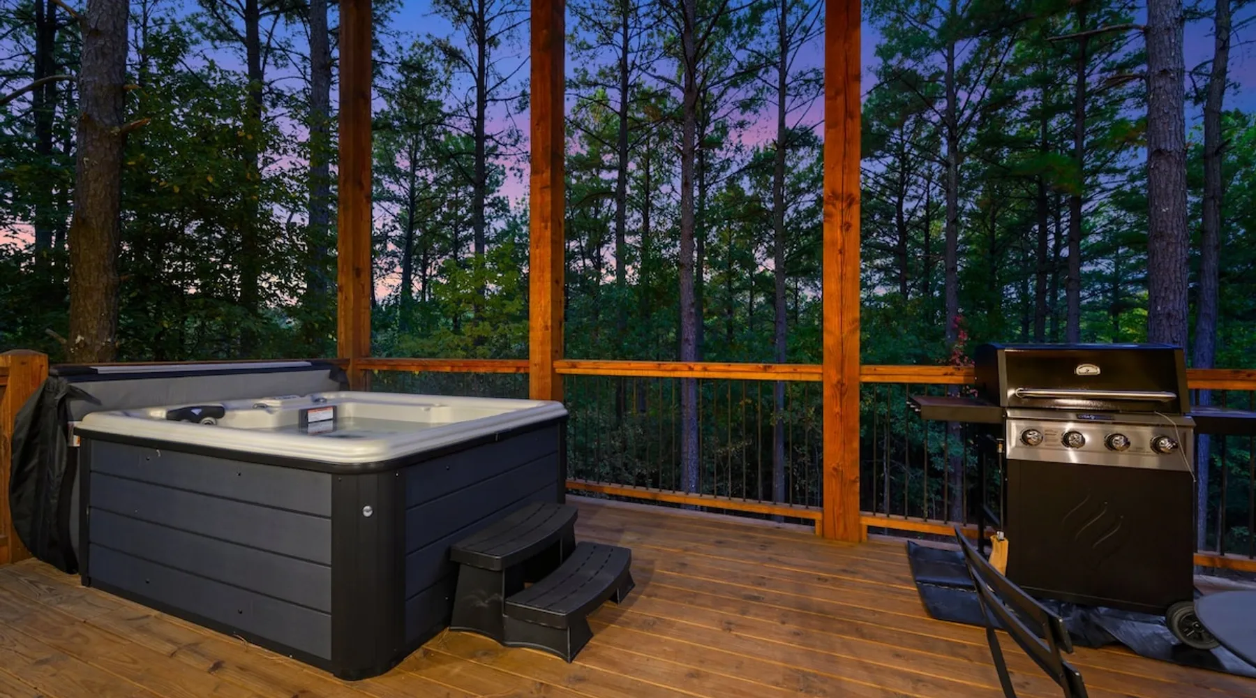 🏡 River’s Edge Looking for the perfect romantic getaway or peaceful solo retreat? River’s Edge is your cozy, woodland haven—nestled in the pines of Hochatown and just minutes from local adventures. Whether you're stargazing from the hot tub or relaxing beside the double-sided fireplace, this cabin offers all the comfort and charm you need to reconnect and unwind. The space 🛋️ LIVING ROOM Sleeper sofa (sleeps 2) and accent chair Throw blankets and coffee table Double-sided gas fireplace Big-screen TV Coffee bar with duo coffee pot/K-cup combo 🍽️ KITCHEN & DINING Fully stocked kitchen with full-size appliances Island seating for 4 Cooking basics: pots, pans, flatware, utensils, paper towels Dishwasher and detergent provided 🛏️ MASTER BEDROOM & BATHROOM King-size bed with nightstands and lamps Foot bench and accent chair Large dresser and walk-in closet with hangers Ensuite bathroom with: Double vanity sinks Large walk-in shower Private toilet 🌳OUTDOOR LIVING Private hot tub Double-sided fireplace Big-screen TV Gas grill Dining for 2 + additional seating for 3 Tranquil woodland views for morning coffee or starry nights 🐾 PET FRIENDLY 2 dogs under 50 lbs each (6 months or older) $125 per pet (non-refundable) 📌 GENERAL INFO Full-size washer and dryer Sleeper sofa bedding in the master dresser Gas fireplaces are seasonal (October–May 15th) Free Wi-Fi Refund policy: 6% processing fee on refunds. Max occupancy: 4 guests – NO EXCEPTIONS Guest access Guest has access to entire cabin Other things to note It is located near all the best restaurants, activities, and park amenities. It is just a short drive to Broken Bow Lake, Beavers Bend State Park, popular hiking trails, restaurants, breweries, wineries, and downtown Hochatown, and access to all the outdoors activities you want – boating, hiking, fly-fishing, kayaking, zip-lining, ATV trails, horseback riding, Cedar Creek Golf Course, Choctaw Landing Casino, mini-golf, helicopter rides, mining for gold, train rides, go-carts, and a great petting zoo. Don’t forget these items when you come to visit: • Rain gear and light jackets (Our average rainfall is 55″-60″ each year). • We have beautiful scenic trails; good hiking boots are a must. • Water shoes for our vast shorelines and streams. • Insect repellent, sunblock, and other first-aid supplies. • Coffee and filters – enjoy this while sitting on the deck in the early morning. • Condiments --A starter supply of coffee/filters, salt/pepper, paper towels, toilet paper, bath soap, dish soap, dishwasher tablets, trash bags, and laundry soap is provided. Still, guests may need to bring additional supplies. If we are missing something or you have a question we haven't answered, please feel free to reach out to us directly at Bravo Cabin Rentals and we will personally respond as soon as possible. We look forward to making your next vacation in Broken Bow/Hochatown one you won’t forget!
