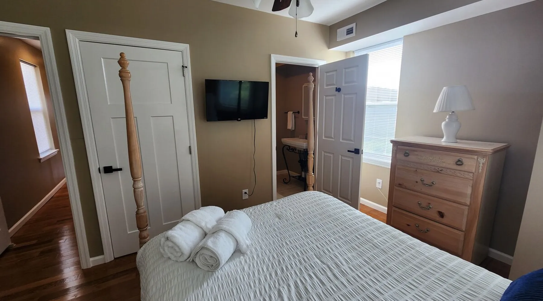 Relax and enjoy a vacation at Atlantic City shore! Perfect for a family or group of friends looking to have a memorable Jersey Shore getaway, less than a block from the Beach and Boardwalk. Spacious 4 bedroom, 3 bathroom property, with full kitchen, upper balcony deck and more! Located in the Inlet area of AC, directly next to Ocean Casino Resort; The Absecon Lighthouse, Island Waterpark, North Beach Mini Golf, Tony Boloney's, Hot Bagels & a liquor store are all nearby! The space The home is ready for your ocean retreat! Located in the great inlet neighborhood, just a quick stroll to beach and boardwalk, just minutes away from Gardner's Basin, casinos, and all the hustle and bustle of Atlantic City! MAIN LEVEL: -The main level of the home has a living room, kitchen, dining area, full bathroom, and a front room with a twin size day bed with a twin size trundle bed. (ideal for someone who cannot go up many stairs) -There is a large smart TV in the living room (no cable, just streaming apps). KITCHEN: -The kitchen has new appliances and basic kitchenware SECOND LEVEL: -Upstairs Level of the home has 4 bedrooms, 1 full bathroom in the hallway and 1 ensuite full bathroom in the master SLEEPING ARRANGEMENTS: UPSTAIRS BEDROOM 1- 1 Queen Sized Bed and Smart TV BEDROOM 2- 1 Full Sized Bed and Smart TV BEDROOM 3- 1 Full Sized Bed, attached full bathroom and Smart TV BEDROOM 4- Futon single sleeper, Smart TV (this room has a door to the back upper balcony) ON MAIN LEVEL BEDROOM 5- Front room with a twin size day bed with a twin size trundle bed. (sleeps 2- ideal for someone who cannot go up many stairs) AMENITIES: The home has Wifi, a coffee maker, board games and more! BOOK WITH US and unlock discounts and special offers exclusive to Cozy Cohost guests. Take advantage of all that Atlantic City has to offer and enjoy savings at top local spots including famous restaurants, night clubs, spas, coffee shops, distilleries, breweries, boat tours, bike rentals, mini golf, and more... Guest access ACCESS & ENTRY: -Guests have access to the entire home during their stay. -This is an attached property, so there is another attached residence in the basement of the property. Each unit has their own separate entrances, and there are no shared spaces. -Please note that check-out time is promptly at 11:00 AM. Failure to check out by this time may result in a $100 fee per hour. We appreciate your cooperation in ensuring a smooth transition for our next guests. Thank you for your understanding! KEYLESS ENTRY: -Your host will provide you with the door code approximately one hour prior to check in the day of your trip. PARKING: -There is no driveway or designated parking, street parking is available at this property. -Guests are responsible for city street parking compliance; read & follow signage to avoid parking tickets. -We are not responsible for parking tickets due to negligence. - This property is on beach block right off of the boardwalk so parking may be limited at times depending on the season. In the event you cannot find parking on S Metropolitan Avenue we suggest using the self parking garage next door at Ocean Casino. MAIL: -Please do not ship items to the property. -If there is something of priority that you need shipped please reach out to us directly for alternative options. -We are not responsible for any items shipped to the property. ENVIRONMENTAL NOTES: -Property located in a city environment near the beach and boardwalk; potential for noise from cars or foot traffic. -Please be advised that since the property is close to the beach, there may be a lot of beachgoers on the block at times. -This property is also close to the outdoor beach club at Ocean Casino which noise and music will be heard from. Other things to note HONESTY & EXPECTATIONS: At "Ocean Pearl", we want our guests to have a clear understanding of the distinctions between vacation rentals and hotels. While we diligently maintain our properties, wear and tear are inherent aspects of vacation rentals. Although we address issues promptly, the high volume of guests may result in occasional delays between stays. Any significant damage or serious concerns are prioritized and resolved before a guest's check-in, provided we are made aware of the issue. CLEANING: Our dedicated cleaning team meticulously sanitizes and cleans each home. Unlike standard hotel rooms, homes entail a more detailed cleaning process due to their larger size. Despite our team's efforts to ensure optimal cleanliness, minor oversights may occur. For substantial errors, we are committed to rectifying the situation promptly. While we take pride in our cleaning standards, we ask for understanding that, as in any human endeavor, perfection is not always attainable, especially when minor details have no direct impact on your stay. HOUSEHOLD ITEMS: As private residences, it's important to recognize that household items may break or require repairs during your stay. While we understand the inconvenience this may pose to our guests, it's equally disruptive for us. Appliances such as water tanks, HVAC systems, dishwashers, and refrigerators may experience issues. We cannot guarantee immunity from such occurrences, but we pledge to address and resolve any situation swiftly. While we assure our commitment to guests' well-being, we're honest about the potential for unforeseen issues. AMENITIES: -WiFi included; exterior ring camera security for added safety. -Linens, towels, and basic amenities provided. -Guests must purchase their own amenities when stock runs out. -No laundry detergent is provided. -Basic cookware supplies; no salt, pepper, oil, or kitchen condiments. RESERVATION/CANCELLATION NOTES: -If your dates are booked, please ask about our other listings. -Changing reservation dates or guest quantity may incur additional fees. -Rates/prices subject to change based on reservation adjustments. -Guests may request to change booking dates up to 14 days before check-in, subject