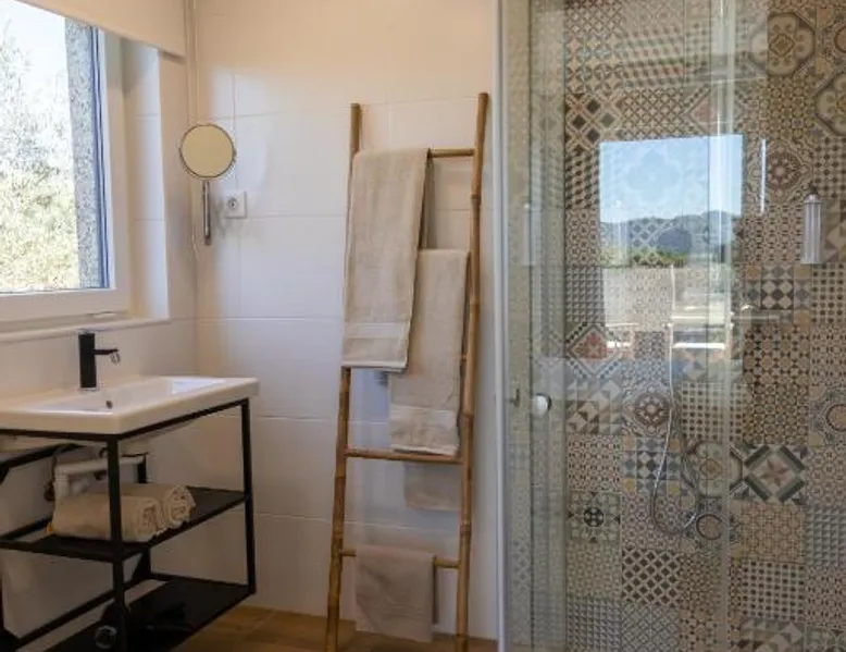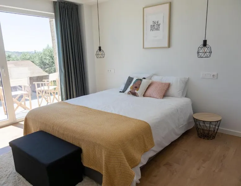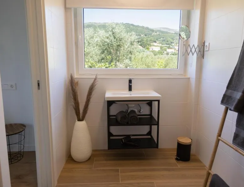 Elegant Accommodations: Quinta da Sra Marocas in Tortosendo offers a farm stay experience with a swimming pool boasting stunning views, a sun terrace, and a lush garden. Free WiFi is available throughout the property. Comfortable Amenities: Guests can enjoy a lounge, shared kitchen, indoor and outdoor play areas, and a games room. Additional facilities include an electric vehicle charging station, coffee shop, and outdoor seating areas. Explore the Area: Located 82 mi from Viseu Airport, the property is near attractions such as Parque Natural Serra da Estrela (15 mi) and Covilha University (3.7 mi). Activities include skiing, walking tours, hiking, and cycling. Guest Satisfaction: Highly rated for its attentive staff, delicious breakfast, and inviting swimming pool. Guests will have a special experience as this double room offers a sauna. This air-conditioned double room includes a flat-screen TV with cable channels and a private bathroom. The unit offers 1 bed.