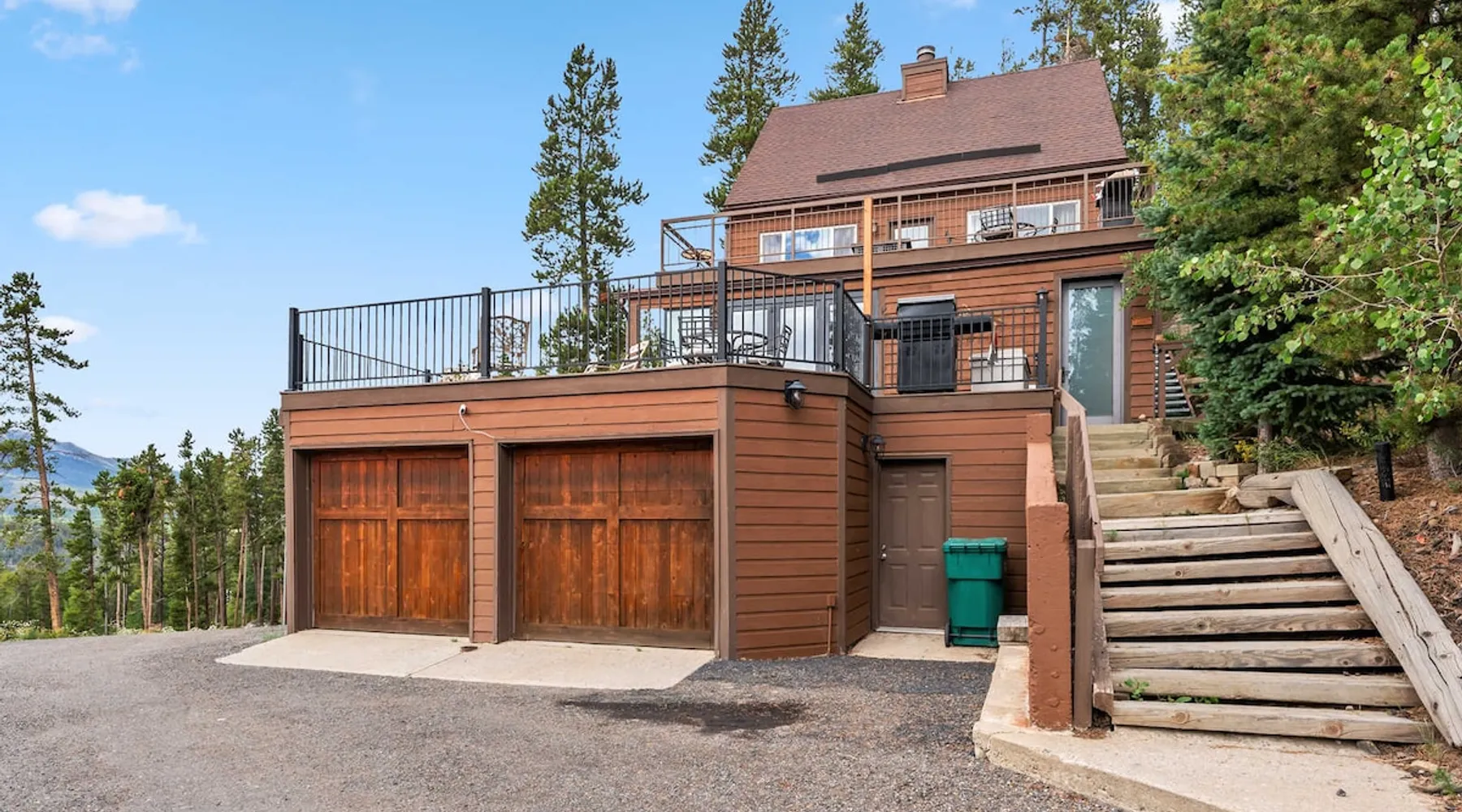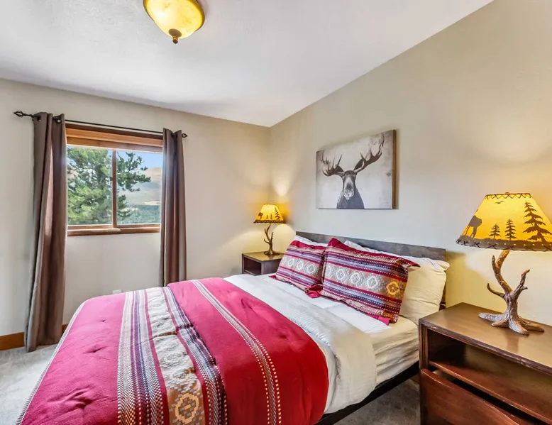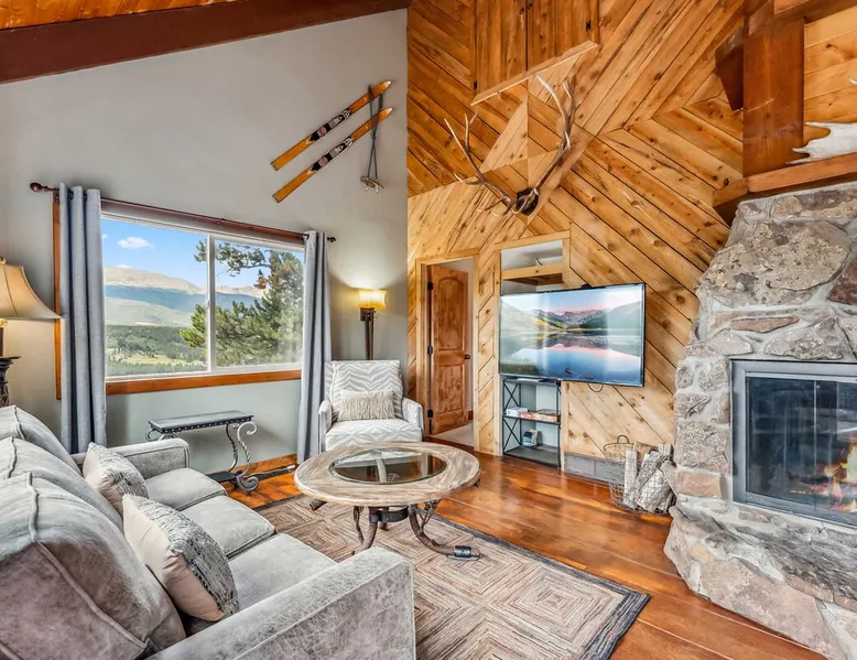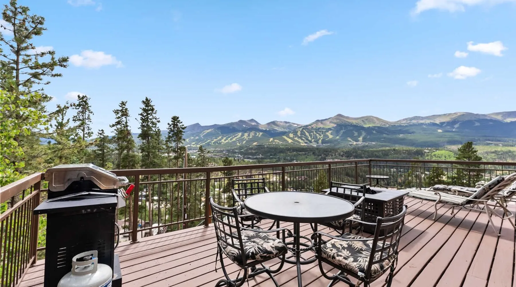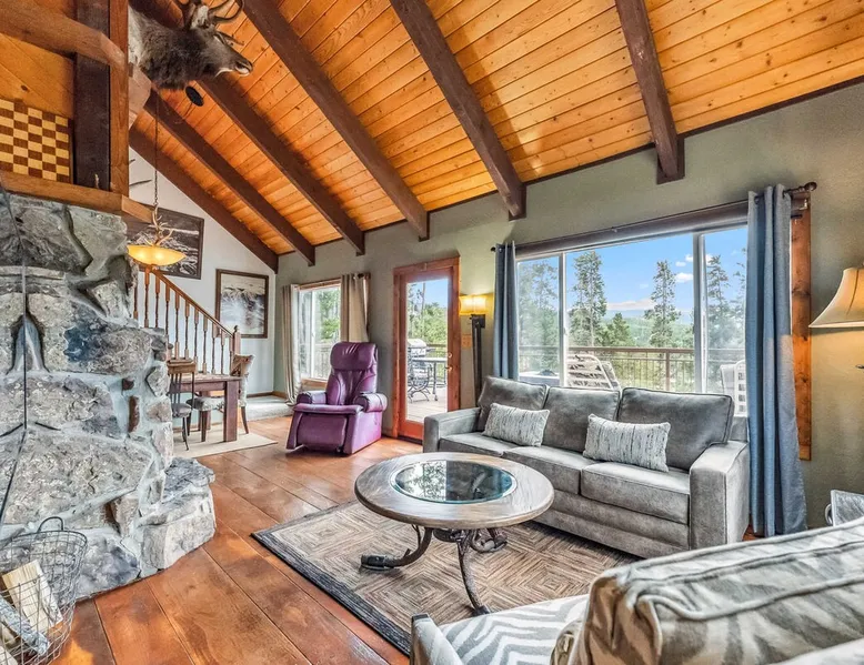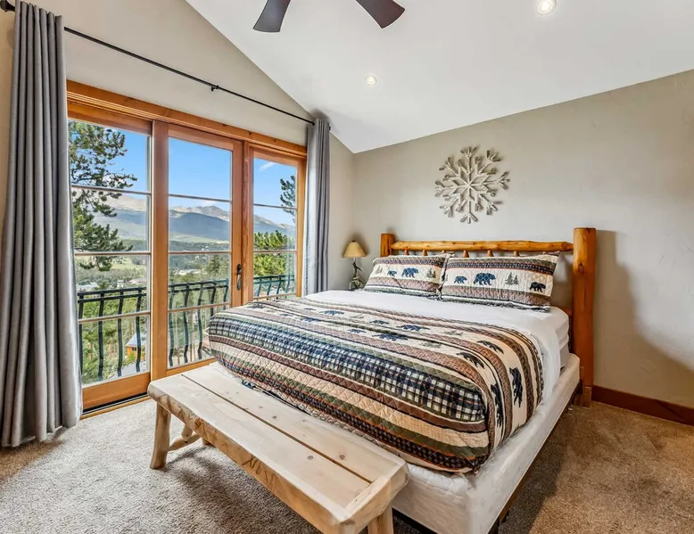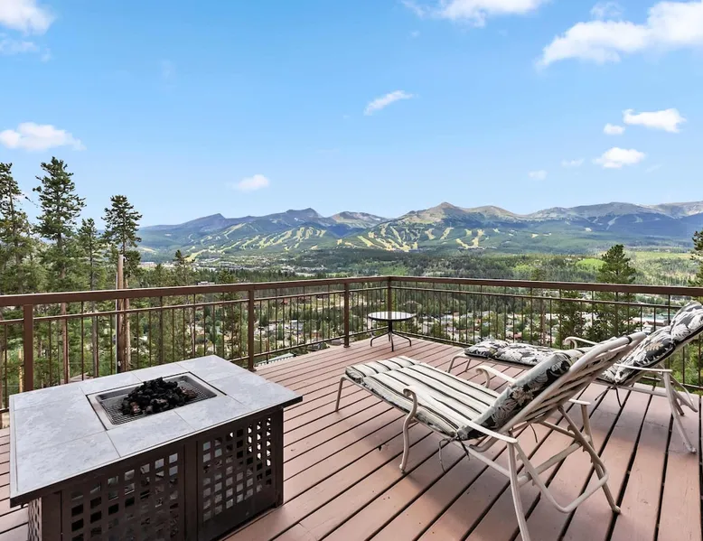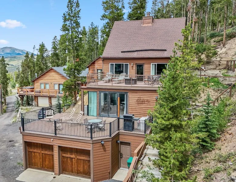 Experience the best of Breckenridge at this spacious vacation rental, just 1.6 miles from Breckenridge Ski Resort and close to attractions like the BreckConnect Gondola. Enjoy impressive mountain views from 2 decks, complete with a gas BBQ and fire table. Inside, you'll find 3 levels of living space, including a cozy lounge, a kitchen, and a wood-burning fireplace. This home offers the perfect blend of comfort and breathtaking scenery for your mountain getaway. The space Location perks: Breckenridge Ski Resort (1.6 miles), Breckenridge Recreation Center( 1.7 miles), BreckConnect Gondola (1.8 miles), Main Street Station (2.5 miles), Breckenridge Golf Club (4.5 miles) Interior: - Fully equipped kitchen (drip coffee maker, French press, blender, toaster oven) - 6-person dining table - 3 Smart TVs (55” in the living room) - Wood-burning fireplace - Radiant floor heat in bathrooms - 2 sets of stacked washer/dryers - Central heating, no A/C Exterior: - 2 decks - Gas BBQ - Outdoor table with 4 chairs - Fire table - Stunning mountain views - 33 steps to access the unit Upper Floor: 1 bedroom, 1 en suite bath Main Floor: Kitchen, dining room, living room, 1 bedroom, 1 full bath Lower Floor: Mudroom, lounge room, 1 bedroom, 1 en suite bath This Breck Mountain Retreat is perfect for group getaways, offering ample space for everyone to spread out and relax. With its warm mountain home charm, you'll love the vaulted ceilings, exposed wood beams, and soaring windows that frame stunning mountain views. On the main level, the cozy living room, anchored by a wood-burning fireplace, is ideal for gathering after a day of mountain adventures. The fully equipped kitchen makes it easy to prepare meals for the whole group, with a 6-person dining table perfect for shared dinners. A comfortable bedroom and full bath on this level provide a convenient spot to rest. Upstairs, 1 bedroom await, including a serene master with an en suite bath, ensuring everyone has their own private space. The lower level feels like a private getaway, featuring a cozy lounge room—perfect for game nights or quiet relaxation. An additional bedroom on this level, complete with an en suite bath, offers extra privacy for guests. Outside, 2 expansive decks invite you to soak in the breathtaking mountain views. Whether you're grilling on the gas BBQ, dining alfresco, or gathering around the fire table, you'll find the perfect setting to enjoy the natural beauty of Breckenridge. STR License Number: STR21-01182 Guest access Guests will have access to the entire home and 4 parking spaces in front of the home. There are 33 steps to access the unit. Other things to note Please note that like most homes in the area, this home does not have A/C. Please keep in mind that if you plan to ski, you are responsible for verifying the ski resorts' opening and closing dates. Registration number STR21-01182