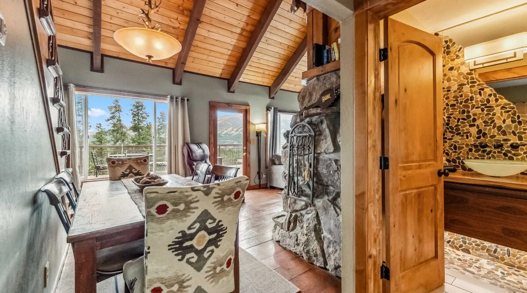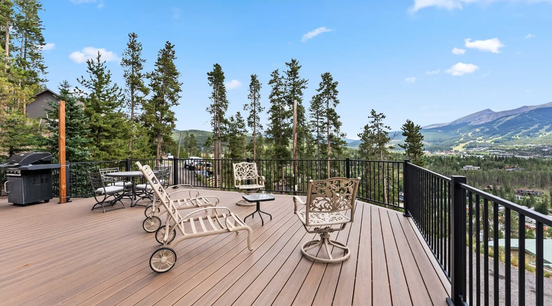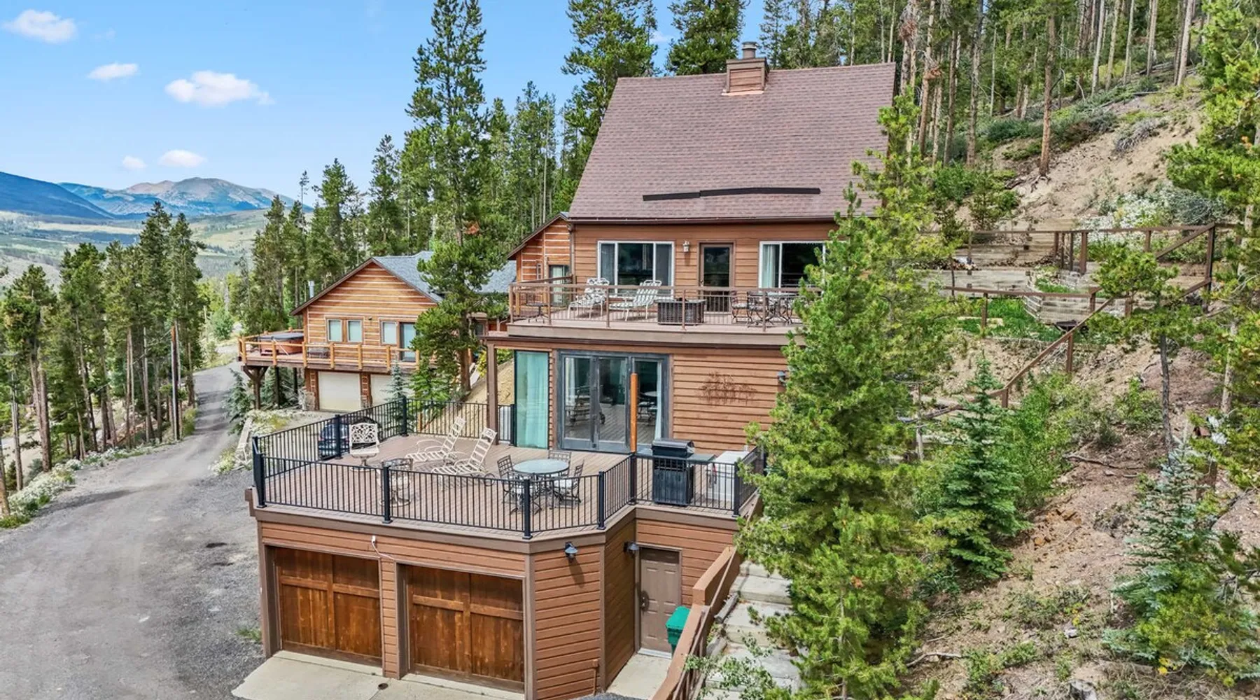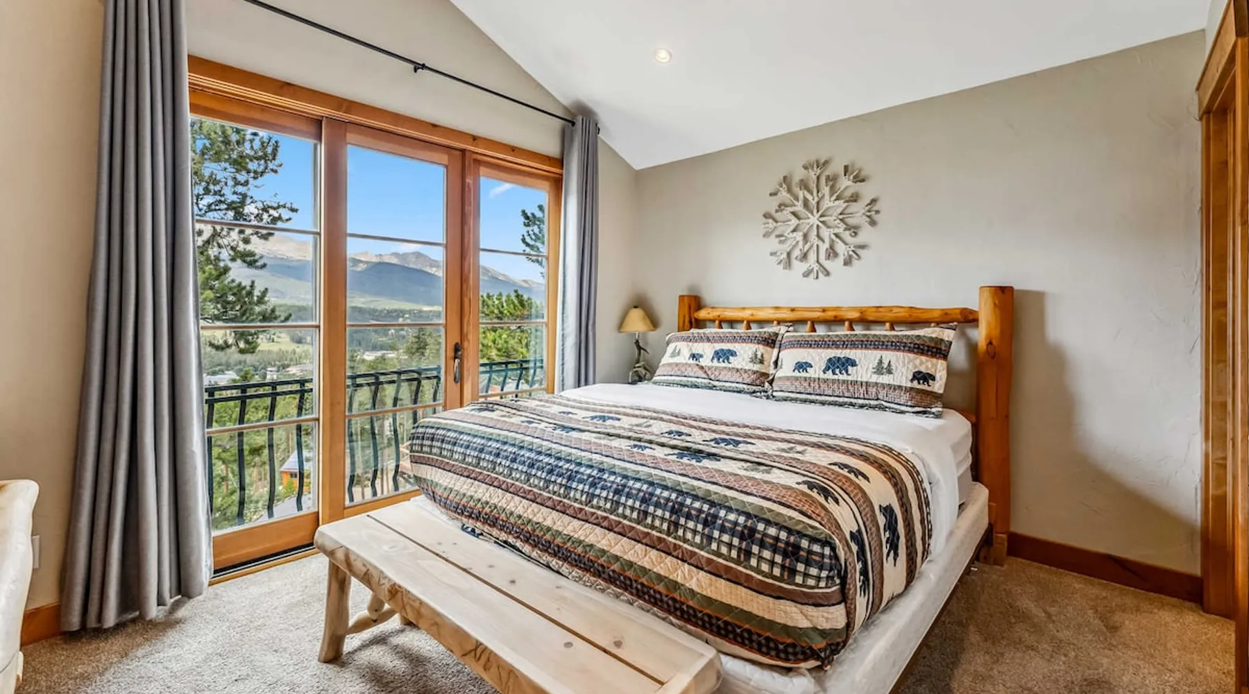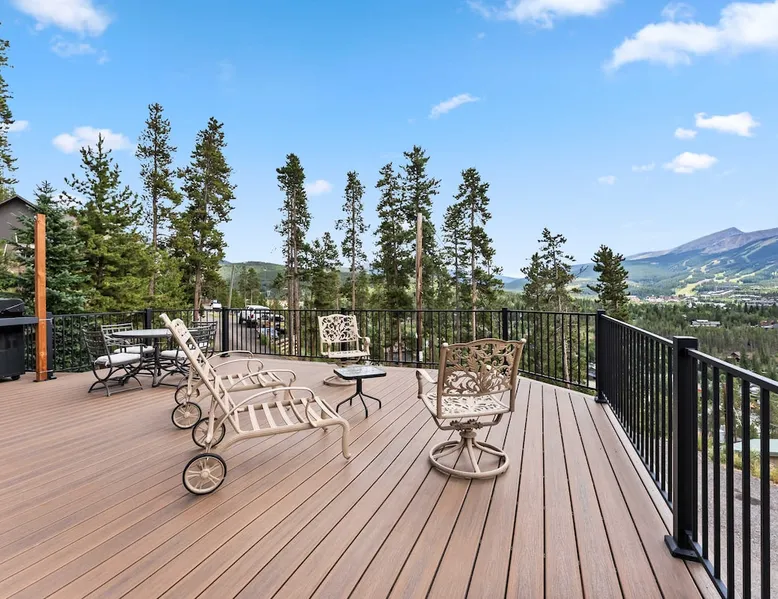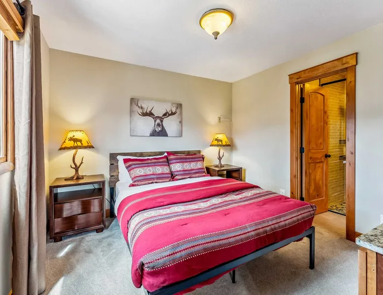 Experience the best of Breckenridge at this spacious vacation rental, just 1.6 miles from Breckenridge Ski Resort and close to attractions like the BreckConnect Gondola. Enjoy impressive mountain views from 2 decks, complete with a gas BBQ and fire table. Inside, you'll find 3 levels of living space, including a cozy lounge, a kitchen, and a wood-burning fireplace. This home offers the perfect blend of comfort and breathtaking scenery for your mountain getaway. The space Location perks: Breckenridge Ski Resort (1.6 miles), Breckenridge Recreation Center( 1.7 miles), BreckConnect Gondola (1.8 miles), Main Street Station (2.5 miles), Breckenridge Golf Club (4.5 miles) Interior: - Fully equipped kitchen (drip coffee maker, French press, blender, toaster oven) - 6-person dining table - 3 Smart TVs (55” in the living room) - Wood-burning fireplace - Radiant floor heat in bathrooms - 2 sets of stacked washer/dryers - Central heating, no A/C Exterior: - 2 decks - Gas BBQ - Outdoor table with 4 chairs - Fire table - Stunning mountain views - 33 steps to access the unit Upper Floor: 1 bedroom, 1 en suite bath Main Floor: Kitchen, dining room, living room, 1 bedroom, 1 full bath Lower Floor: Mudroom, lounge room, 1 bedroom, 1 en suite bath This Breck Mountain Retreat is perfect for group getaways, offering ample space for everyone to spread out and relax. With its warm mountain home charm, you'll love the vaulted ceilings, exposed wood beams, and soaring windows that frame stunning mountain views. On the main level, the cozy living room, anchored by a wood-burning fireplace, is ideal for gathering after a day of mountain adventures. The fully equipped kitchen makes it easy to prepare meals for the whole group, with a 6-person dining table perfect for shared dinners. A comfortable bedroom and full bath on this level provide a convenient spot to rest. Upstairs, 1 bedroom await, including a serene master with an en suite bath, ensuring everyone has their own private space. The lower level feels like a private getaway, featuring a cozy lounge room—perfect for game nights or quiet relaxation. An additional bedroom on this level, complete with an en suite bath, offers extra privacy for guests. Outside, 2 expansive decks invite you to soak in the breathtaking mountain views. Whether you're grilling on the gas BBQ, dining alfresco, or gathering around the fire table, you'll find the perfect setting to enjoy the natural beauty of Breckenridge. STR License Number: STR21-01182 Guest access Guests will have access to the entire home and 4 parking spaces in front of the home. There are 33 steps to access the unit. Other things to note Please note that like most homes in the area, this home does not have A/C. Please keep in mind that if you plan to ski, you are responsible for verifying the ski resorts' opening and closing dates. Registration number STR21-01182
