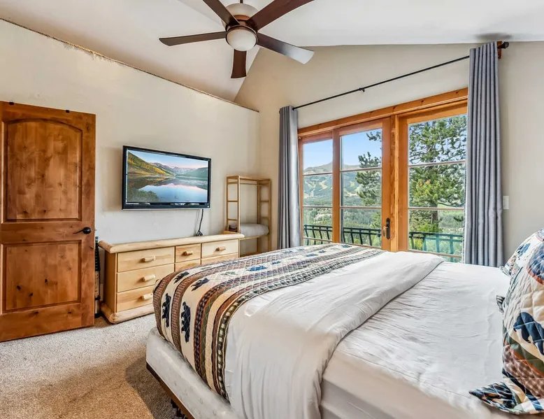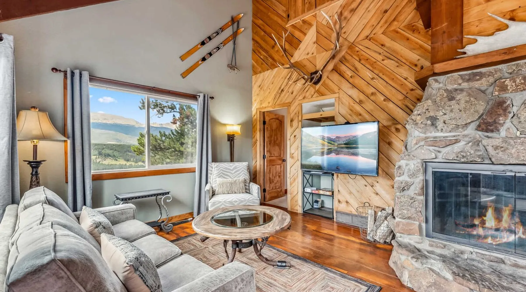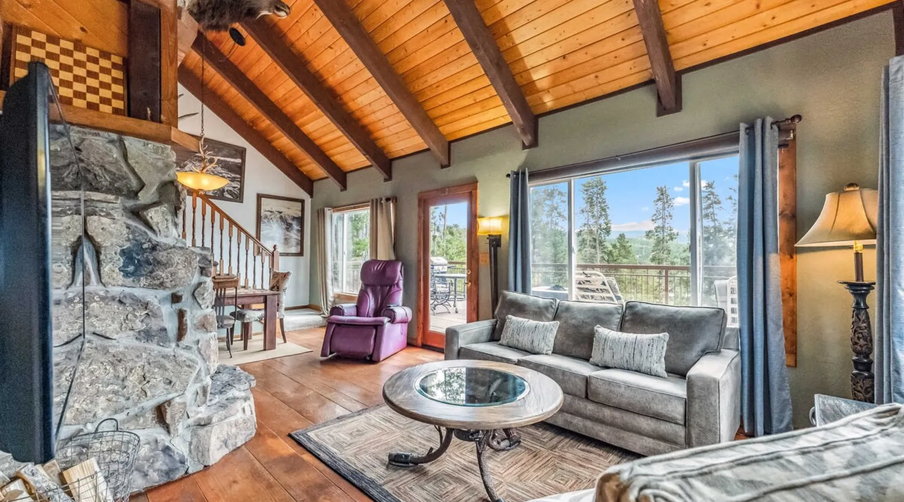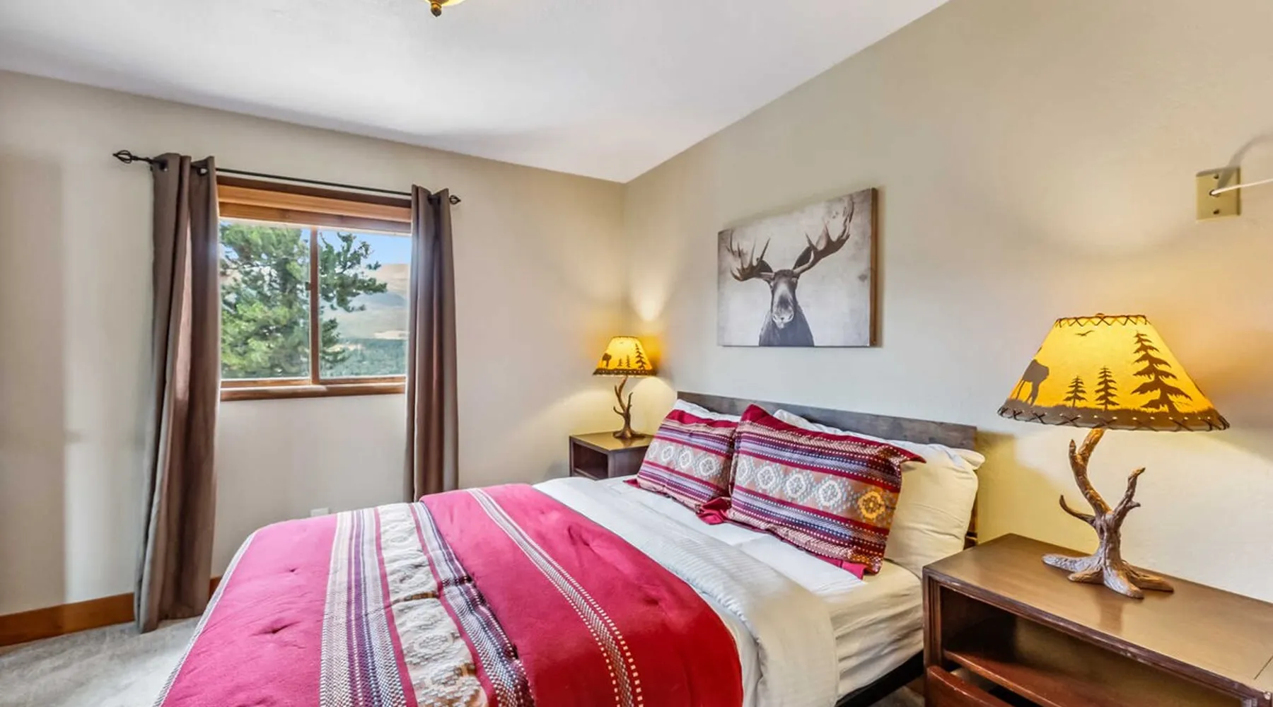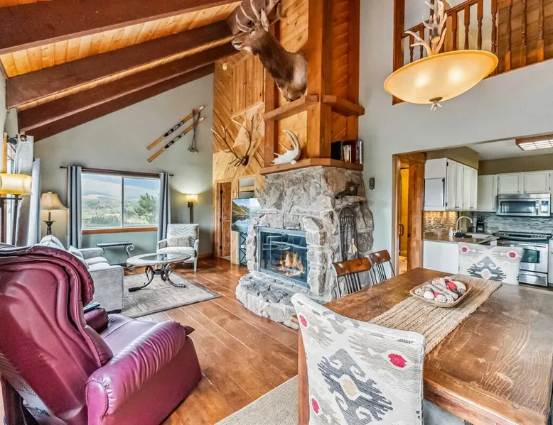 Experience the best of Breckenridge at this spacious vacation rental, just 1.6 miles from Breckenridge Ski Resort and close to attractions like the BreckConnect Gondola. Enjoy impressive mountain views from 2 decks, complete with a gas BBQ and fire table. Inside, you'll find 3 levels of living space, including a cozy lounge, a kitchen, and a wood-burning fireplace. This home offers the perfect blend of comfort and breathtaking scenery for your mountain getaway. The space Location perks: Breckenridge Ski Resort (1.6 miles), Breckenridge Recreation Center( 1.7 miles), BreckConnect Gondola (1.8 miles), Main Street Station (2.5 miles), Breckenridge Golf Club (4.5 miles) Interior: - Fully equipped kitchen (drip coffee maker, French press, blender, toaster oven) - 6-person dining table - 3 Smart TVs (55” in the living room) - Wood-burning fireplace - Radiant floor heat in bathrooms - 2 sets of stacked washer/dryers - Central heating, no A/C Exterior: - 2 decks - Gas BBQ - Outdoor table with 4 chairs - Fire table - Stunning mountain views - 33 steps to access the unit Upper Floor: 1 bedroom, 1 en suite bath Main Floor: Kitchen, dining room, living room, 1 bedroom, 1 full bath Lower Floor: Mudroom, lounge room, 1 bedroom, 1 en suite bath This Breck Mountain Retreat is perfect for group getaways, offering ample space for everyone to spread out and relax. With its warm mountain home charm, you'll love the vaulted ceilings, exposed wood beams, and soaring windows that frame stunning mountain views. On the main level, the cozy living room, anchored by a wood-burning fireplace, is ideal for gathering after a day of mountain adventures. The fully equipped kitchen makes it easy to prepare meals for the whole group, with a 6-person dining table perfect for shared dinners. A comfortable bedroom and full bath on this level provide a convenient spot to rest. Upstairs, 1 bedroom await, including a serene master with an en suite bath, ensuring everyone has their own private space. The lower level feels like a private getaway, featuring a cozy lounge room—perfect for game nights or quiet relaxation. An additional bedroom on this level, complete with an en suite bath, offers extra privacy for guests. Outside, 2 expansive decks invite you to soak in the breathtaking mountain views. Whether you're grilling on the gas BBQ, dining alfresco, or gathering around the fire table, you'll find the perfect setting to enjoy the natural beauty of Breckenridge. STR License Number: STR21-01182 Guest access Guests will have access to the entire home and 4 parking spaces in front of the home. There are 33 steps to access the unit. Other things to note Please note that like most homes in the area, this home does not have A/C. Please keep in mind that if you plan to ski, you are responsible for verifying the ski resorts' opening and closing dates. Registration number STR21-01182