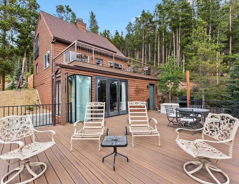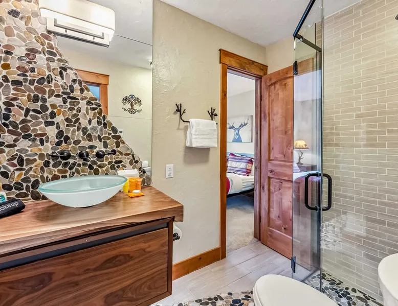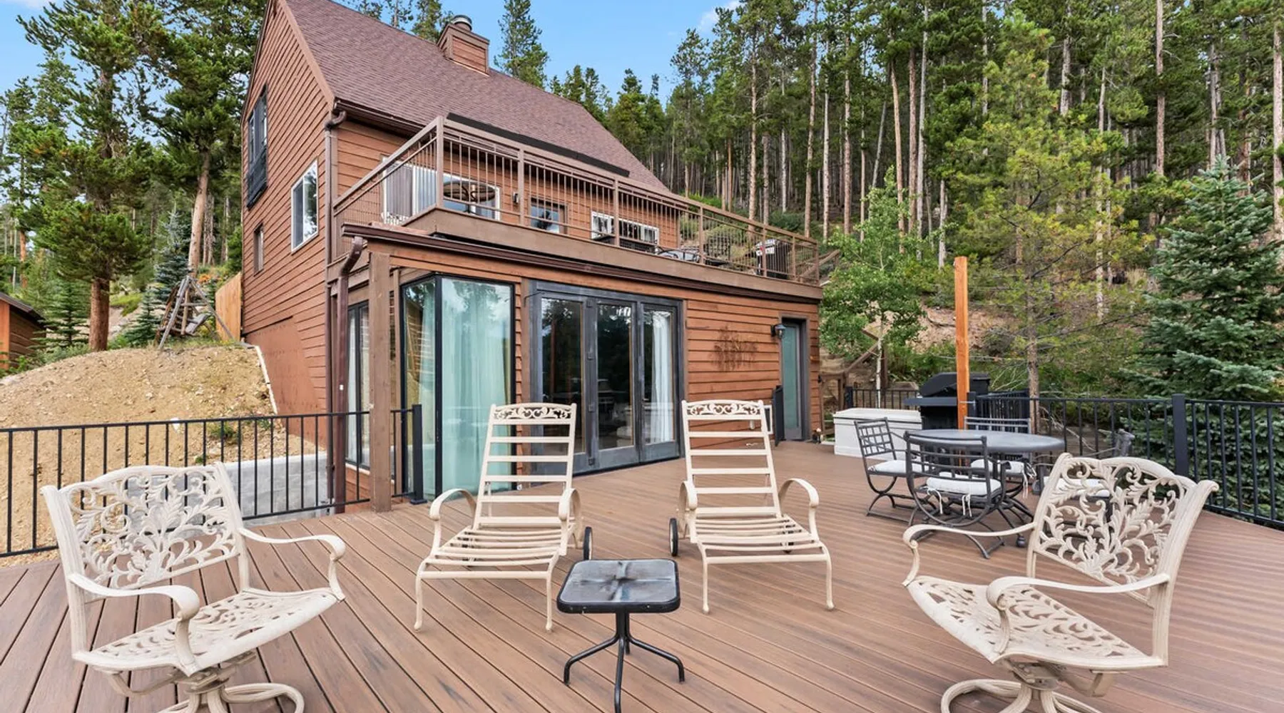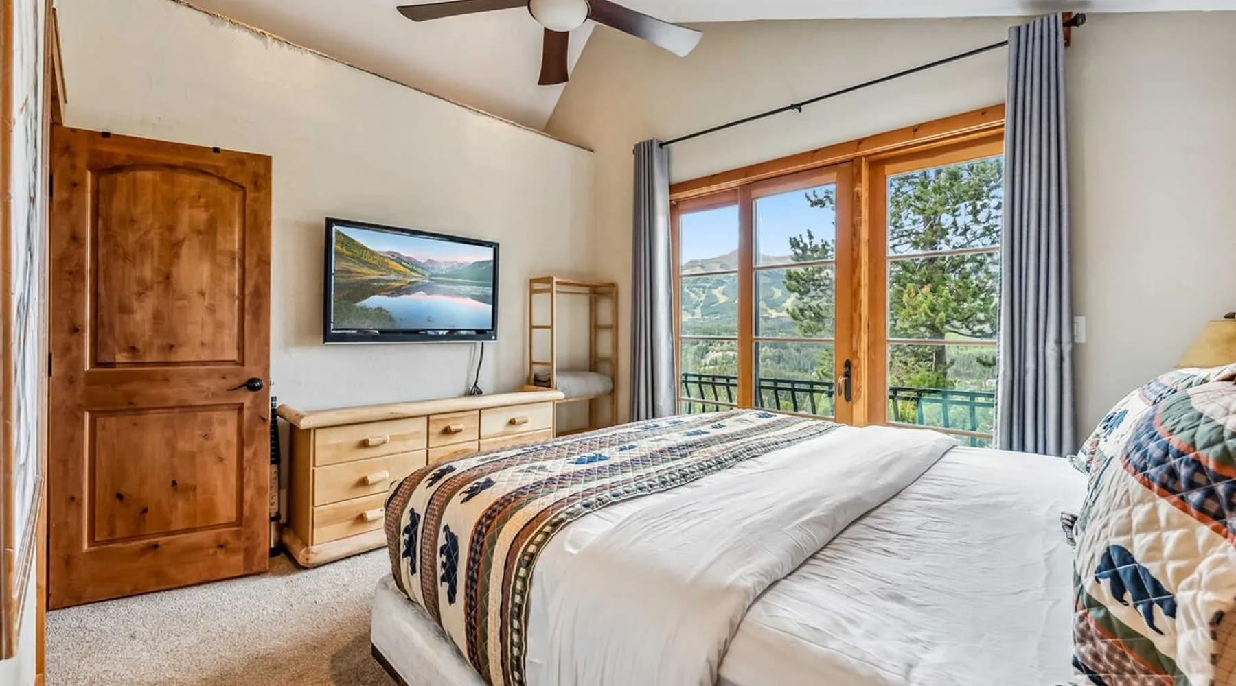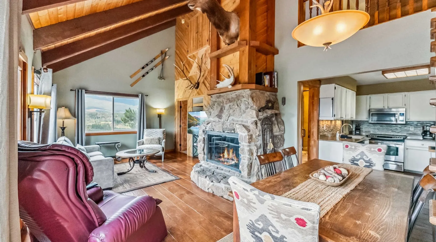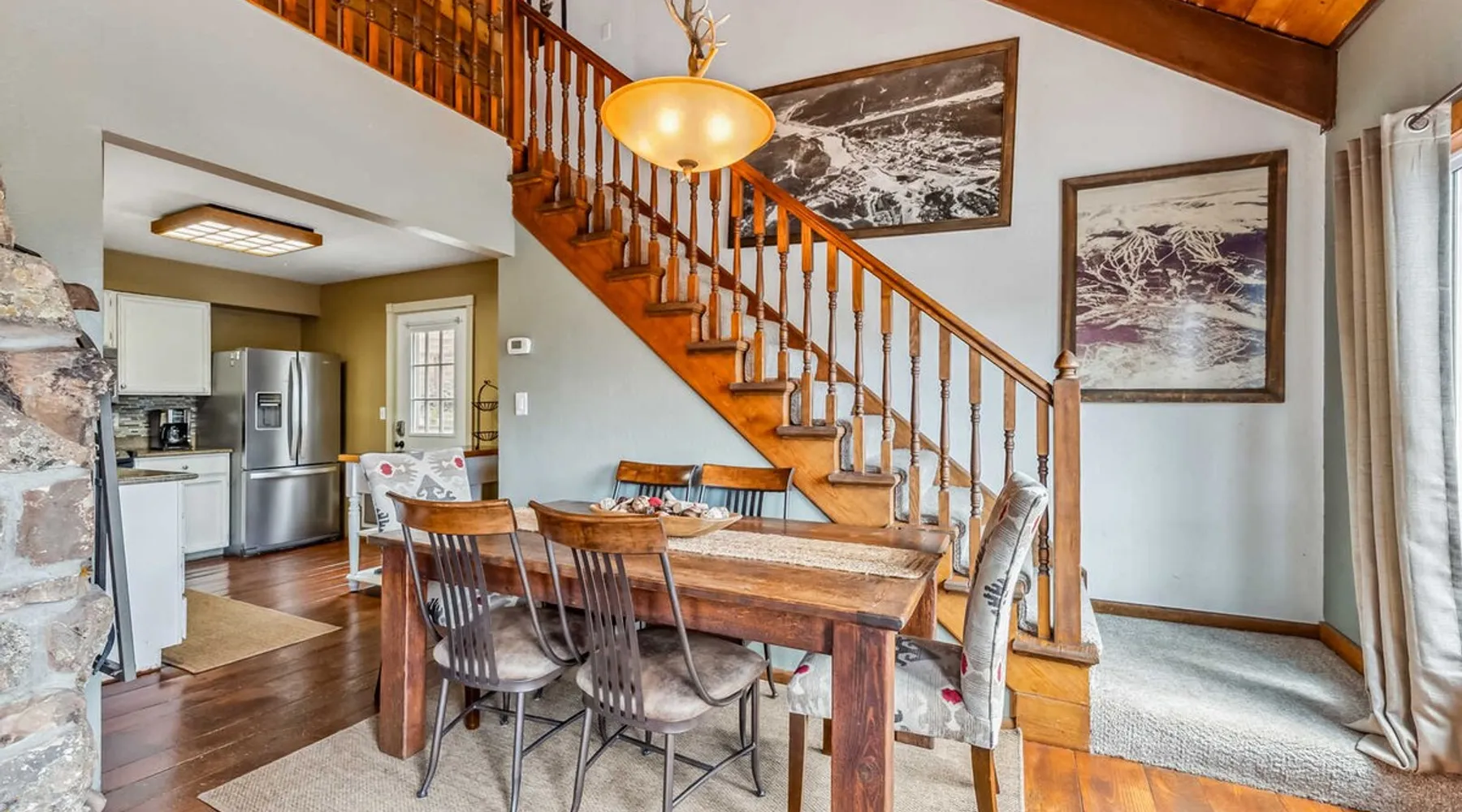 Experience the best of Breckenridge at this spacious vacation rental, just 1.6 miles from Breckenridge Ski Resort and close to attractions like the BreckConnect Gondola. Enjoy impressive mountain views from 2 decks, complete with a gas BBQ and fire table. Inside, you'll find 3 levels of living space, including a cozy lounge, a kitchen, and a wood-burning fireplace. This home offers the perfect blend of comfort and breathtaking scenery for your mountain getaway. The space Location perks: Breckenridge Ski Resort (1.6 miles), Breckenridge Recreation Center( 1.7 miles), BreckConnect Gondola (1.8 miles), Main Street Station (2.5 miles), Breckenridge Golf Club (4.5 miles) Interior: - Fully equipped kitchen (drip coffee maker, French press, blender, toaster oven) - 6-person dining table - 3 Smart TVs (55” in the living room) - Wood-burning fireplace - Radiant floor heat in bathrooms - 2 sets of stacked washer/dryers - Central heating, no A/C Exterior: - 2 decks - Gas BBQ - Outdoor table with 4 chairs - Fire table - Stunning mountain views - 33 steps to access the unit Upper Floor: 1 bedroom, 1 en suite bath Main Floor: Kitchen, dining room, living room, 1 bedroom, 1 full bath Lower Floor: Mudroom, lounge room, 1 bedroom, 1 en suite bath This Breck Mountain Retreat is perfect for group getaways, offering ample space for everyone to spread out and relax. With its warm mountain home charm, you'll love the vaulted ceilings, exposed wood beams, and soaring windows that frame stunning mountain views. On the main level, the cozy living room, anchored by a wood-burning fireplace, is ideal for gathering after a day of mountain adventures. The fully equipped kitchen makes it easy to prepare meals for the whole group, with a 6-person dining table perfect for shared dinners. A comfortable bedroom and full bath on this level provide a convenient spot to rest. Upstairs, 1 bedroom await, including a serene master with an en suite bath, ensuring everyone has their own private space. The lower level feels like a private getaway, featuring a cozy lounge room—perfect for game nights or quiet relaxation. An additional bedroom on this level, complete with an en suite bath, offers extra privacy for guests. Outside, 2 expansive decks invite you to soak in the breathtaking mountain views. Whether you're grilling on the gas BBQ, dining alfresco, or gathering around the fire table, you'll find the perfect setting to enjoy the natural beauty of Breckenridge. STR License Number: STR21-01182 Guest access Guests will have access to the entire home and 4 parking spaces in front of the home. There are 33 steps to access the unit. Other things to note Please note that like most homes in the area, this home does not have A/C. Please keep in mind that if you plan to ski, you are responsible for verifying the ski resorts' opening and closing dates. Registration number STR21-01182