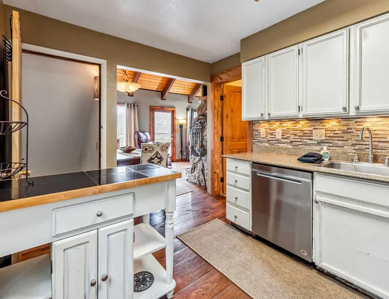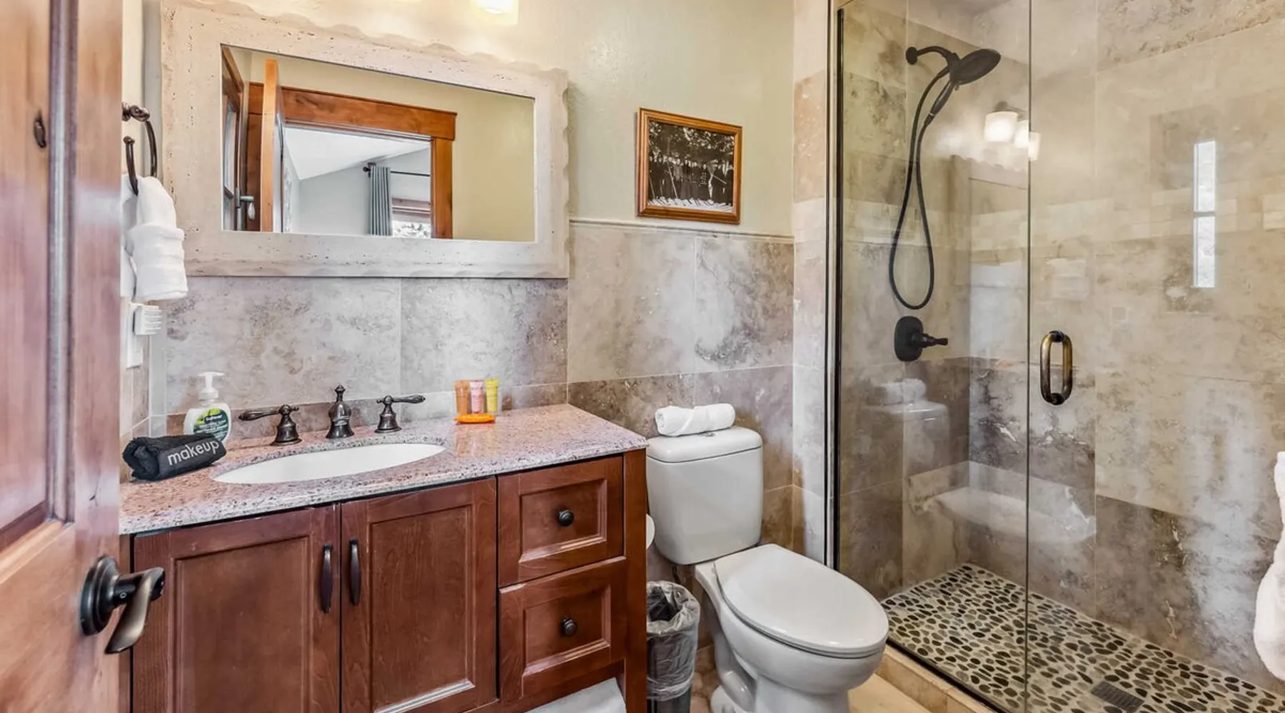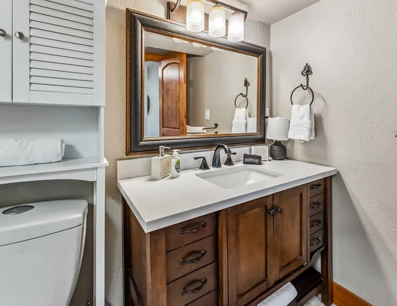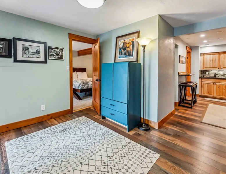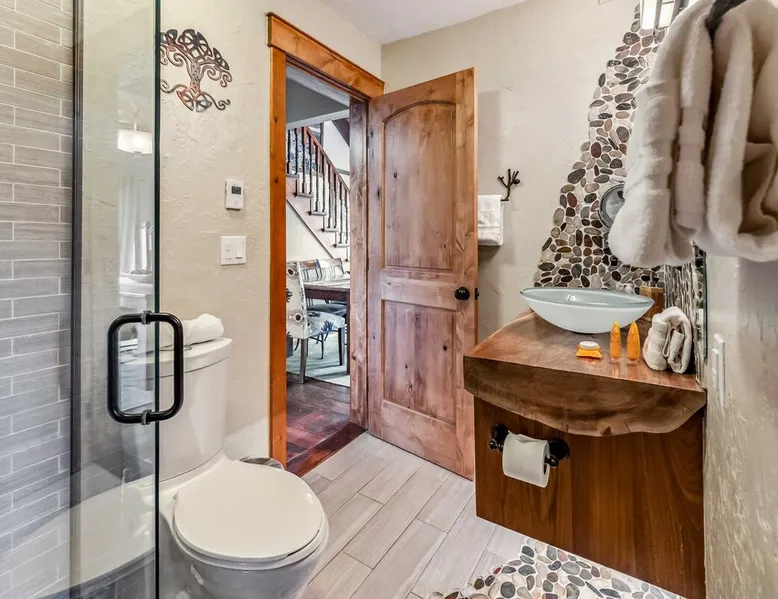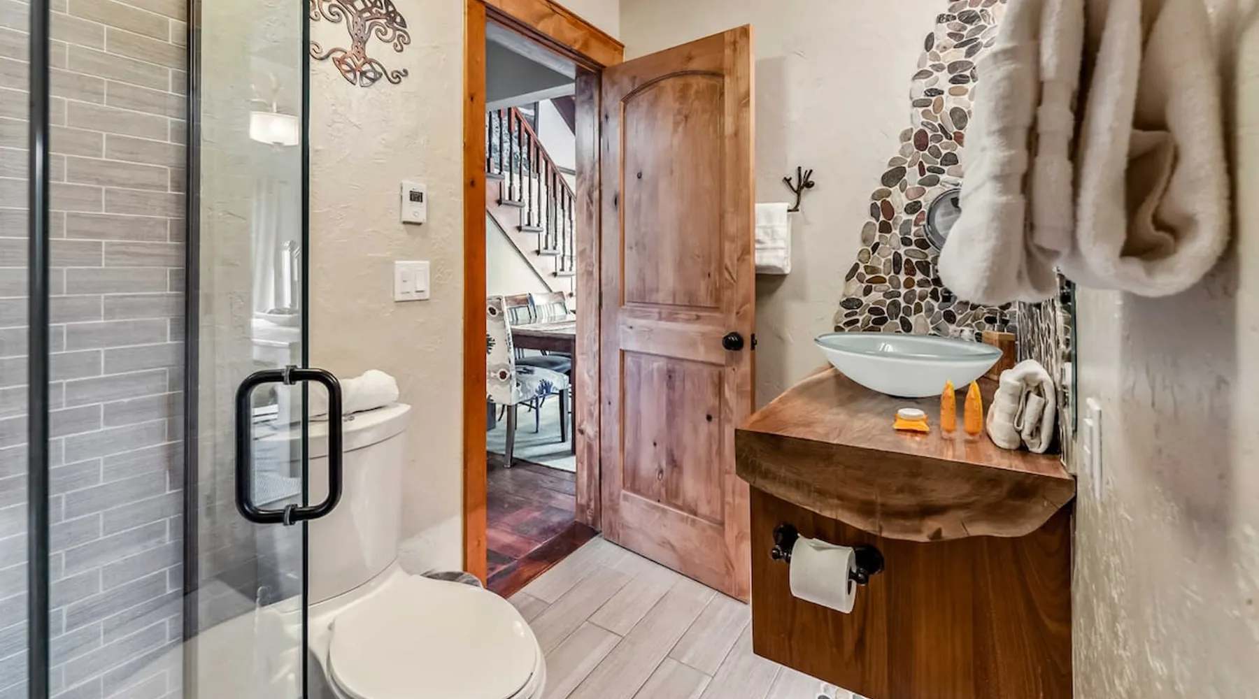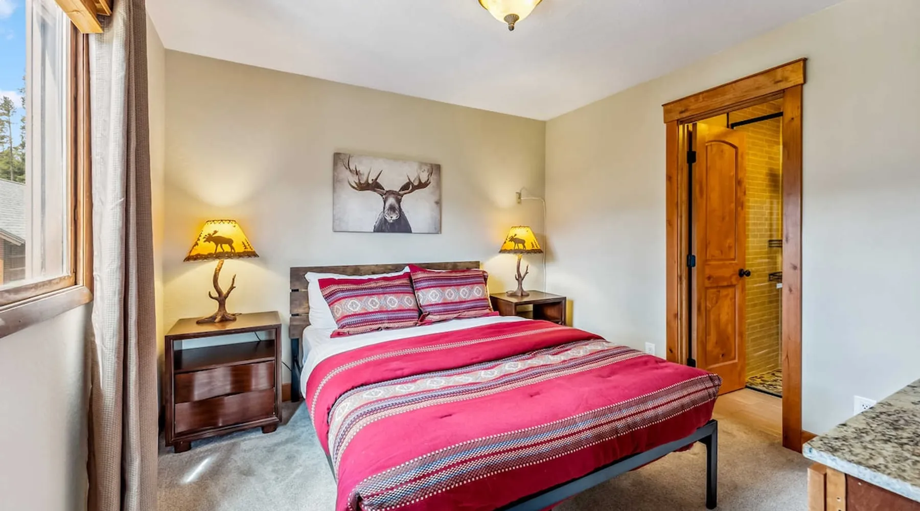 Experience the best of Breckenridge at this spacious vacation rental, just 1.6 miles from Breckenridge Ski Resort and close to attractions like the BreckConnect Gondola. Enjoy impressive mountain views from 2 decks, complete with a gas BBQ and fire table. Inside, you'll find 3 levels of living space, including a cozy lounge, a kitchen, and a wood-burning fireplace. This home offers the perfect blend of comfort and breathtaking scenery for your mountain getaway. The space Location perks: Breckenridge Ski Resort (1.6 miles), Breckenridge Recreation Center( 1.7 miles), BreckConnect Gondola (1.8 miles), Main Street Station (2.5 miles), Breckenridge Golf Club (4.5 miles) Interior: - Fully equipped kitchen (drip coffee maker, French press, blender, toaster oven) - 6-person dining table - 3 Smart TVs (55” in the living room) - Wood-burning fireplace - Radiant floor heat in bathrooms - 2 sets of stacked washer/dryers - Central heating, no A/C Exterior: - 2 decks - Gas BBQ - Outdoor table with 4 chairs - Fire table - Stunning mountain views - 33 steps to access the unit Upper Floor: 1 bedroom, 1 en suite bath Main Floor: Kitchen, dining room, living room, 1 bedroom, 1 full bath Lower Floor: Mudroom, lounge room, 1 bedroom, 1 en suite bath This Breck Mountain Retreat is perfect for group getaways, offering ample space for everyone to spread out and relax. With its warm mountain home charm, you'll love the vaulted ceilings, exposed wood beams, and soaring windows that frame stunning mountain views. On the main level, the cozy living room, anchored by a wood-burning fireplace, is ideal for gathering after a day of mountain adventures. The fully equipped kitchen makes it easy to prepare meals for the whole group, with a 6-person dining table perfect for shared dinners. A comfortable bedroom and full bath on this level provide a convenient spot to rest. Upstairs, 1 bedroom await, including a serene master with an en suite bath, ensuring everyone has their own private space. The lower level feels like a private getaway, featuring a cozy lounge room—perfect for game nights or quiet relaxation. An additional bedroom on this level, complete with an en suite bath, offers extra privacy for guests. Outside, 2 expansive decks invite you to soak in the breathtaking mountain views. Whether you're grilling on the gas BBQ, dining alfresco, or gathering around the fire table, you'll find the perfect setting to enjoy the natural beauty of Breckenridge. STR License Number: STR21-01182 Guest access Guests will have access to the entire home and 4 parking spaces in front of the home. There are 33 steps to access the unit. Other things to note Please note that like most homes in the area, this home does not have A/C. Please keep in mind that if you plan to ski, you are responsible for verifying the ski resorts' opening and closing dates. Registration number STR21-01182