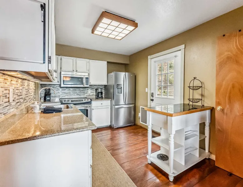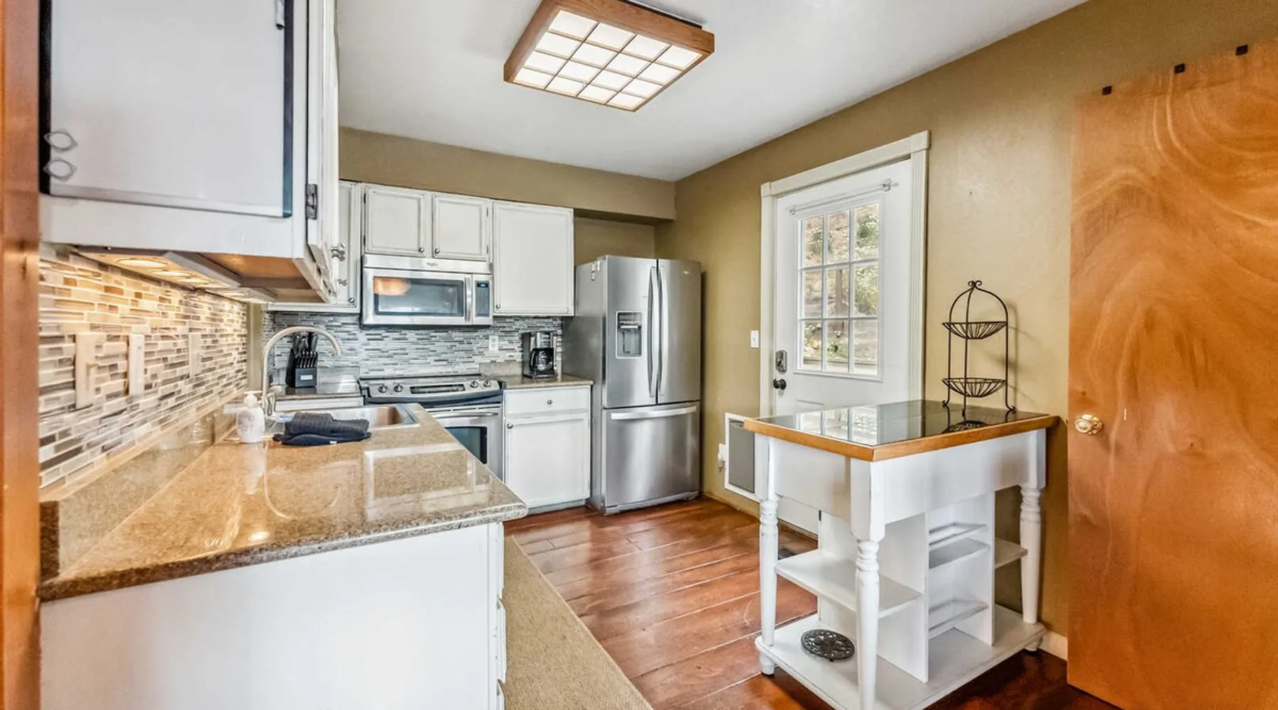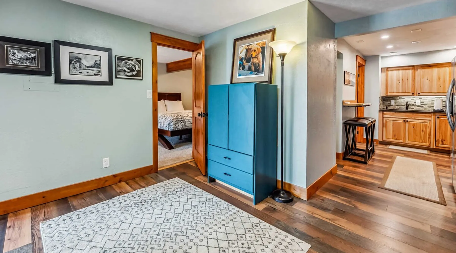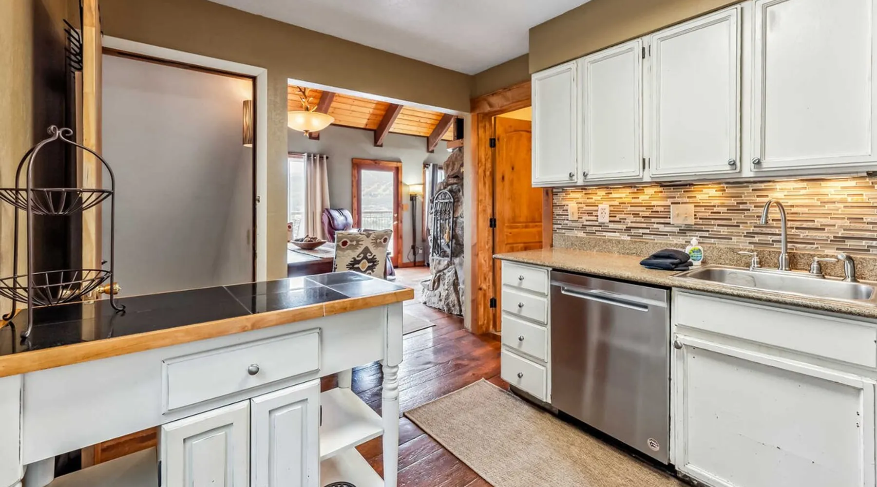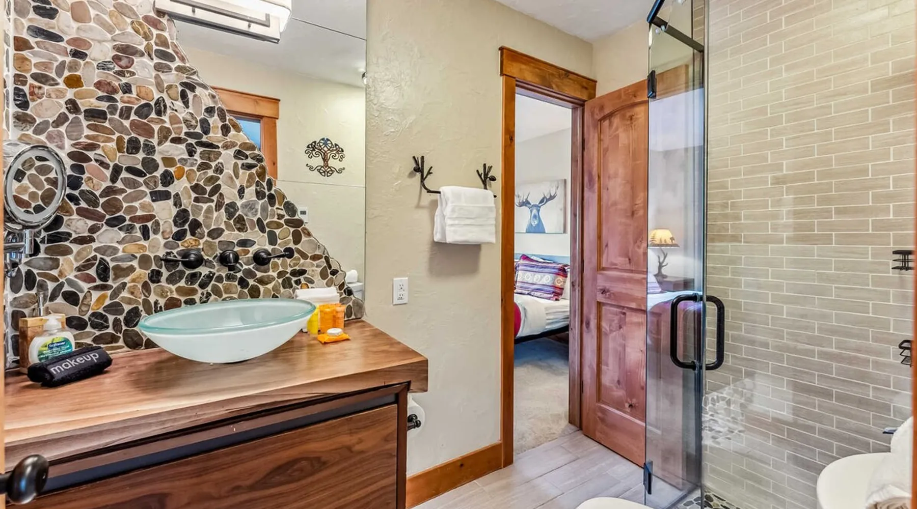 Experience the best of Breckenridge at this spacious vacation rental, just 1.6 miles from Breckenridge Ski Resort and close to attractions like the BreckConnect Gondola. Enjoy impressive mountain views from 2 decks, complete with a gas BBQ and fire table. Inside, you'll find 3 levels of living space, including a cozy lounge, a kitchen, and a wood-burning fireplace. This home offers the perfect blend of comfort and breathtaking scenery for your mountain getaway. The space Location perks: Breckenridge Ski Resort (1.6 miles), Breckenridge Recreation Center( 1.7 miles), BreckConnect Gondola (1.8 miles), Main Street Station (2.5 miles), Breckenridge Golf Club (4.5 miles) Interior: - Fully equipped kitchen (drip coffee maker, French press, blender, toaster oven) - 6-person dining table - 3 Smart TVs (55” in the living room) - Wood-burning fireplace - Radiant floor heat in bathrooms - 2 sets of stacked washer/dryers - Central heating, no A/C Exterior: - 2 decks - Gas BBQ - Outdoor table with 4 chairs - Fire table - Stunning mountain views - 33 steps to access the unit Upper Floor: 1 bedroom, 1 en suite bath Main Floor: Kitchen, dining room, living room, 1 bedroom, 1 full bath Lower Floor: Mudroom, lounge room, 1 bedroom, 1 en suite bath This Breck Mountain Retreat is perfect for group getaways, offering ample space for everyone to spread out and relax. With its warm mountain home charm, you'll love the vaulted ceilings, exposed wood beams, and soaring windows that frame stunning mountain views. On the main level, the cozy living room, anchored by a wood-burning fireplace, is ideal for gathering after a day of mountain adventures. The fully equipped kitchen makes it easy to prepare meals for the whole group, with a 6-person dining table perfect for shared dinners. A comfortable bedroom and full bath on this level provide a convenient spot to rest. Upstairs, 1 bedroom await, including a serene master with an en suite bath, ensuring everyone has their own private space. The lower level feels like a private getaway, featuring a cozy lounge room—perfect for game nights or quiet relaxation. An additional bedroom on this level, complete with an en suite bath, offers extra privacy for guests. Outside, 2 expansive decks invite you to soak in the breathtaking mountain views. Whether you're grilling on the gas BBQ, dining alfresco, or gathering around the fire table, you'll find the perfect setting to enjoy the natural beauty of Breckenridge. STR License Number: STR21-01182 Guest access Guests will have access to the entire home and 4 parking spaces in front of the home. There are 33 steps to access the unit. Other things to note Please note that like most homes in the area, this home does not have A/C. Please keep in mind that if you plan to ski, you are responsible for verifying the ski resorts' opening and closing dates. Registration number STR21-01182