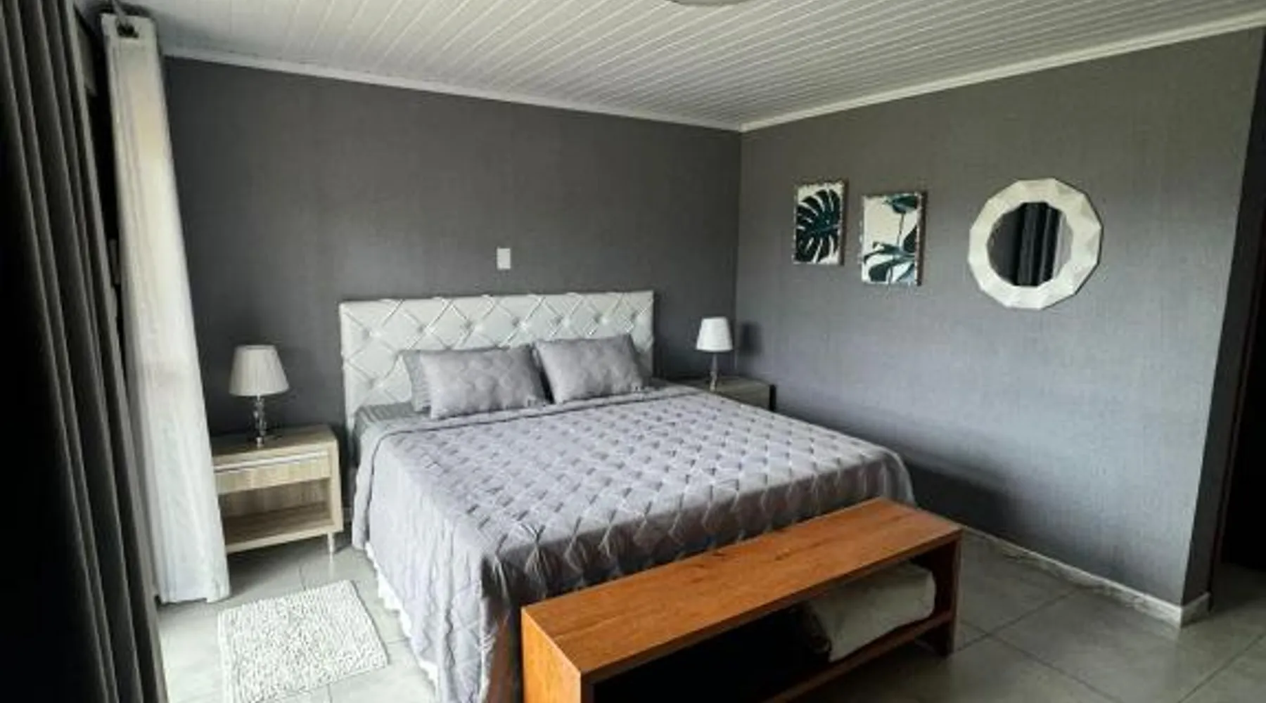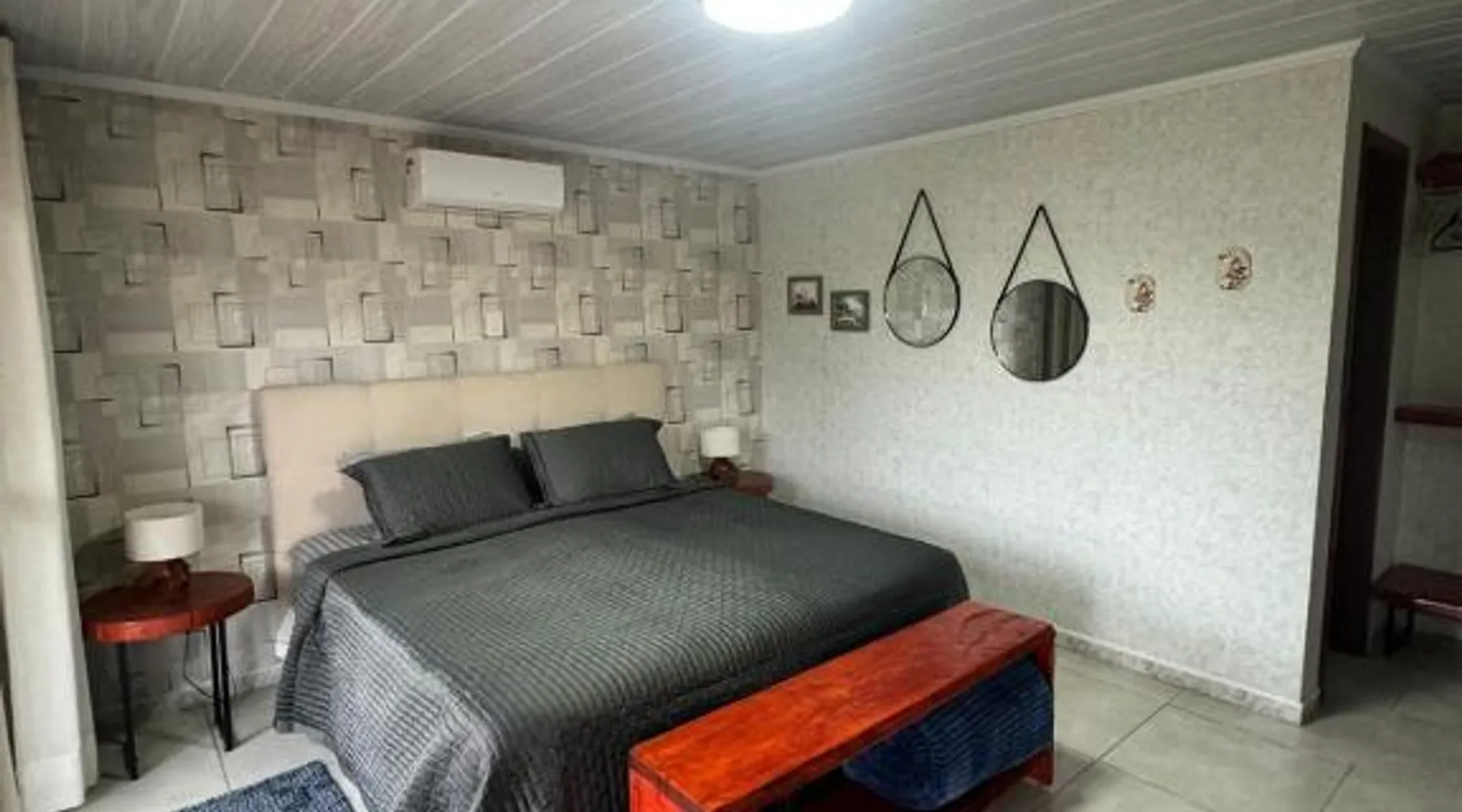 Comfortable Accommodations: Chalés Marrevi HomeHotel in São José dos Pinhais offers family rooms with air-conditioning, balconies, and private bathrooms. Each room includes a dining area, wardrobe, and streaming services. Exceptional Facilities: Guests enjoy a year-round outdoor swimming pool, lush garden, and free WiFi. Additional amenities include a lounge, shared kitchen, kids' club, and games room. Dining Experience: The family-friendly restaurant serves Brazilian cuisine with vegetarian options. Breakfast is continental, and meals include brunch, lunch, dinner, and cocktails. Convenient Location: Located 19 mi from Afonso Pena International Airport, the lodge is near attractions such as Vila Capanema Stadium (27 mi) and Contemporary Art Museum (29 mi). Highly rated by guests. The air-conditioned suite features 1 bedroom and 1 bathroom with a bath and a shower. Featuring a balcony, this suite also provides a dining area, a wardrobe and a flat-screen TV with streaming services. The unit offers 1 bed.