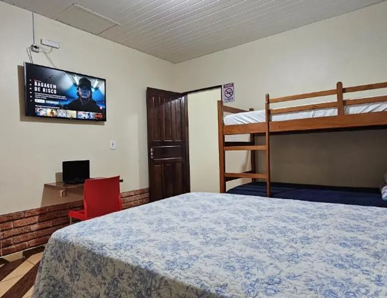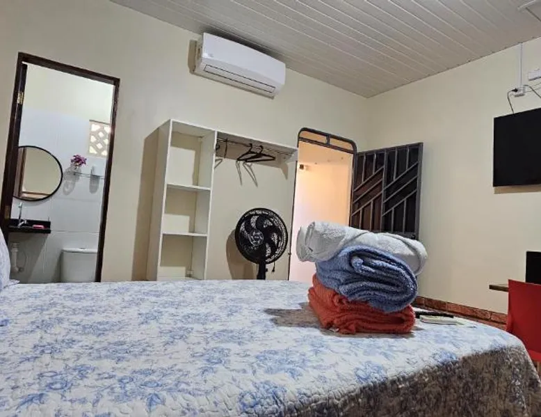 Modern Comforts: Cida Flats in Boa Vista offers a recently renovated apartment with a terrace and free WiFi. The property includes air-conditioning, streaming services, and a washing machine. Convenient Facilities: Guests benefit from a 24-hour front desk, family rooms, and full-day security. Free on-site private parking is available. Comfortable Living: The apartment features one bedroom and one bathroom, a fully equipped kitchen with a refrigerator, oven, stovetop, and microwave. Additional amenities include a dining area, work desk, and free toiletries. Prime Location: Located 3.7 mi from Boa Vista International Airport, the property is near attractions such as Anauá Park and Stadium Flamarion Vasconcelos, each 4.3 mi away. The apartment has 1 bedroom and 1 bathroom with a shower and free toiletries. In the well-equipped kitchen, guests will find a stovetop, a refrigerator, kitchenware and an oven. This apartment is air-conditioned and features a flat-screen TV with streaming services, a washing machine, a tea and coffee maker and a dining area. The unit has 2 beds.